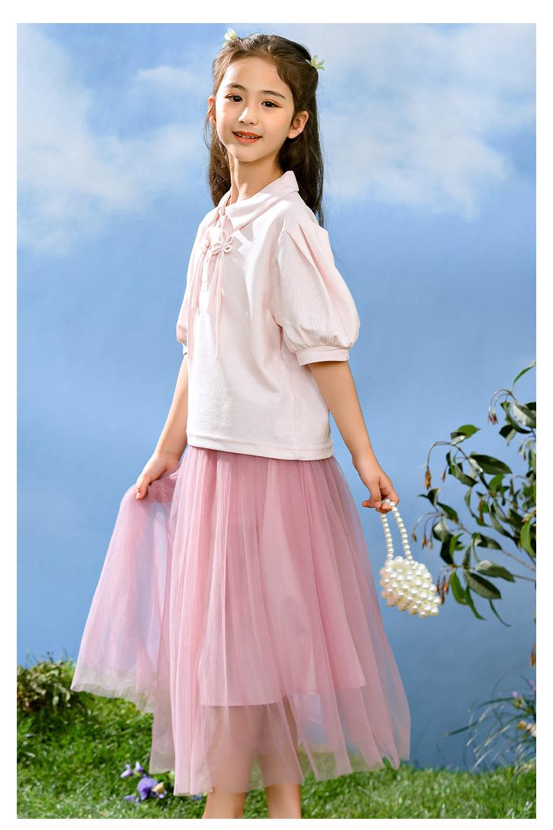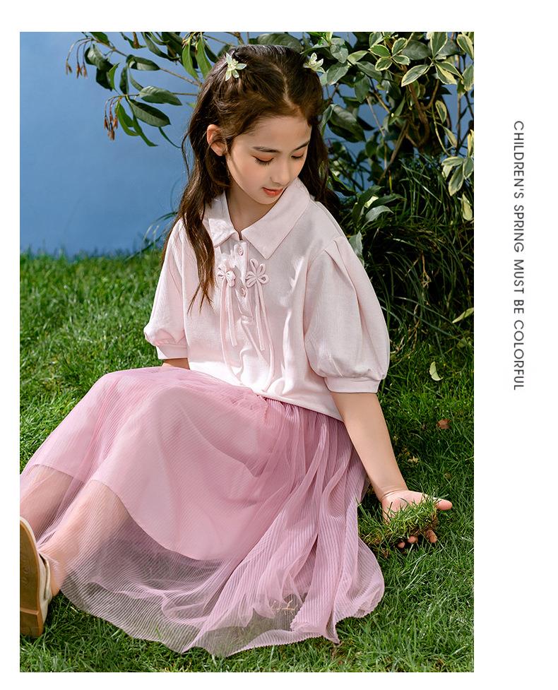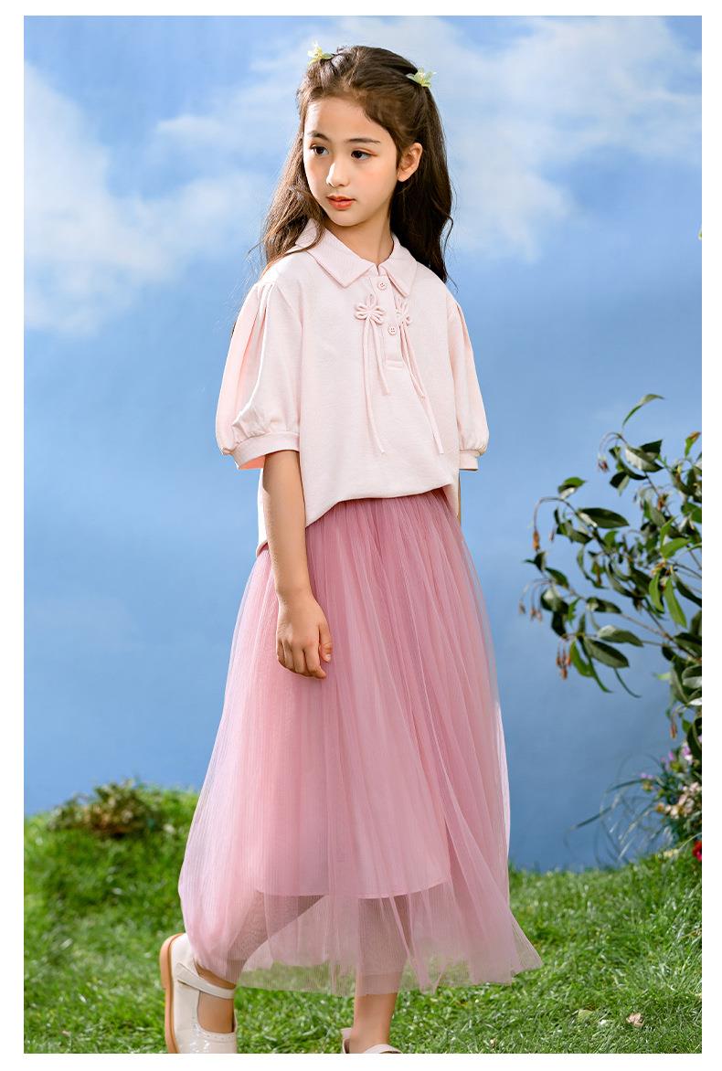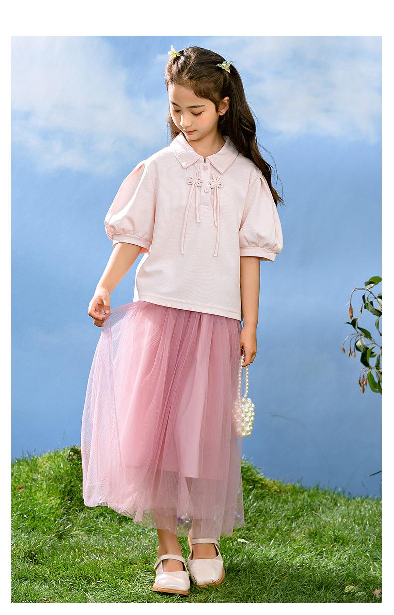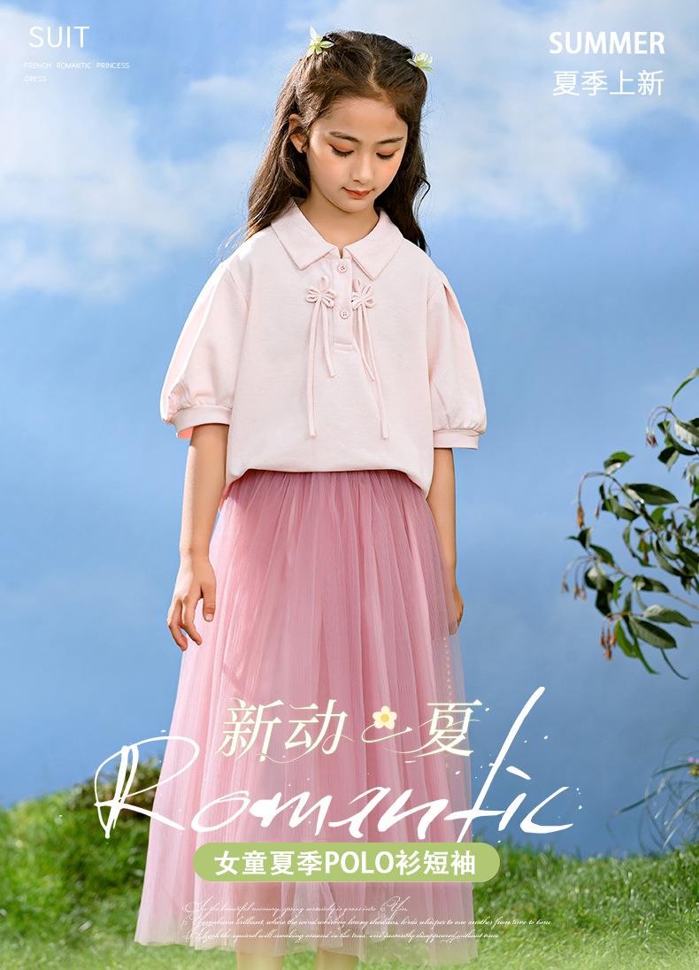 新中式女童套装夏季新款中大童国风夏装Polo衫儿童网纱裙两件套