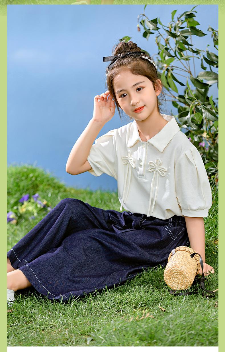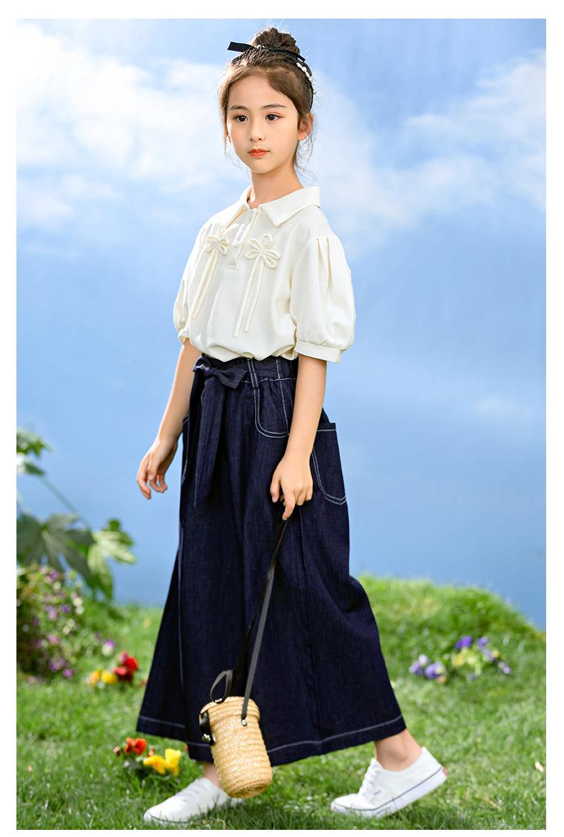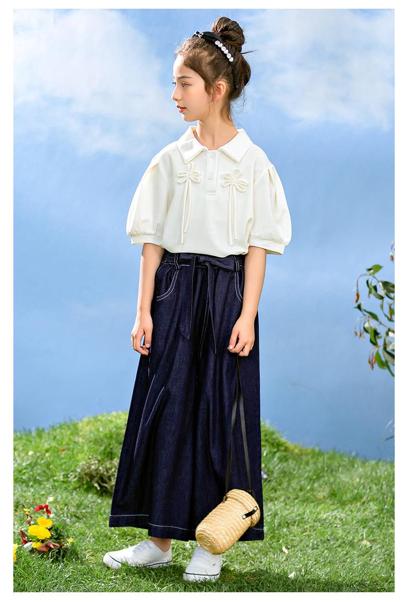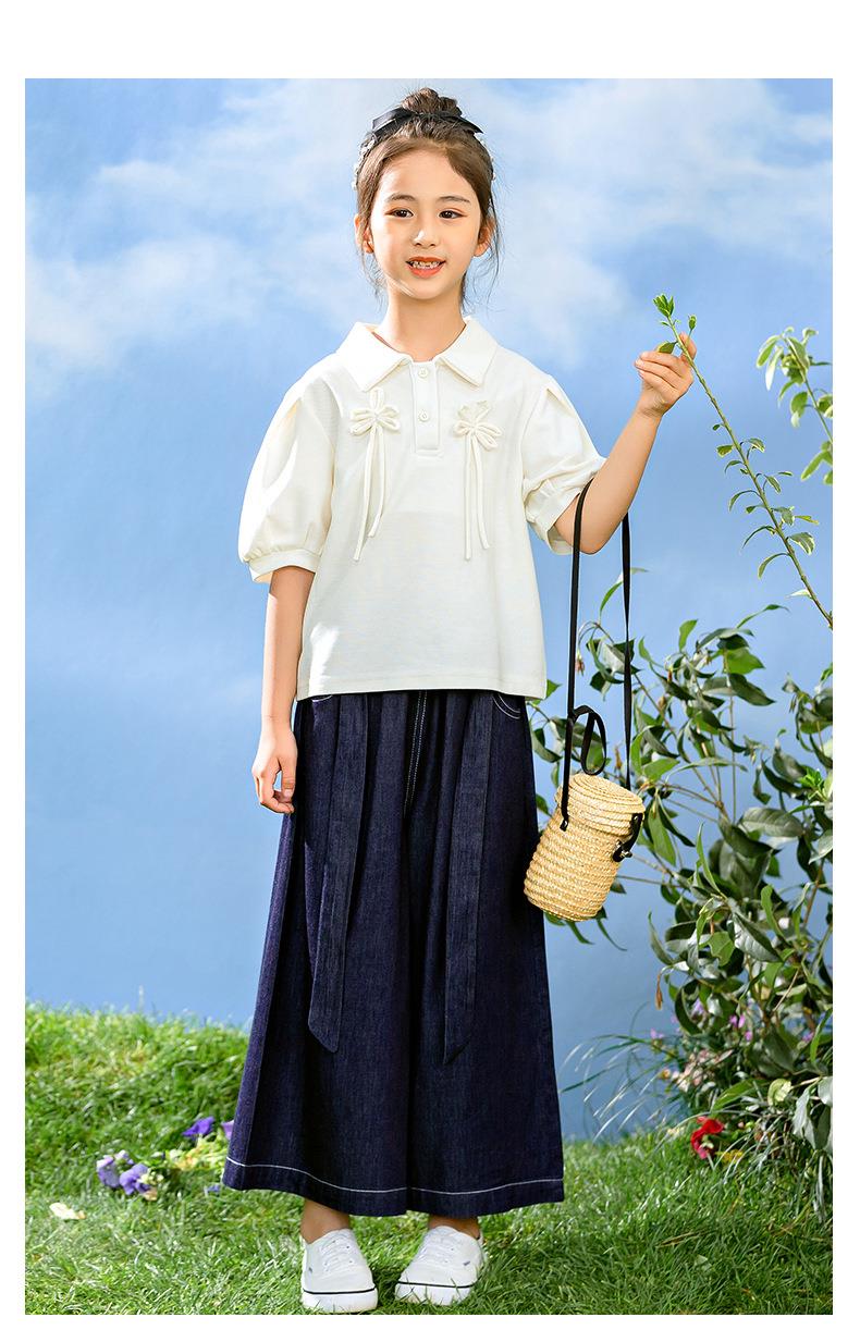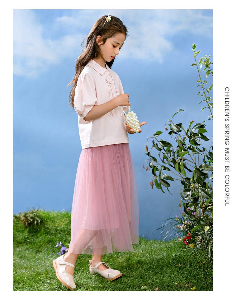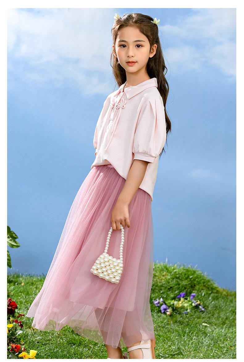新中式女童套装夏季新款中大童国风夏装Polo衫儿童网纱裙两件套