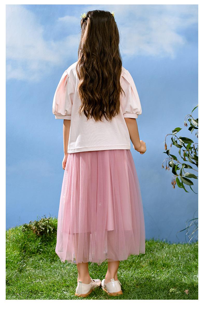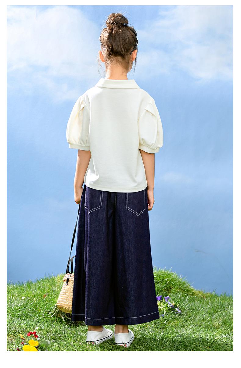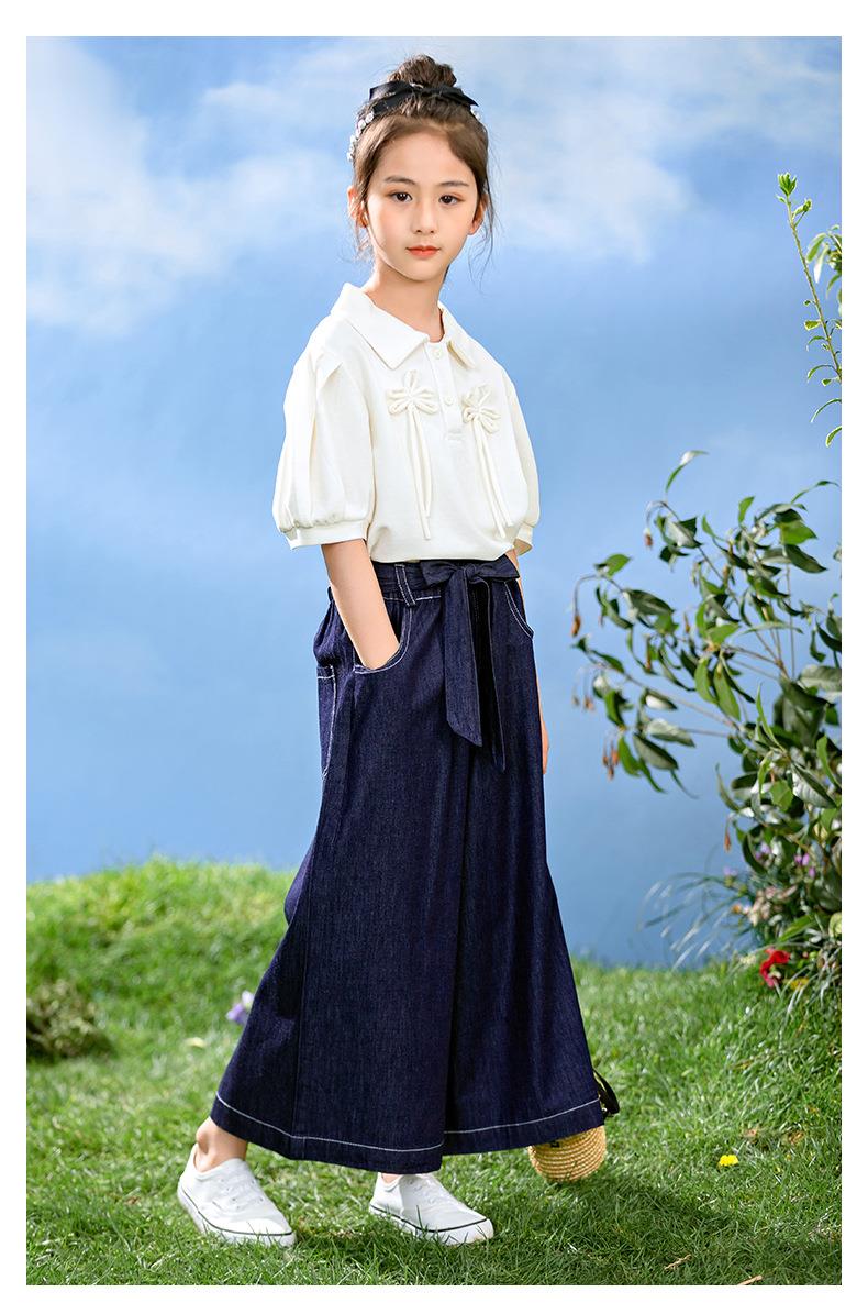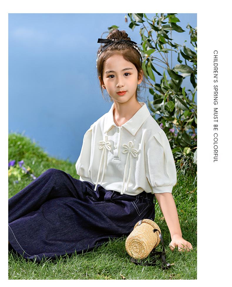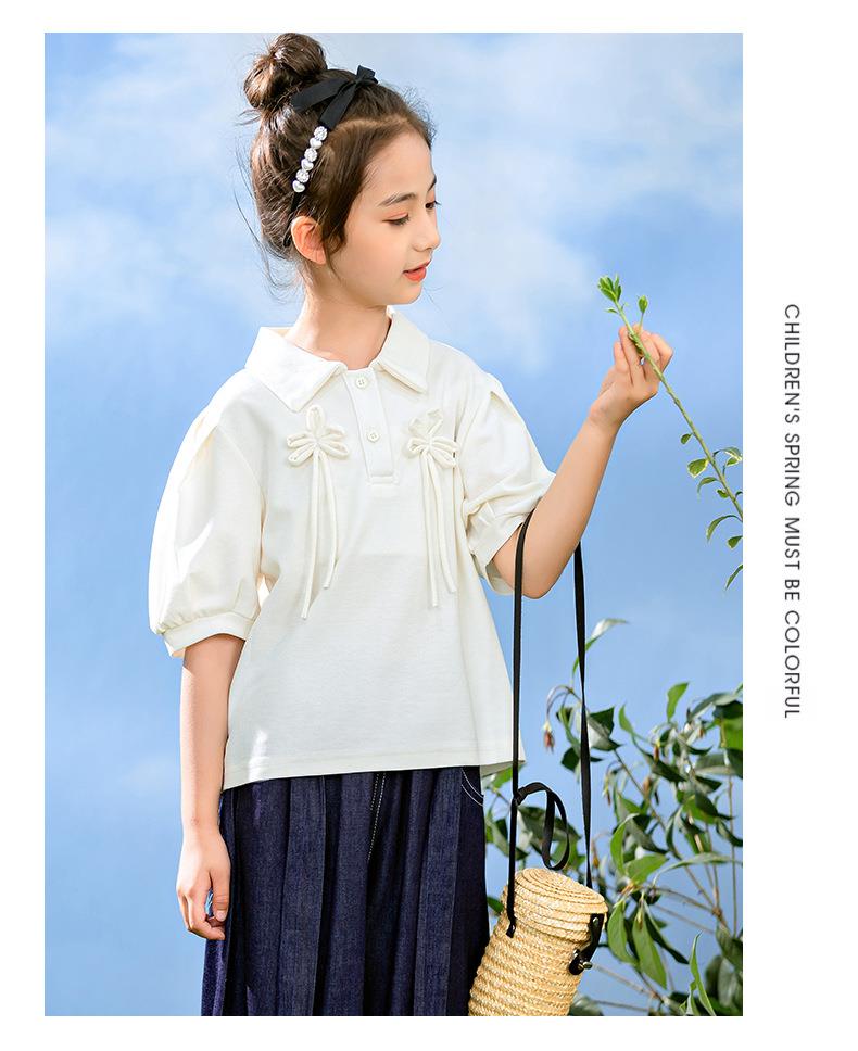 新中式女童套装夏季新款中大童国风夏装Polo衫儿童网纱裙两件套