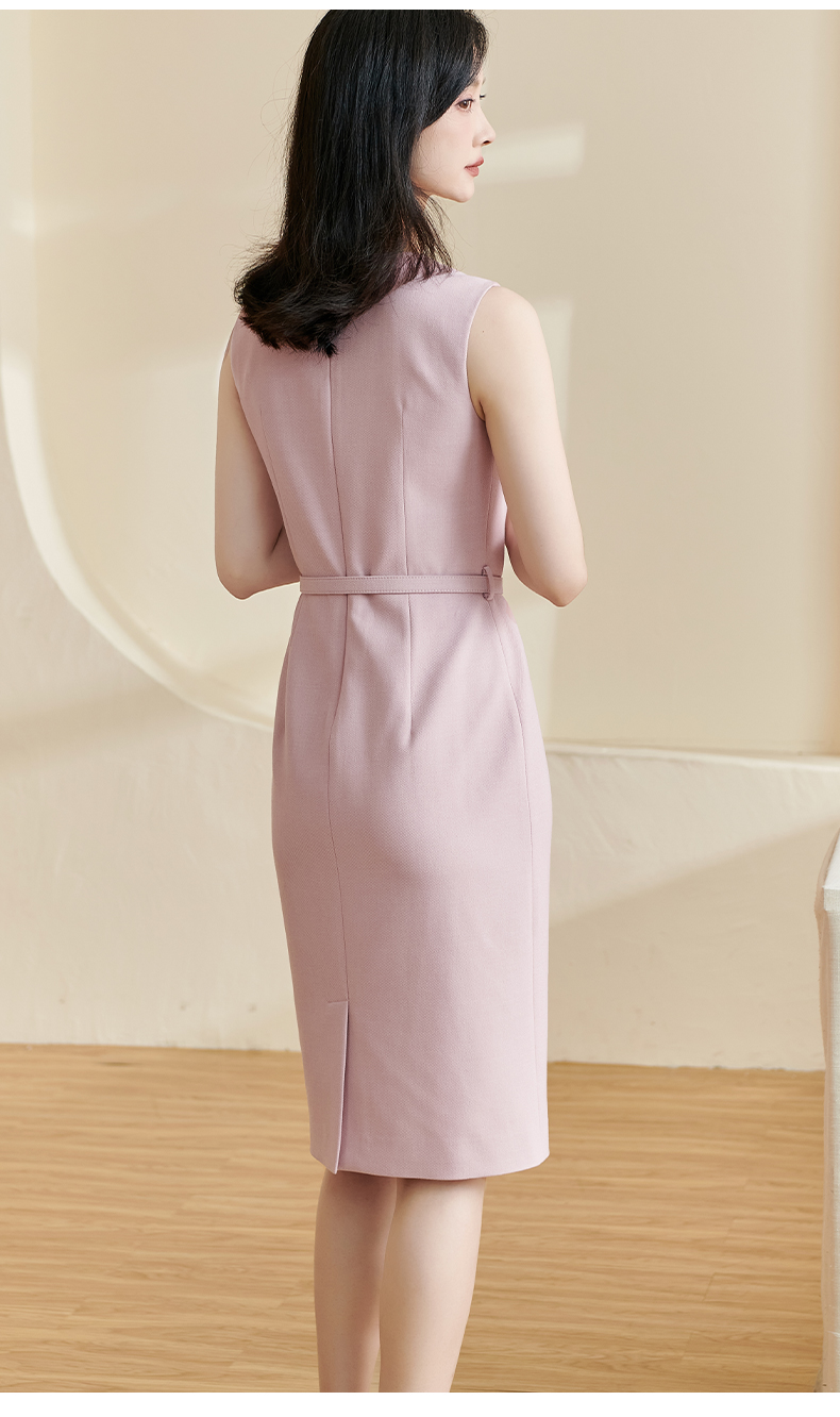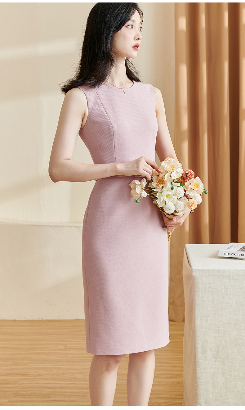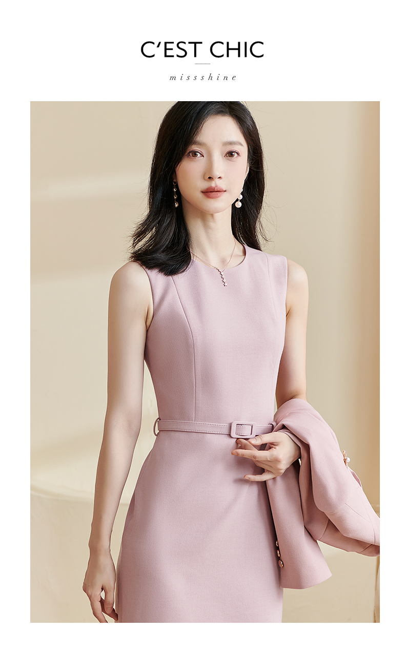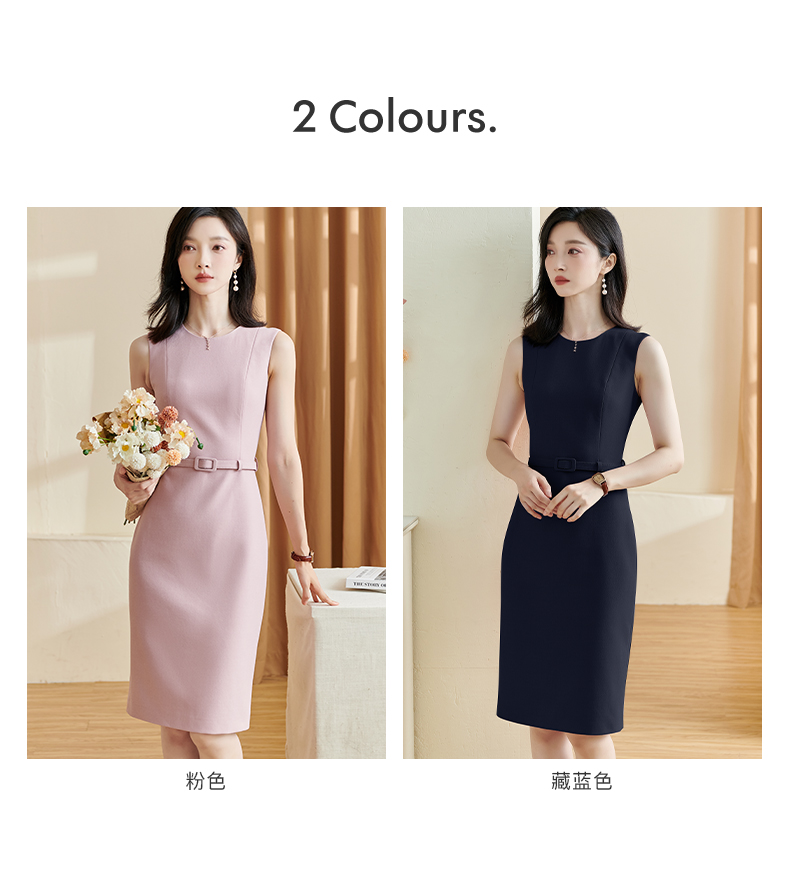 剩L/XL/XXL/S/M 米思阳2026春季新款优雅简约纯色连衣裙圆领无袖系带一步裙女2494