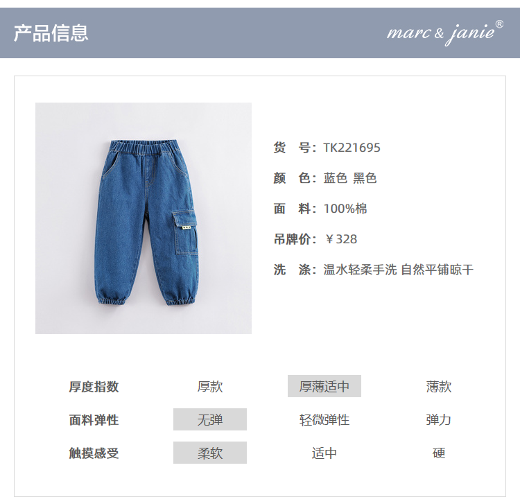 马克珍妮秋装新款 男童纯棉牛仔宽松束脚裤 儿童裤子221695