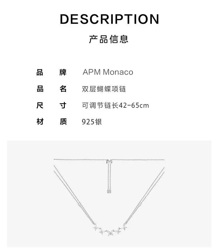 【礼盒礼袋】APM Monaco 蝴蝶项链/蝴蝶手链女士可调节925银简约气质送闺蜜生日礼物
