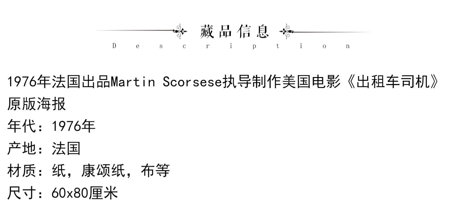 独角鹿西洋古董Martin Scorsese执导美国电影出租车司机原版海报