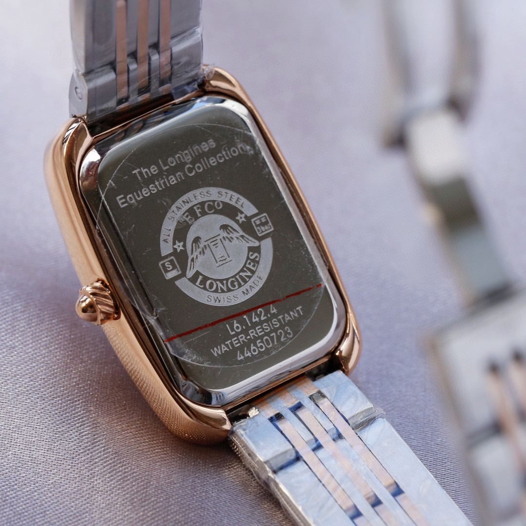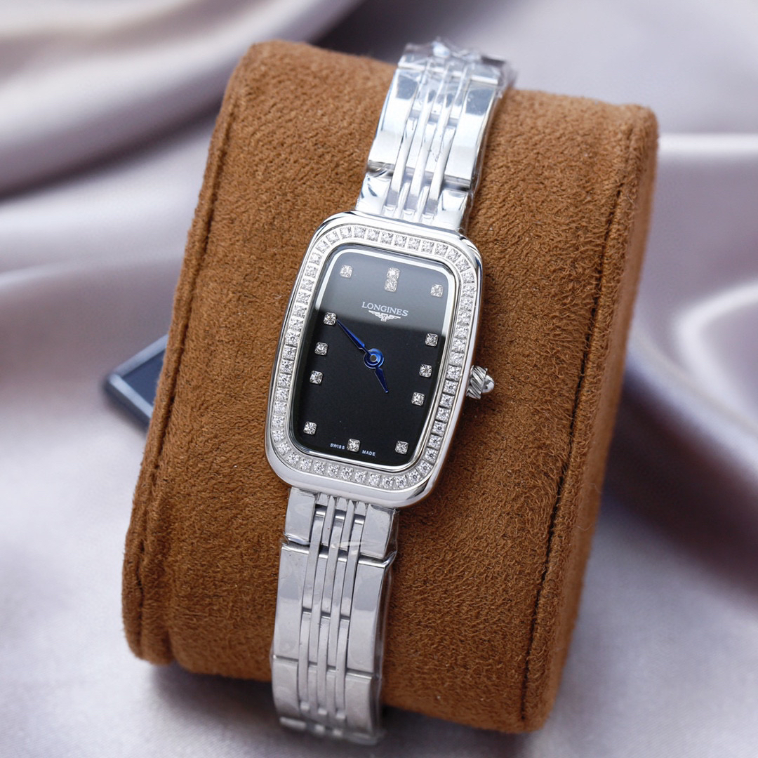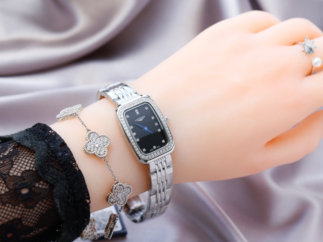 的特质,并以圆角代替尖锐的方形锋角,原装罗旋纹把头、批花精钢表针 十分雅致!上手效果极佳!采用石英进口机芯,圈口镶嵌的钻石晶莹质感 经典罗马面 阿拉伯数字面、双卜桥形玻璃 ,原装浪琴专用按扣…漂亮。
