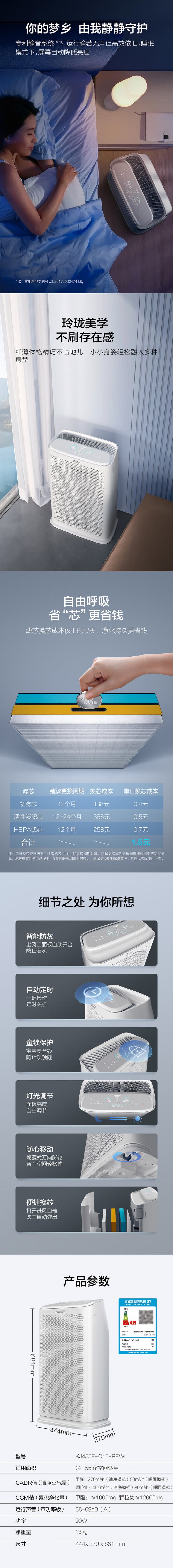 史密斯(12675)空气净化器除甲醛净化器空气过滤 除细菌异味PM2.5过敏原除烟味甲醛数显智能控制 KJ455F-C15-PFWi 空气净化器 KJ455F-C15-PFWi