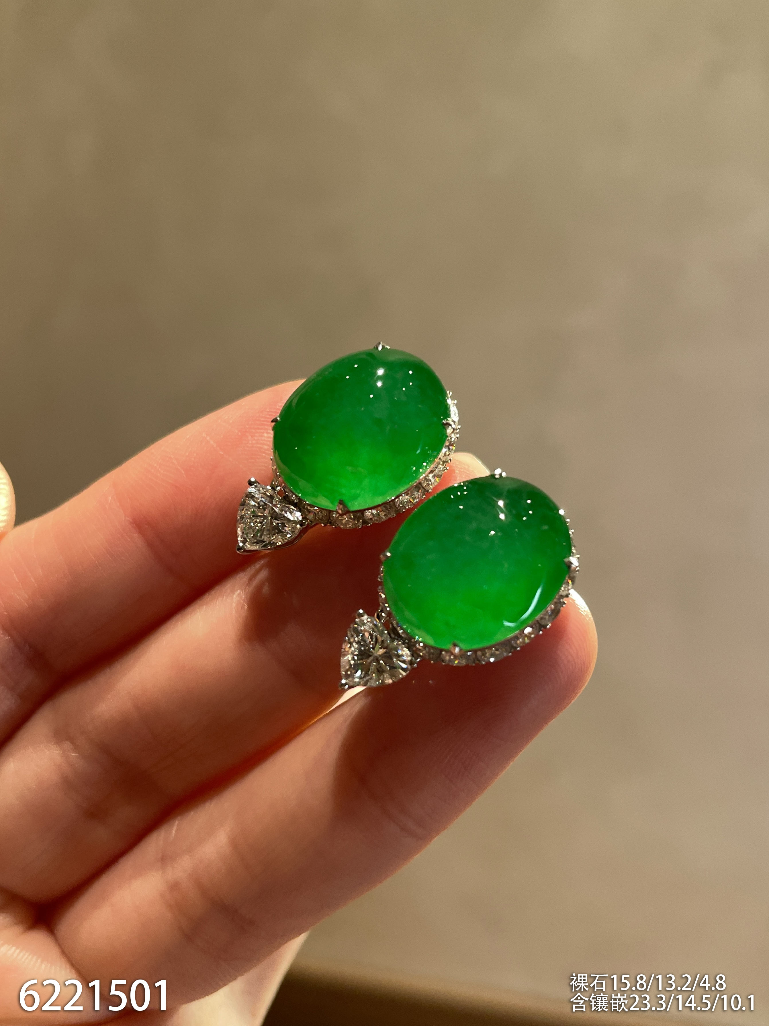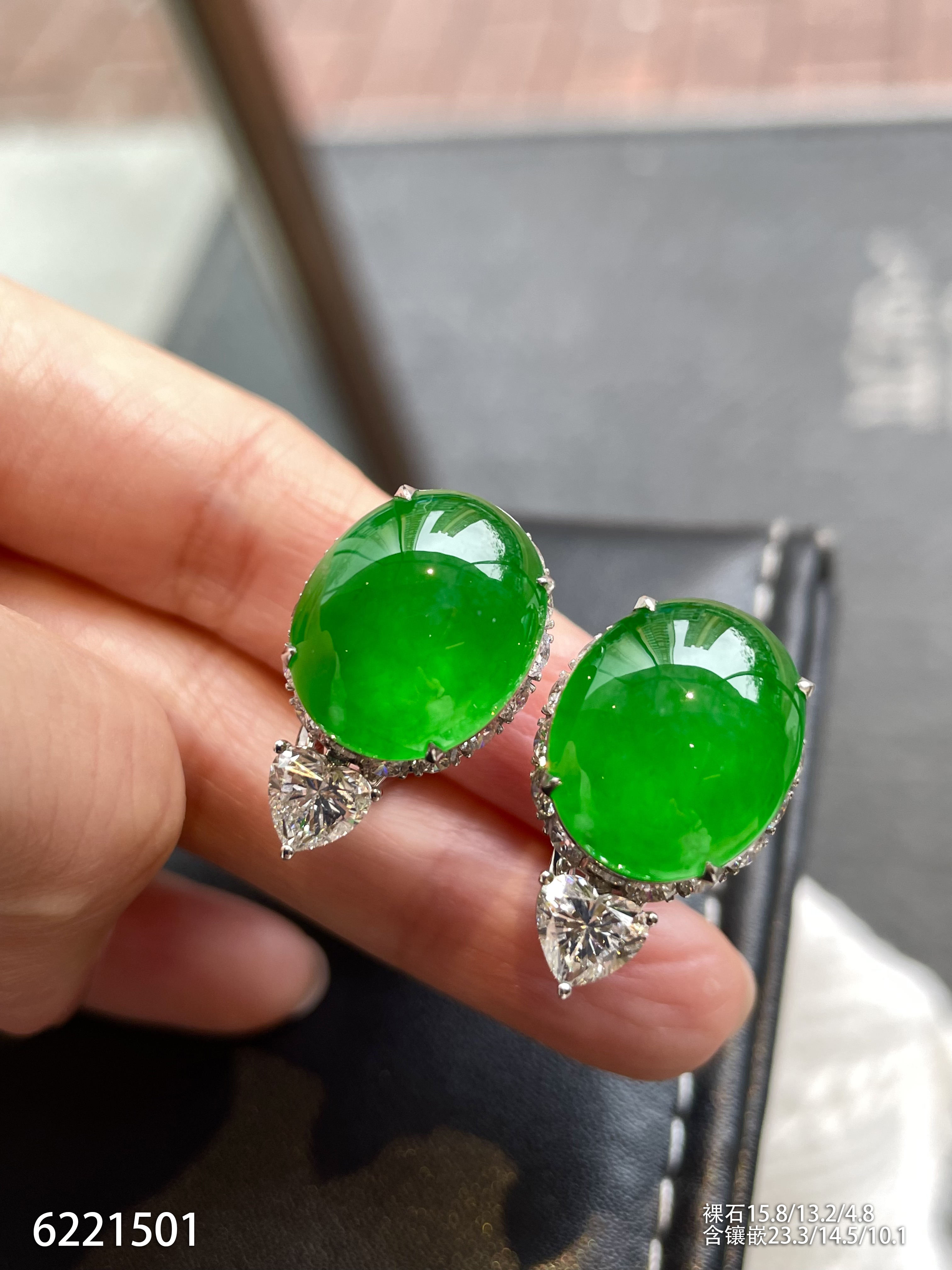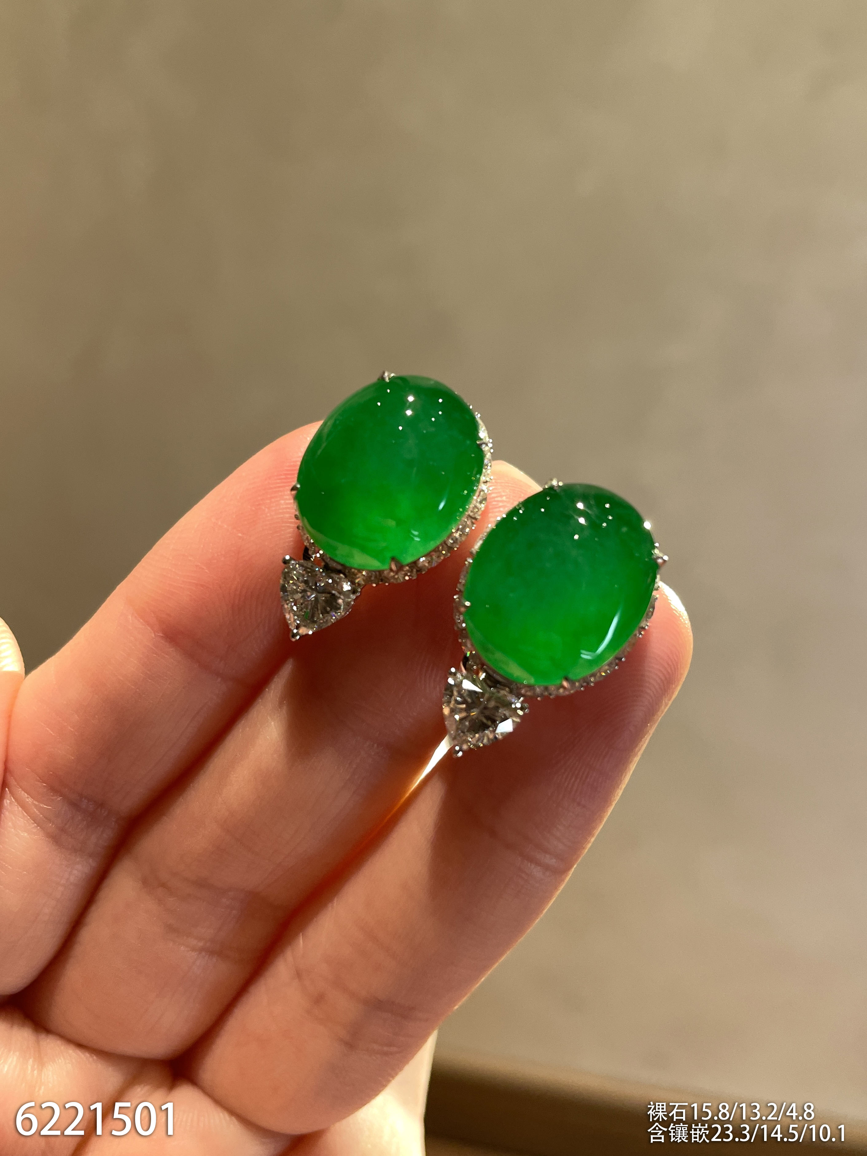 高冰种艳绿蛋面耳钉【6221501】具体价格微信咨询