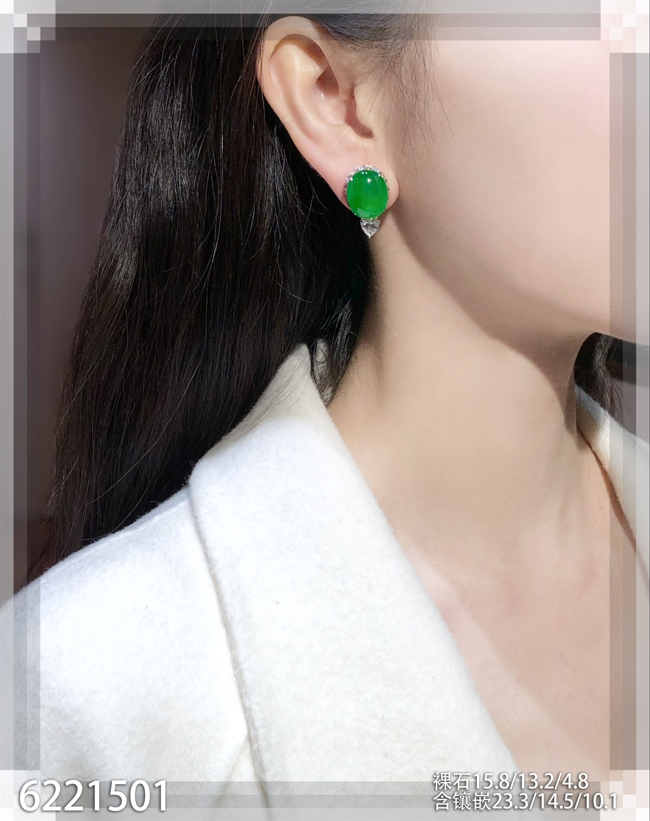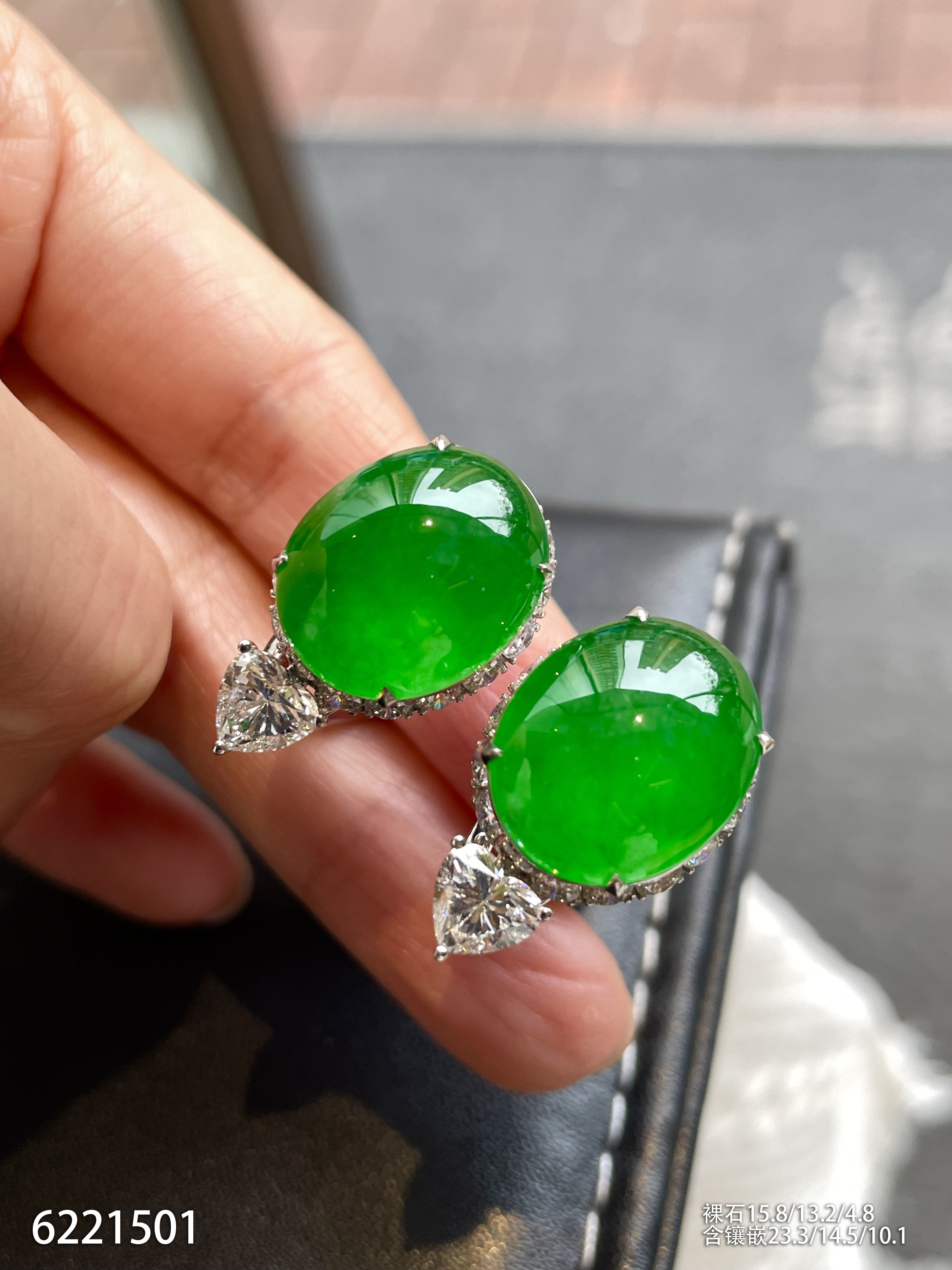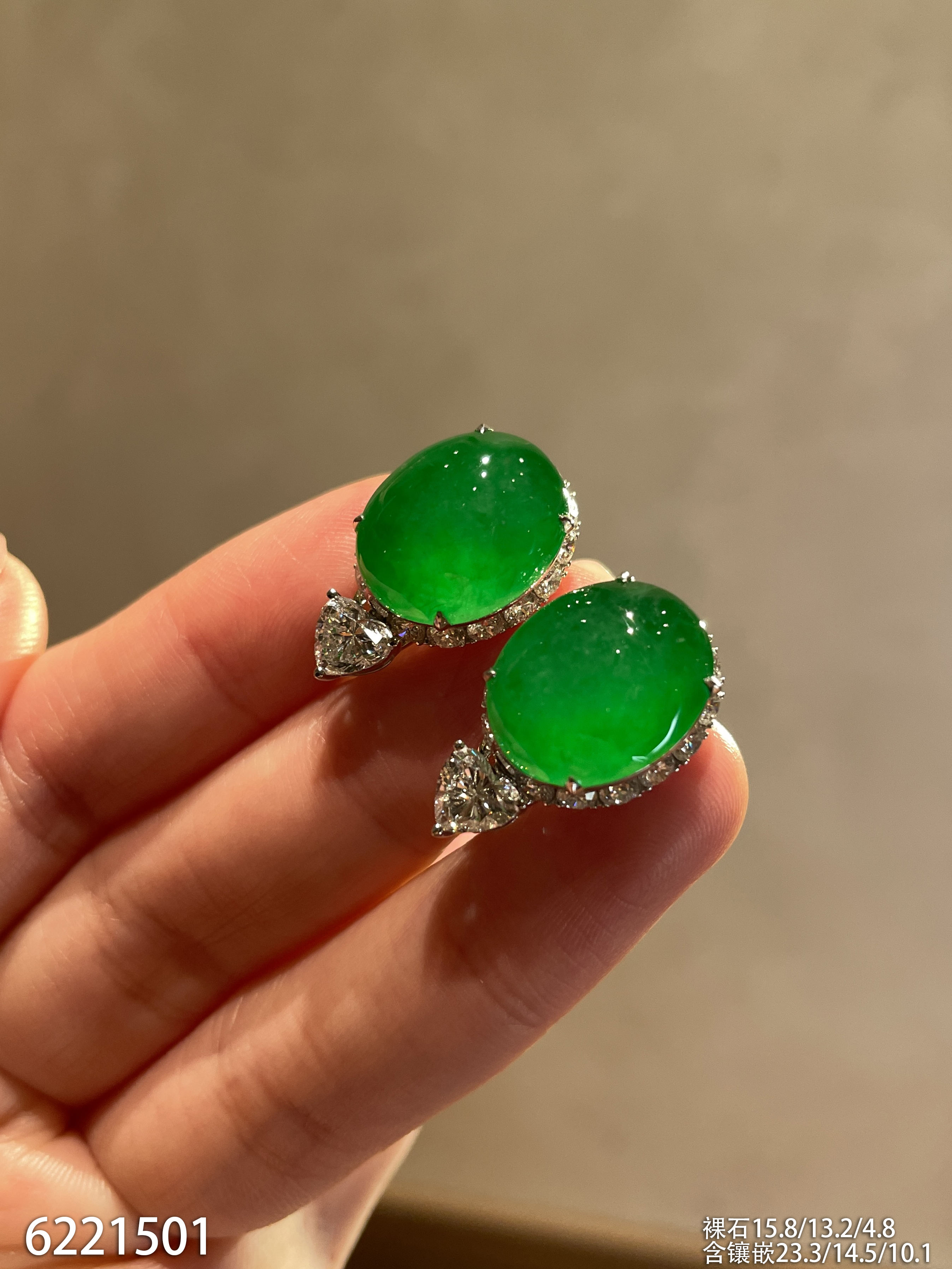 高冰种艳绿蛋面耳钉【6221501】具体价格微信咨询