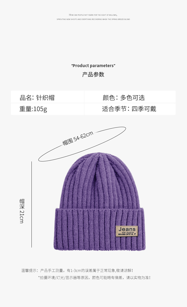 「六色可选!颜值派」女秋冬毛线帽子纯色保暖套头瓜皮帽 字母毛线帽户外骑车防风帽配饰