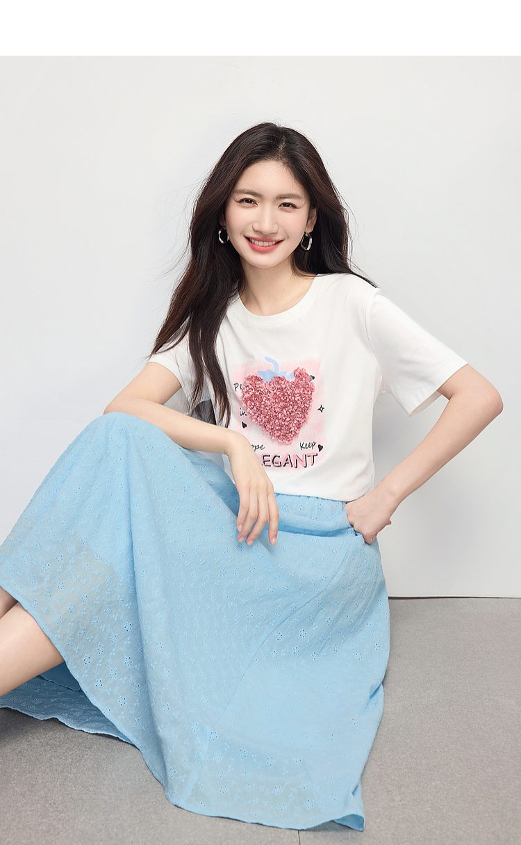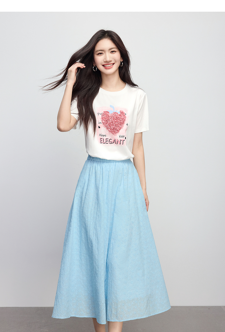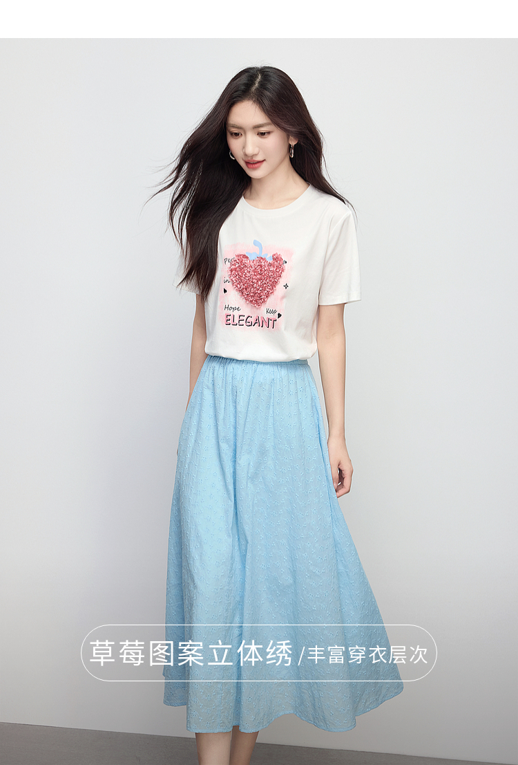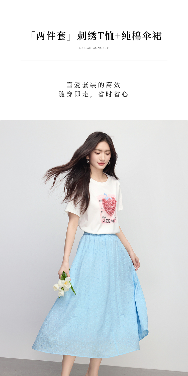 【专属特价】熙世界巨好看的夏天套装女新款时尚减龄印花T恤纯棉半身裙两件套