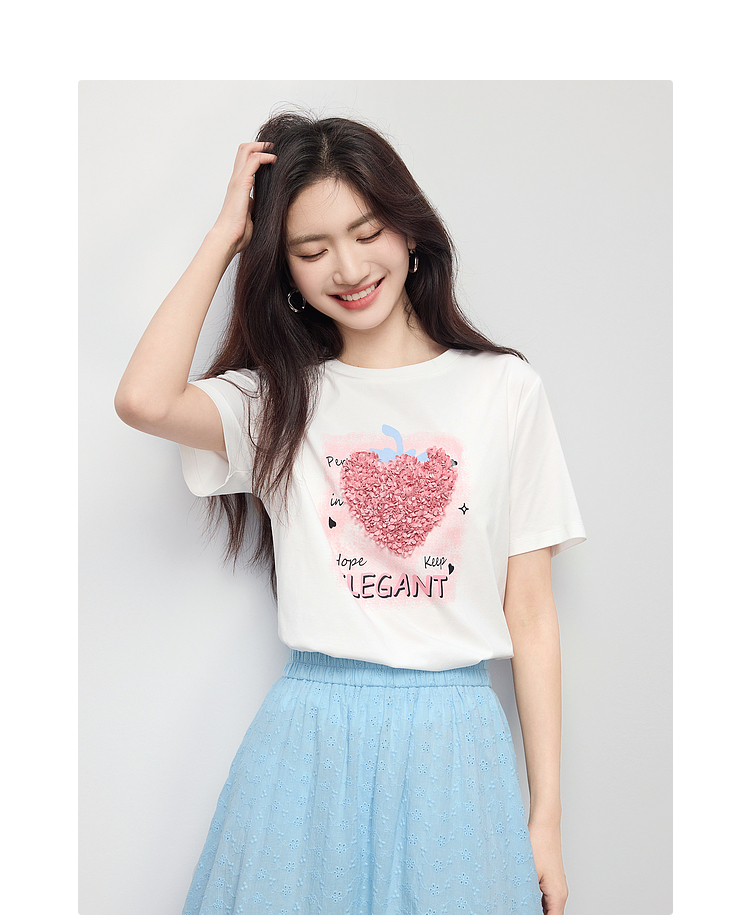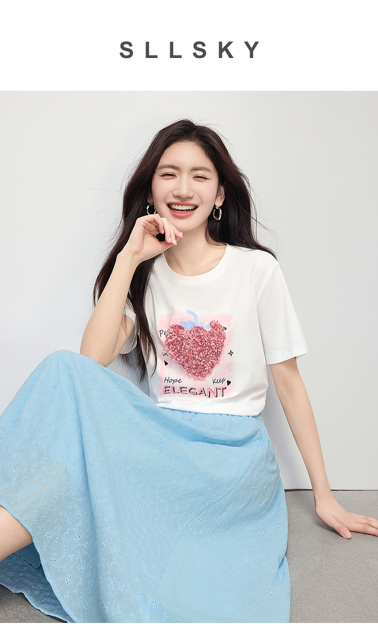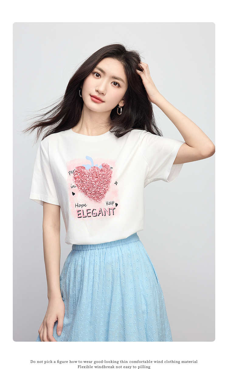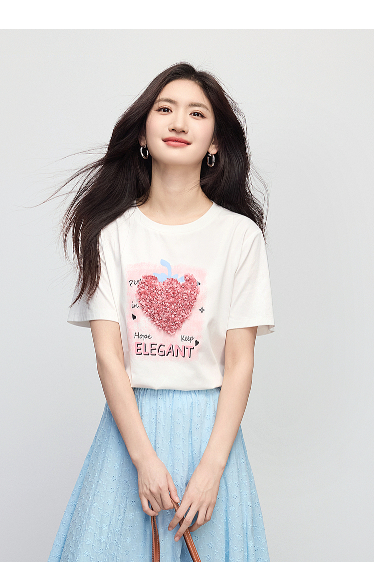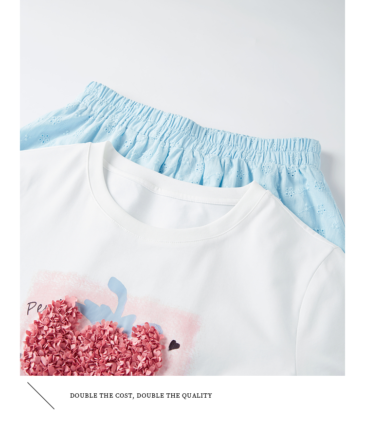 【专属特价】熙世界巨好看的夏天套装女新款时尚减龄印花T恤纯棉半身裙两件套