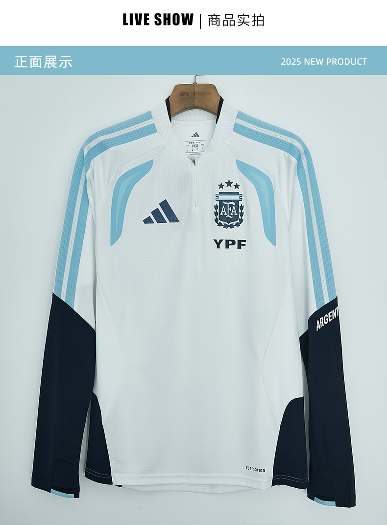 SFS阿迪达斯2026世界杯阿根廷冬季球员版半拉链训练服长袖JZ5969