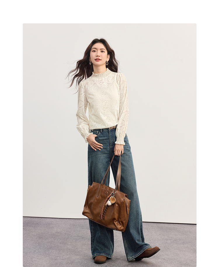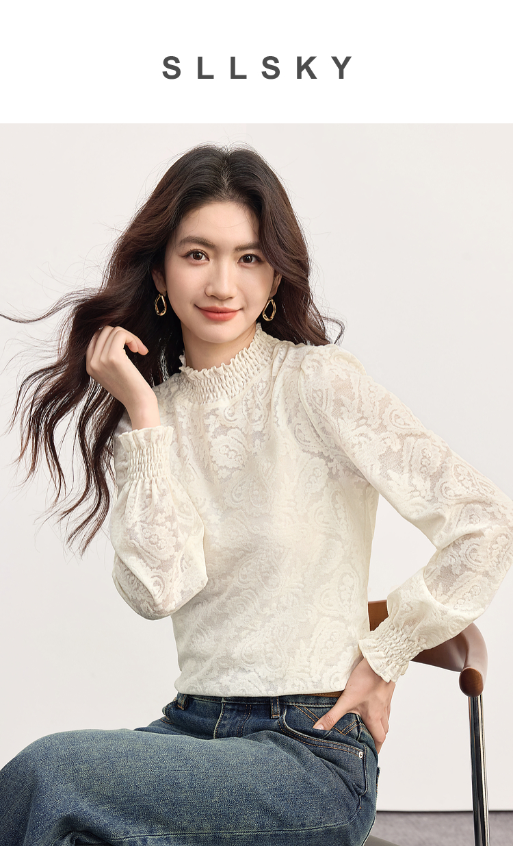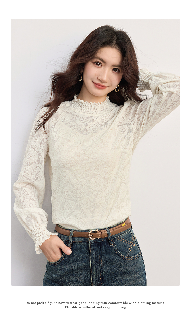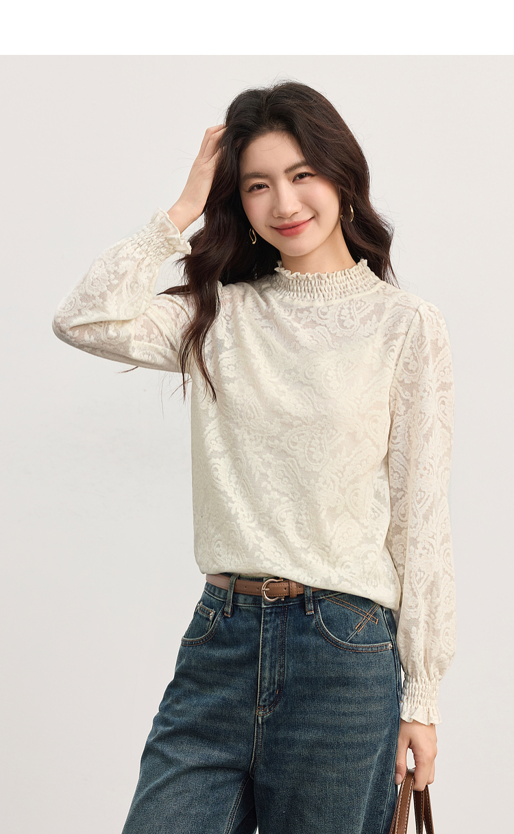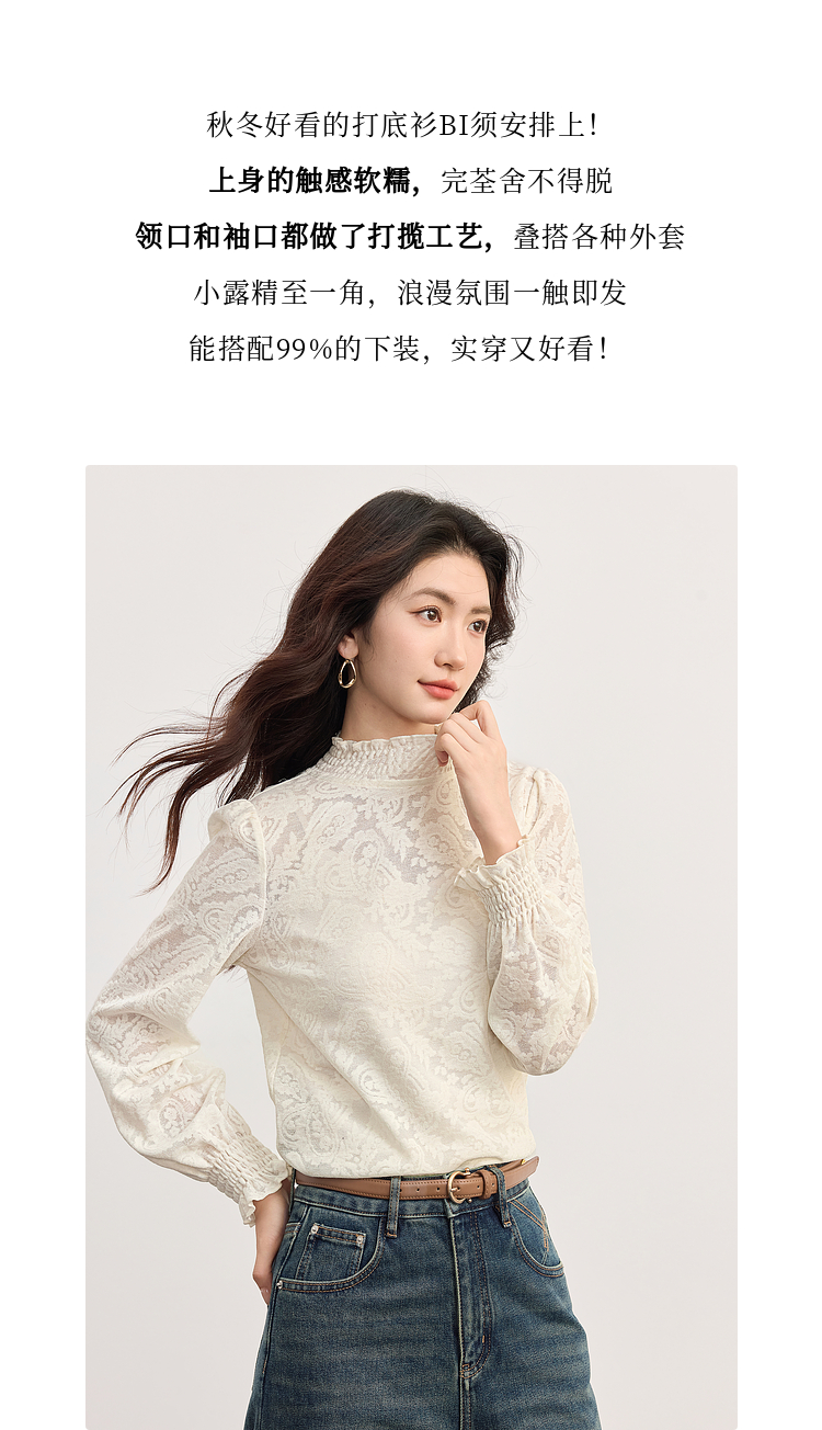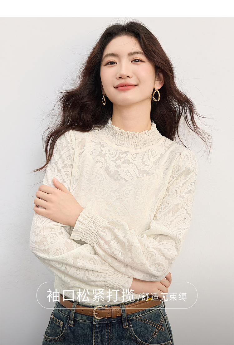 【09/03新品】熙世界半高领提花蕾丝打底衫女2025秋季新款独特别致内搭长袖上衣