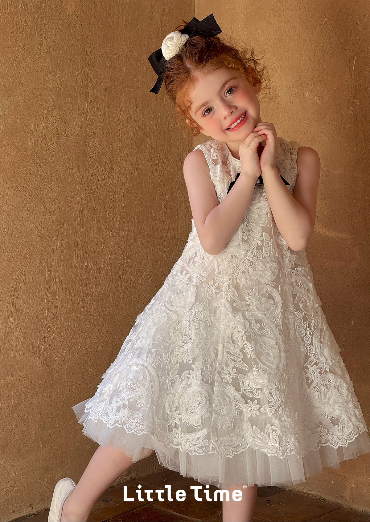 Little time女童连衣裙夏装2025新款儿童蕾丝网纱背心裙公主裙
