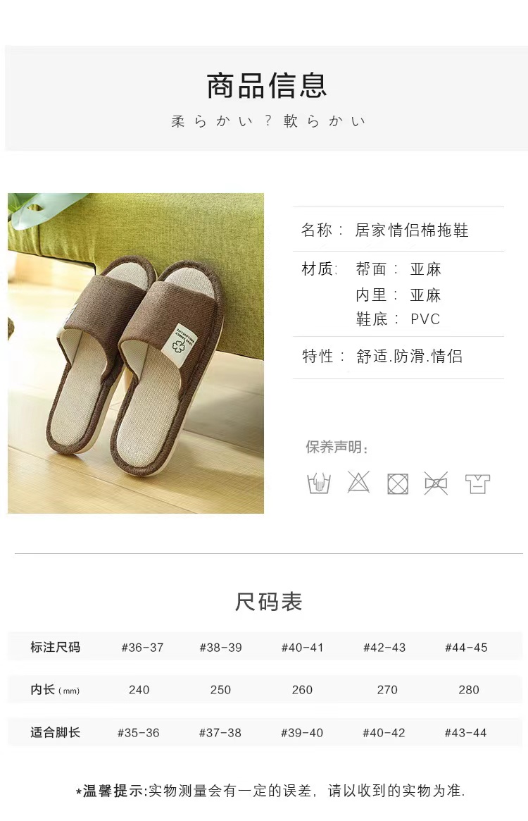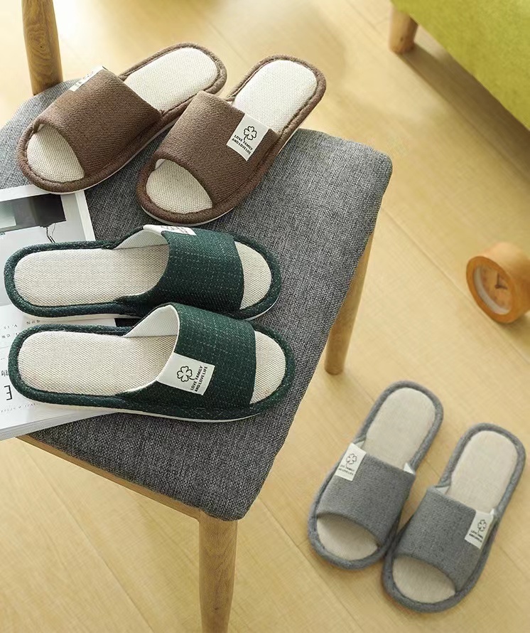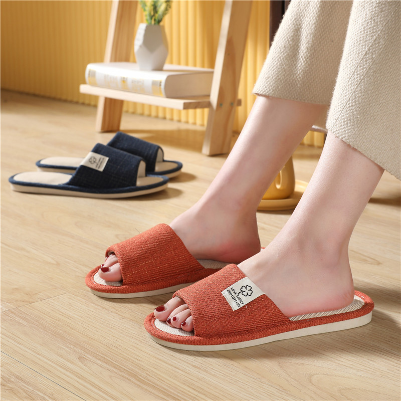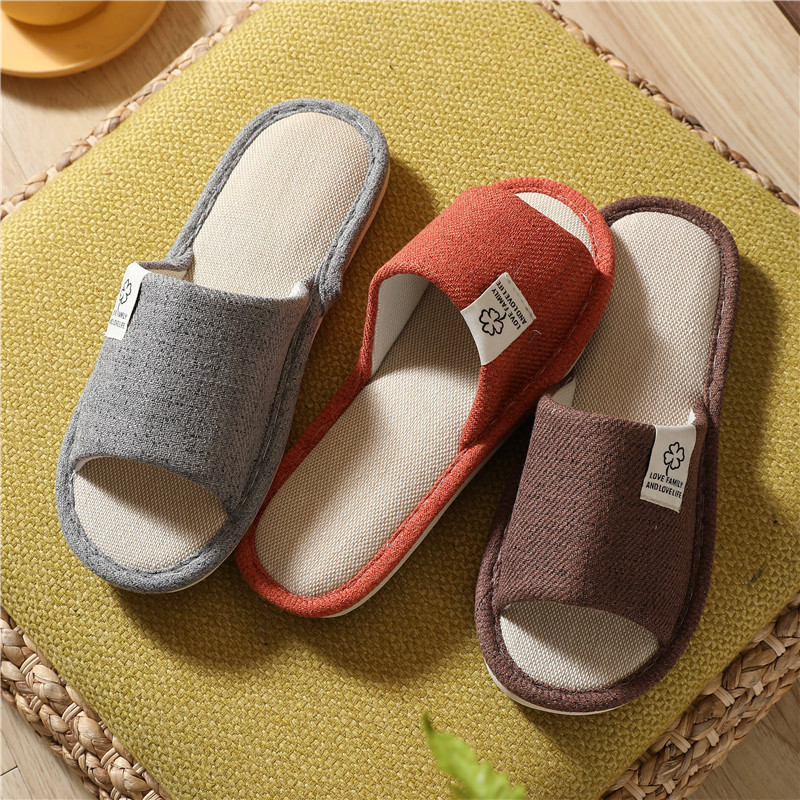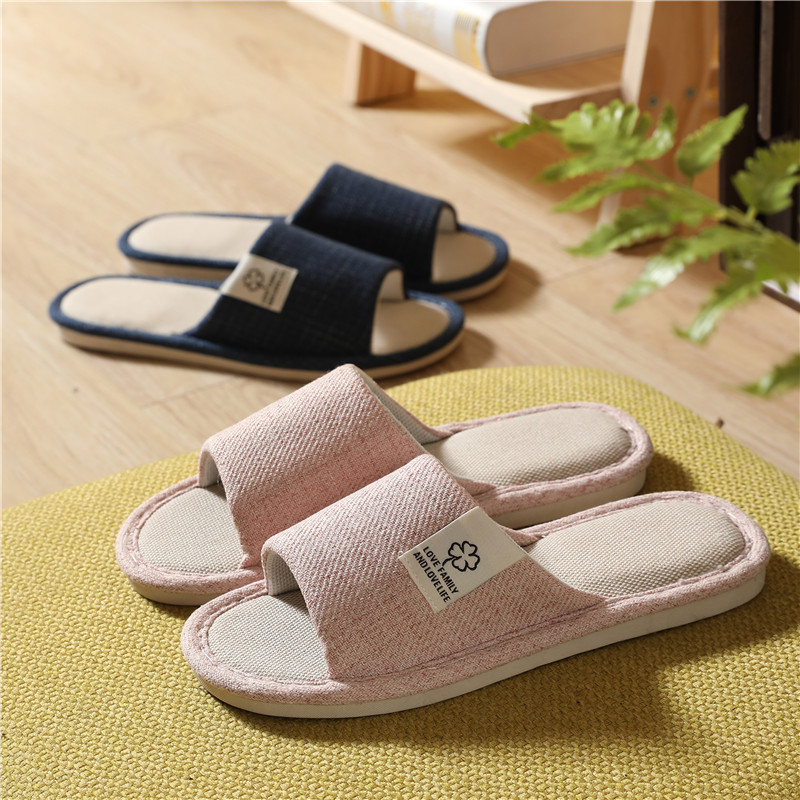 AMMJOOAUM 居家情侣拖鞋四季家居拖鞋室内棉亚麻布家用防滑静音地板凉拖