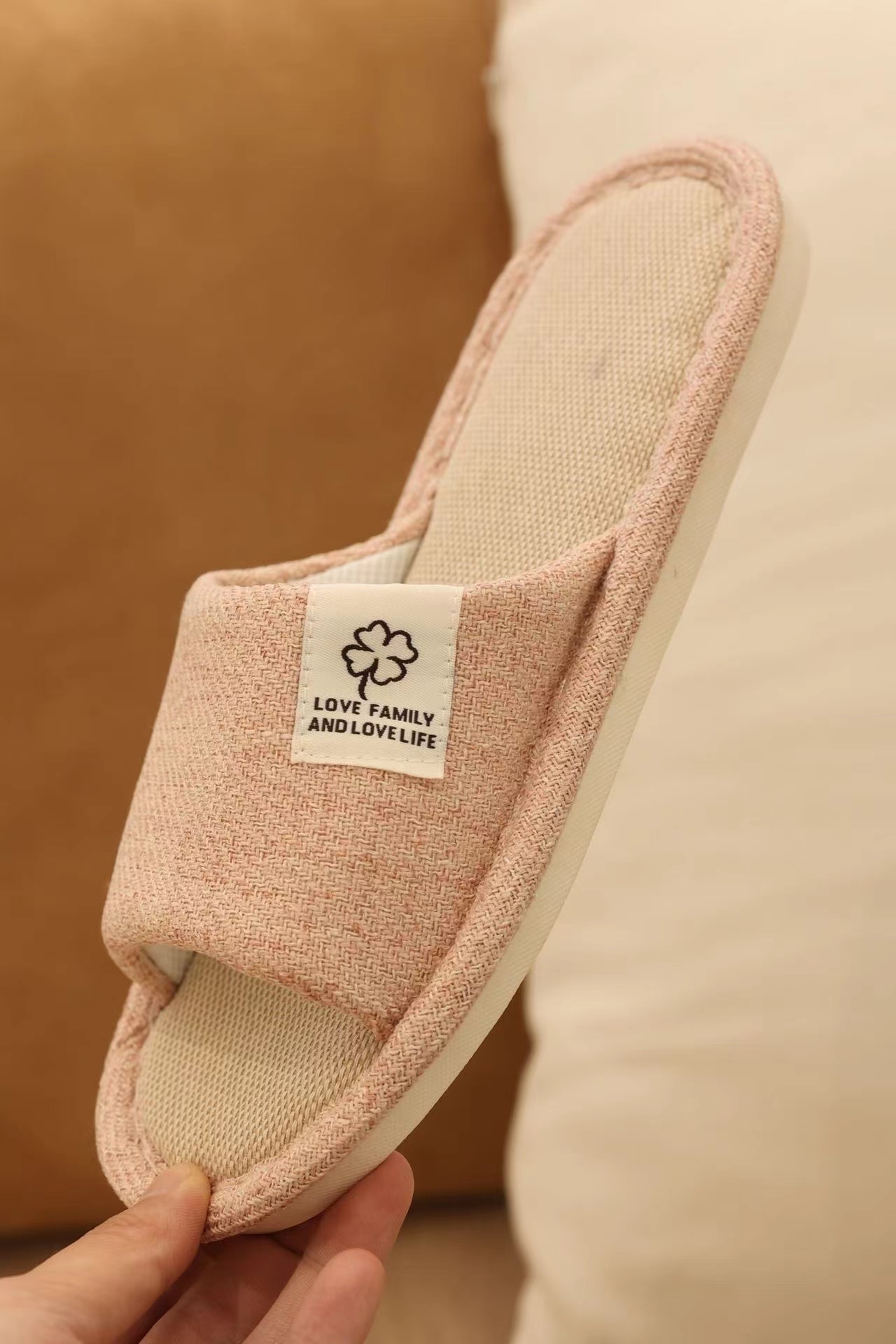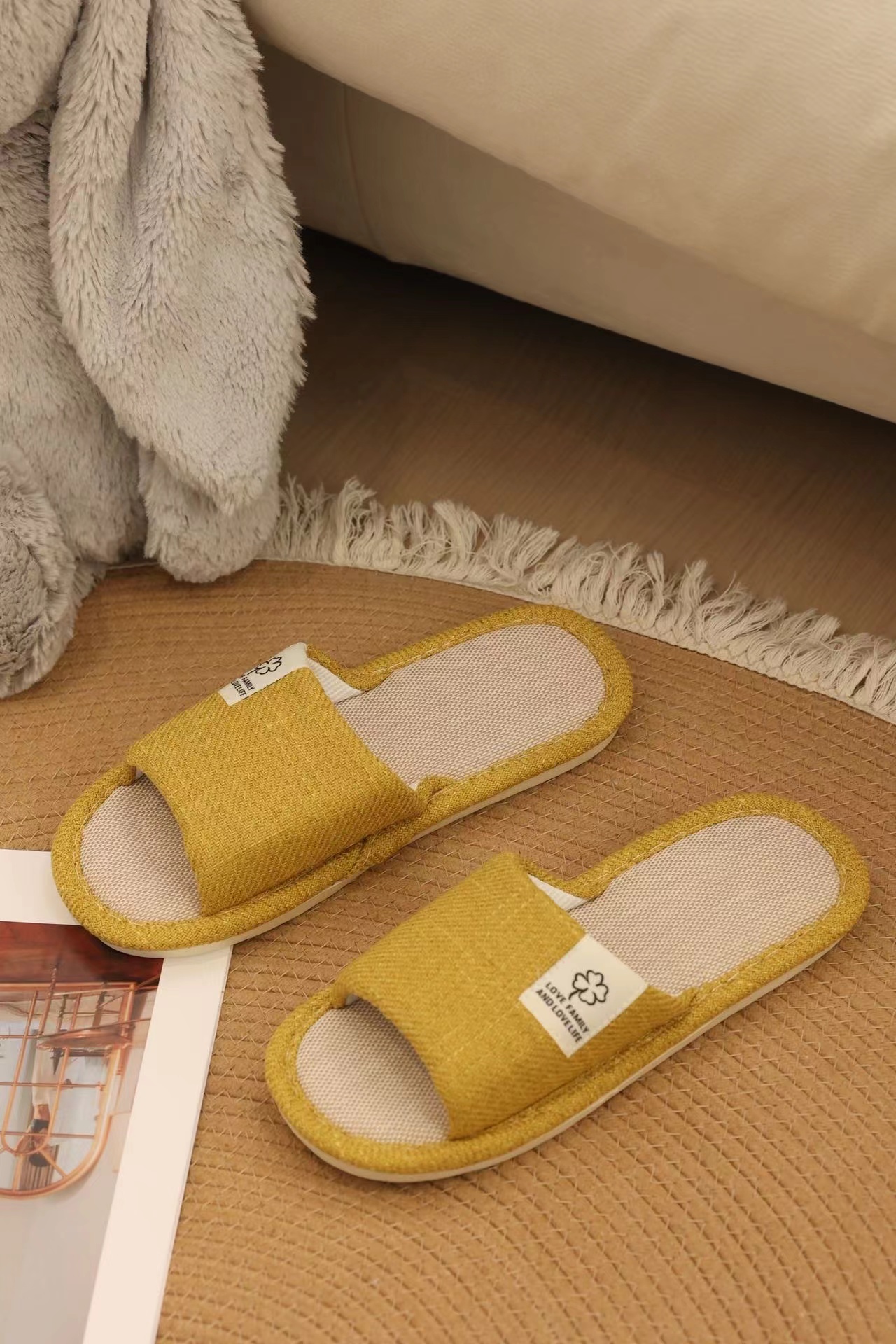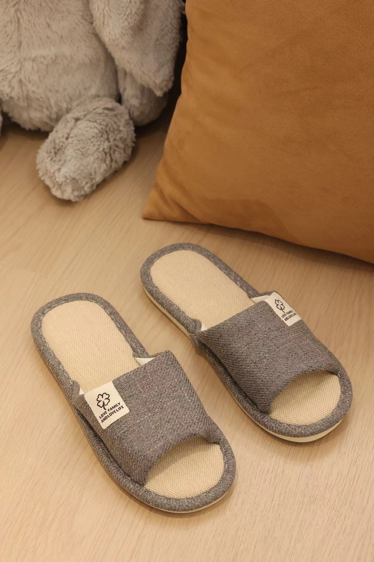 AMMJOOAUM 居家情侣拖鞋四季家居拖鞋室内棉亚麻布家用防滑静音地板凉拖