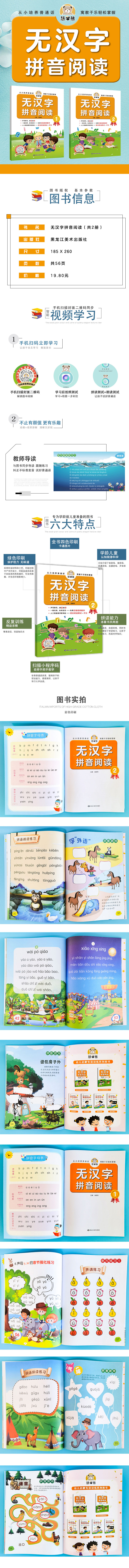 (仓发) 幼儿启蒙专项训练:无汉字拼音阅读2 彩色版幼小衔接 扫码看视频 学前教育启蒙 人工智能在线视频教学/黑龙江美术出版社/曲顺利/9787559356260