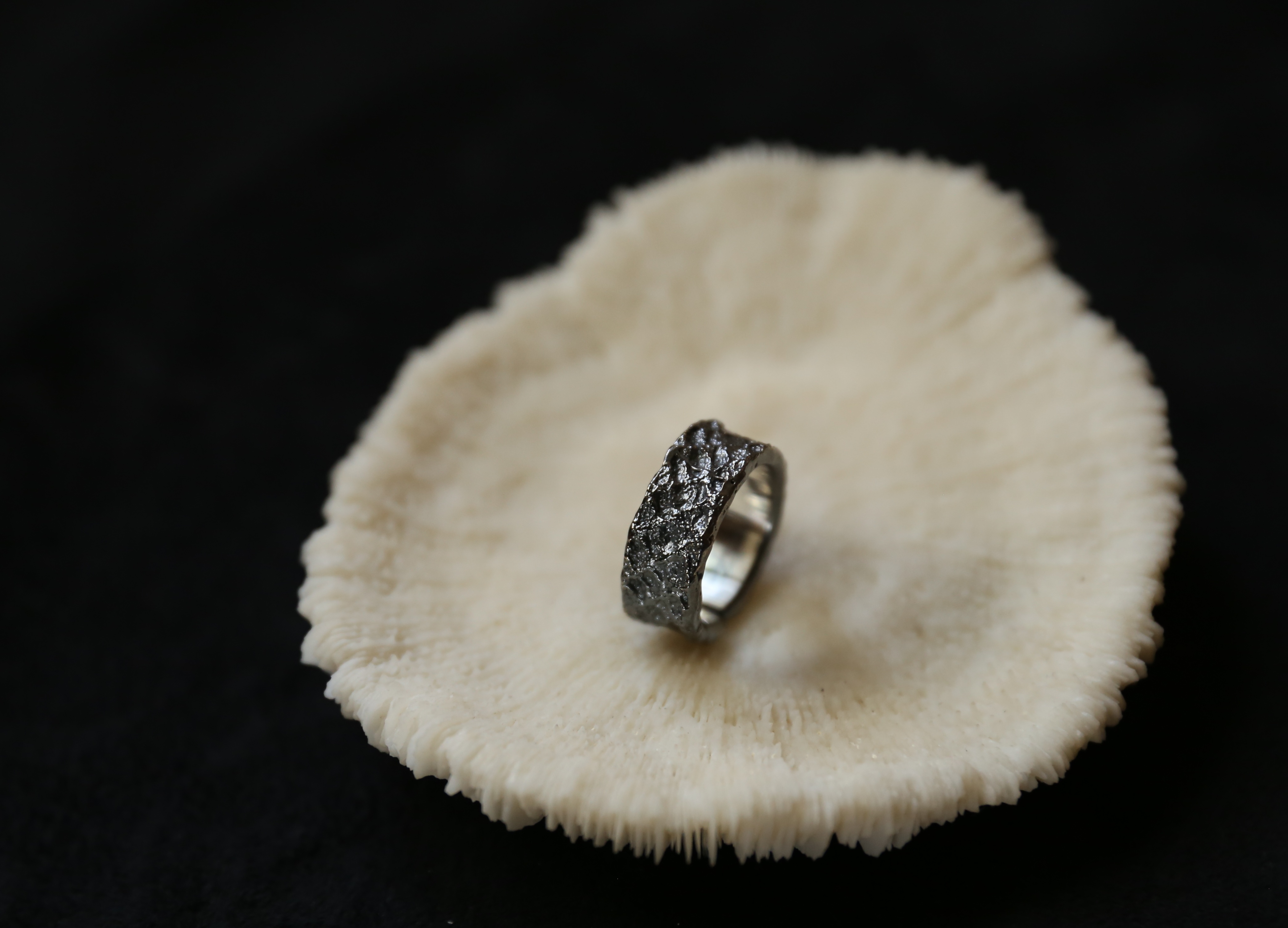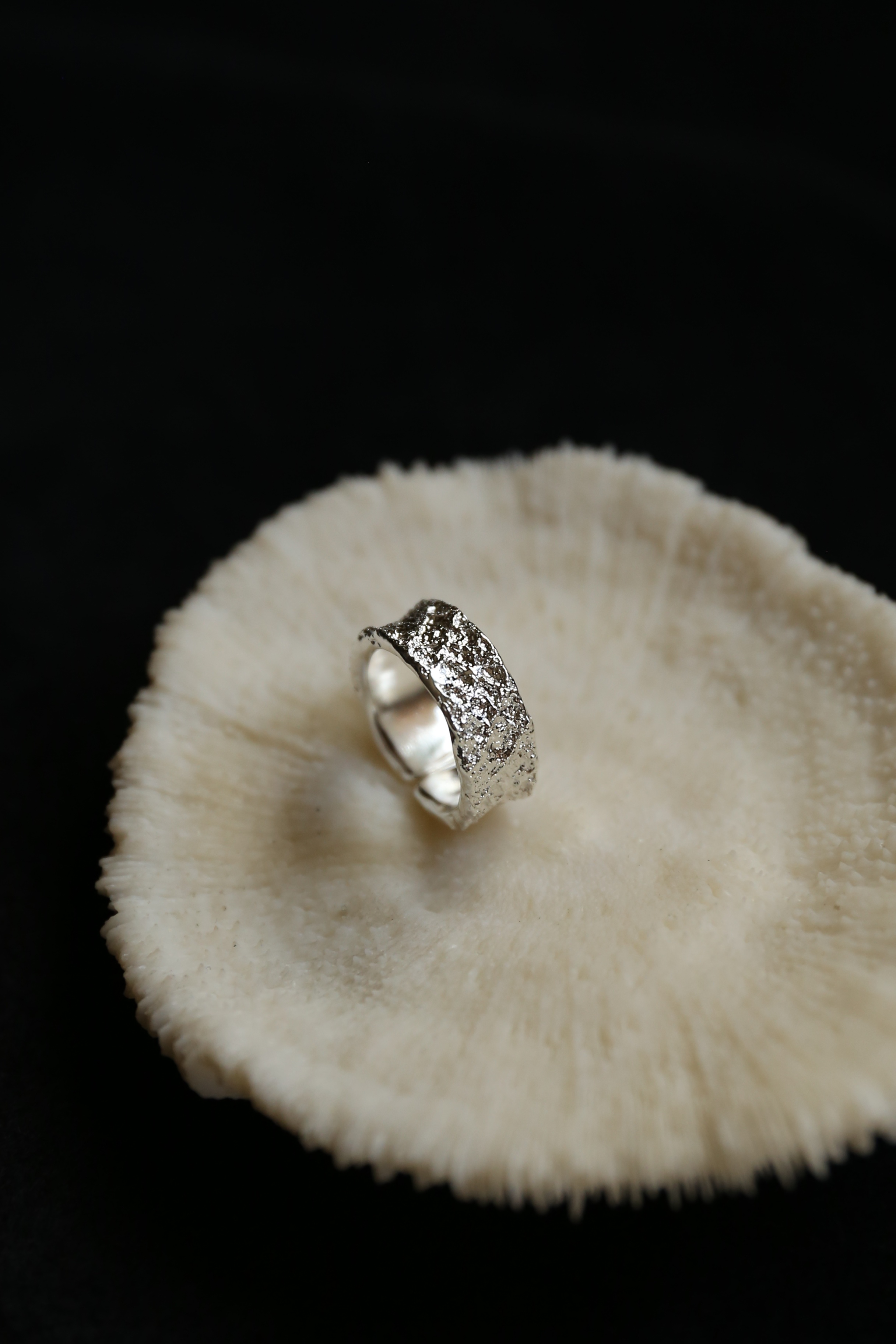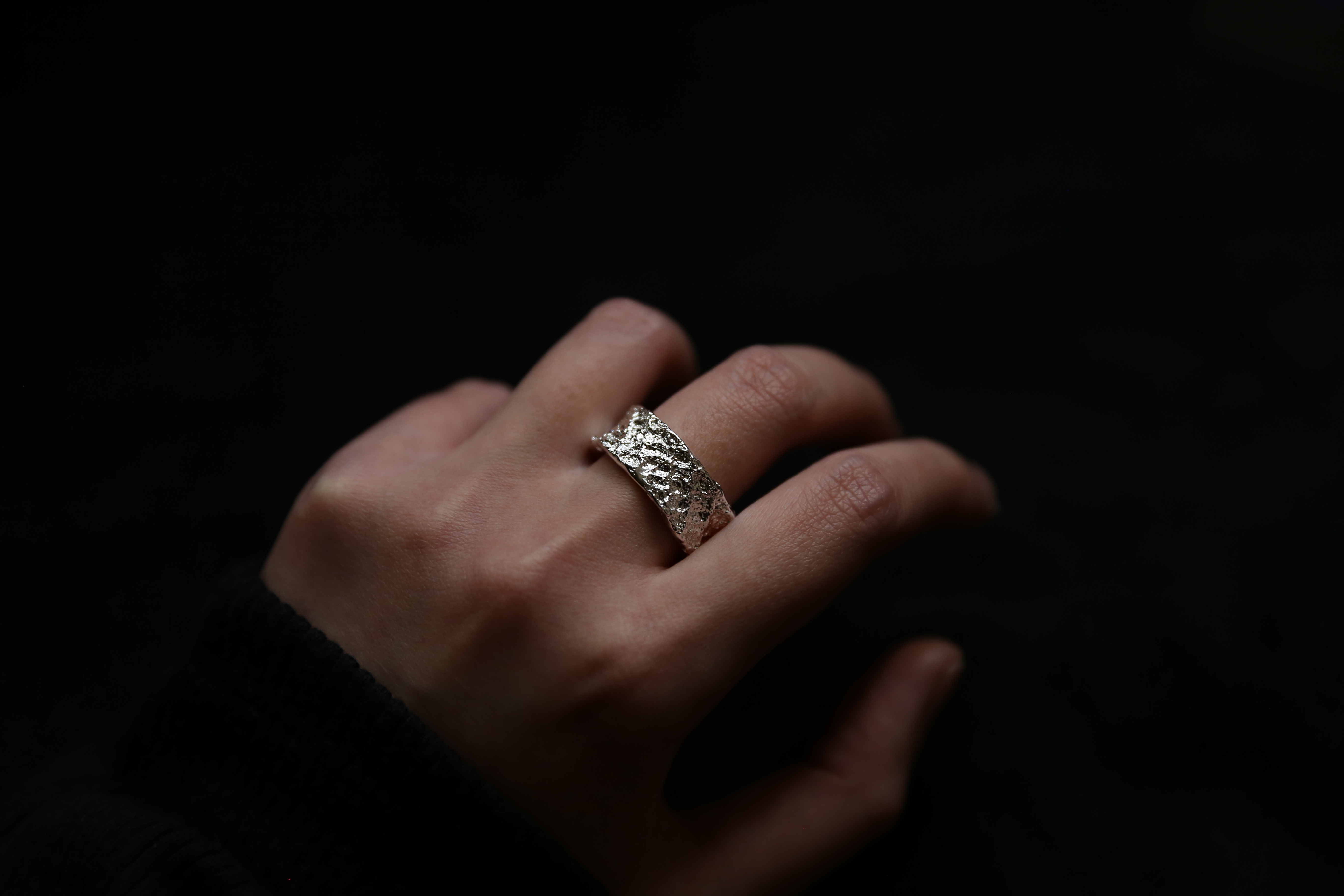 925银手工织物肌理戒指