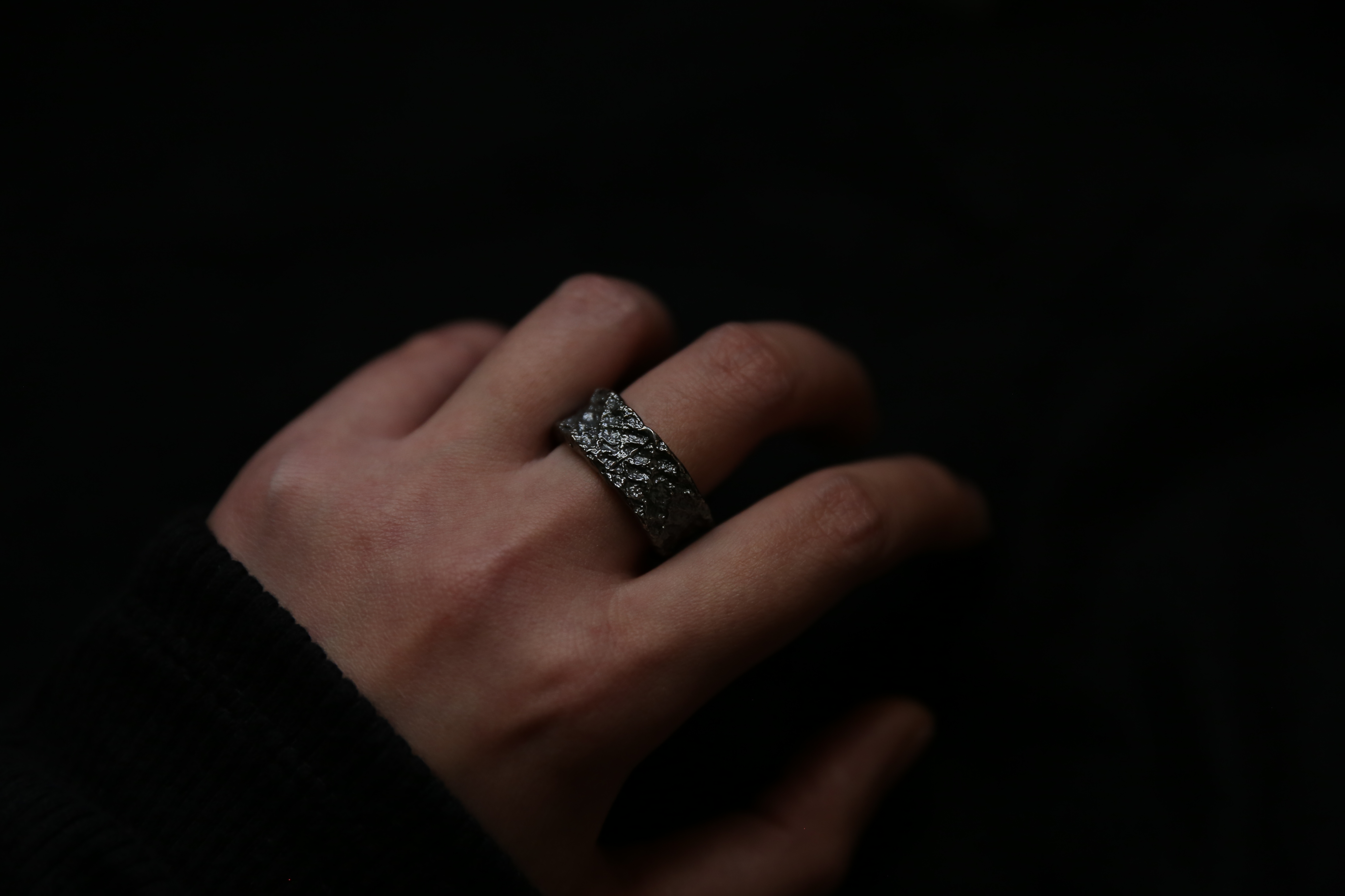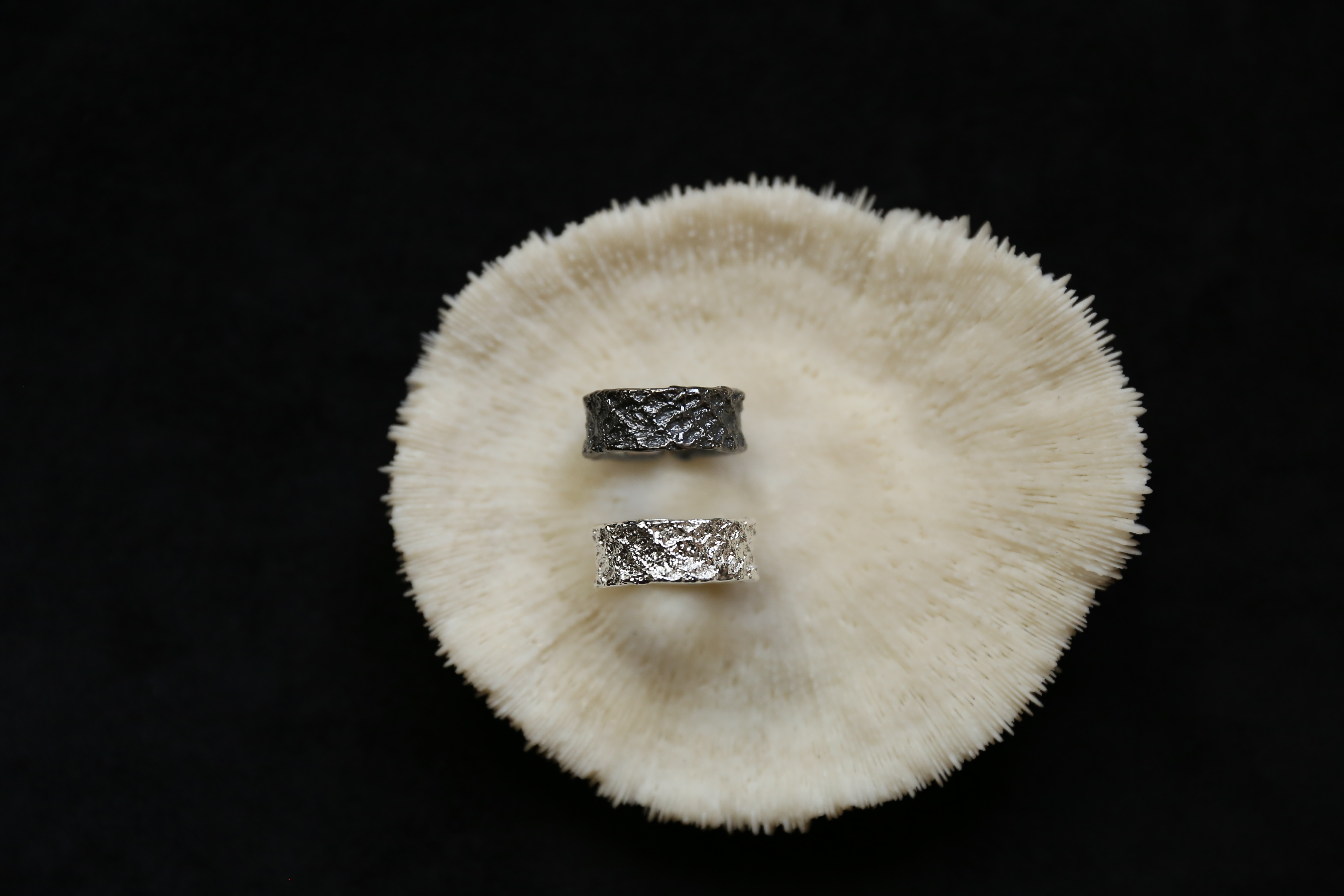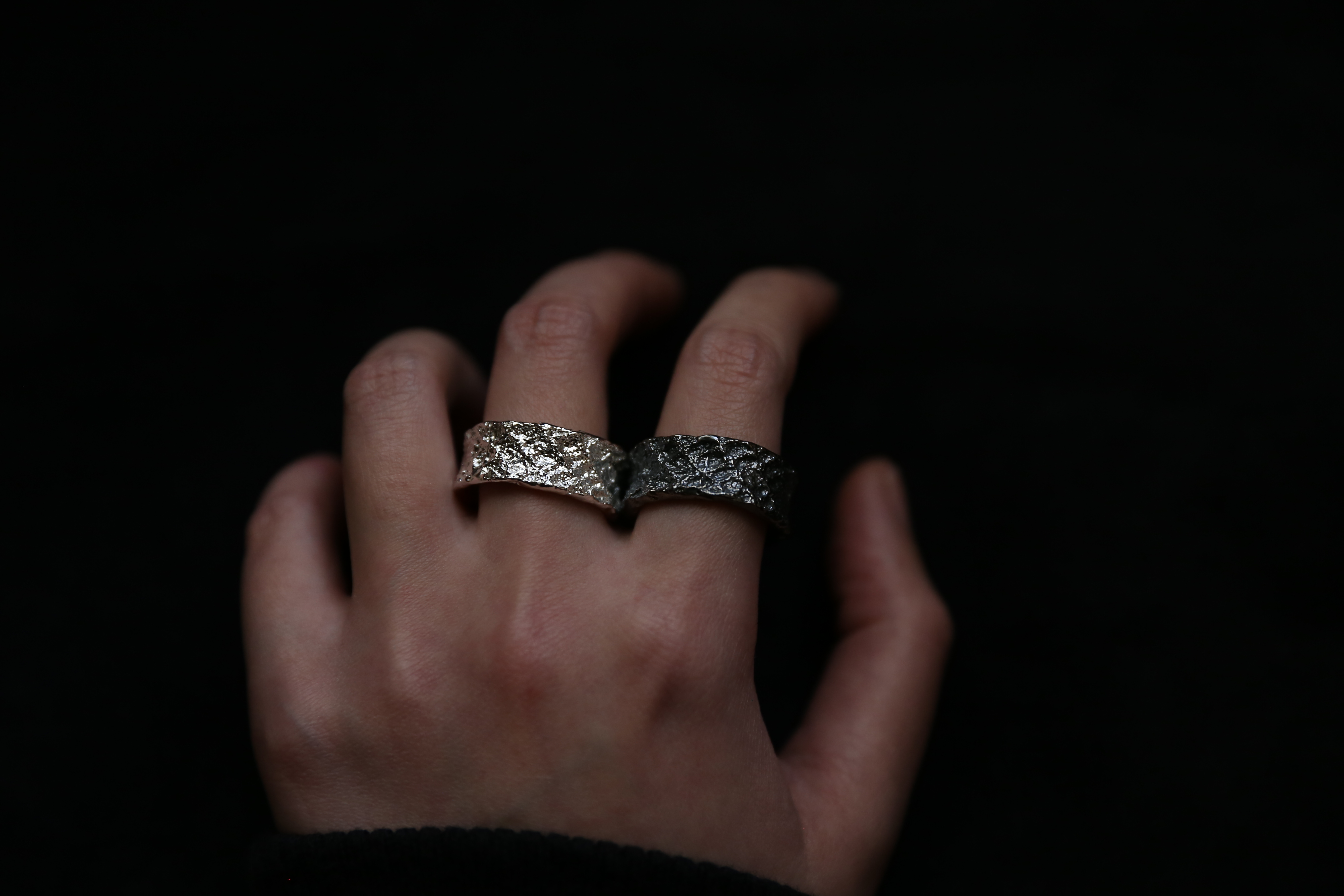 925银手工织物肌理戒指
