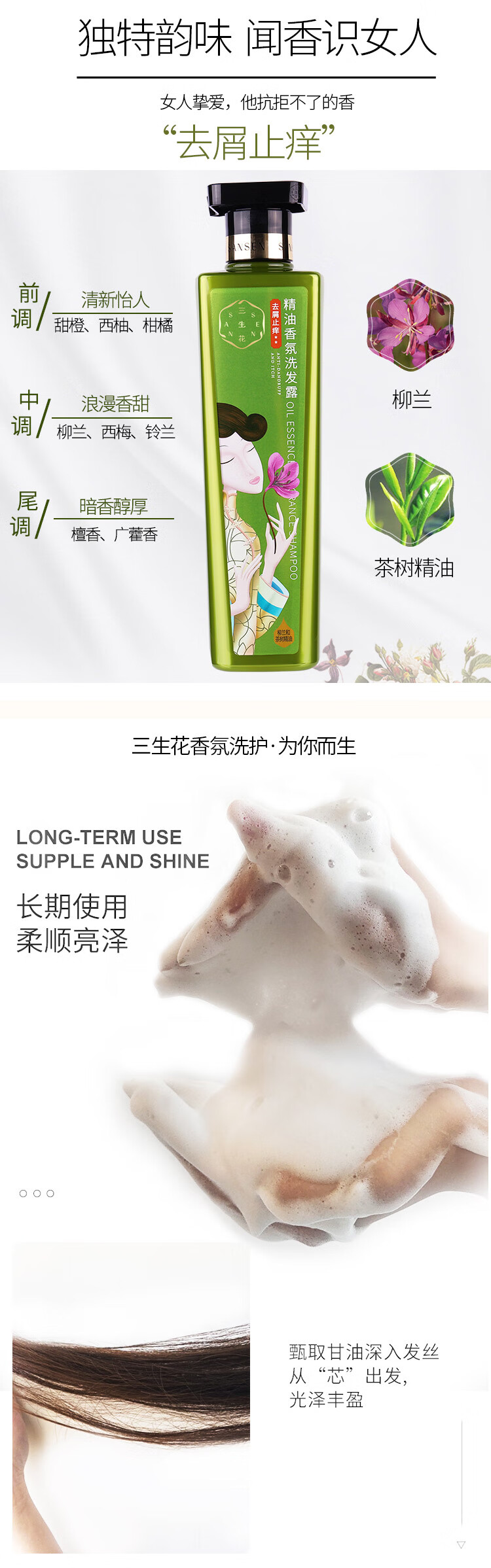 三生花精油香氛洗发露(去屑止痒)800ml(发新包装)