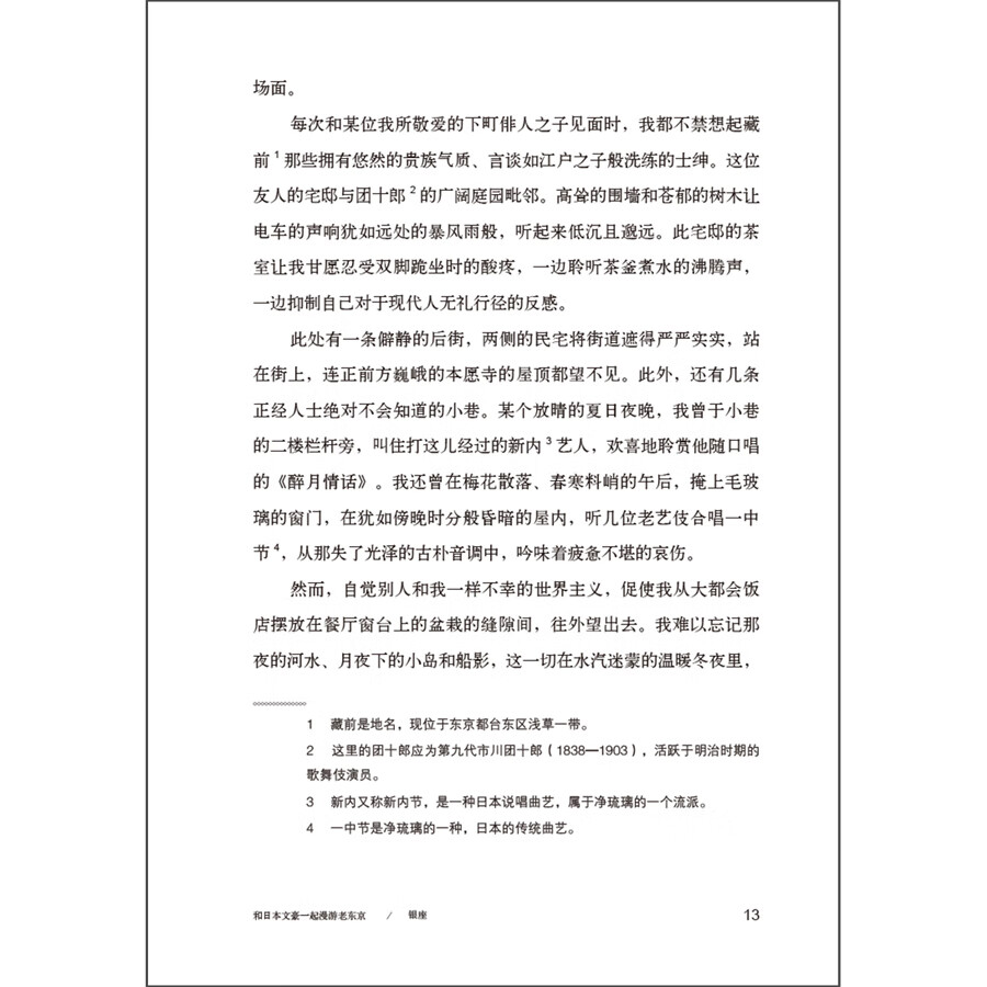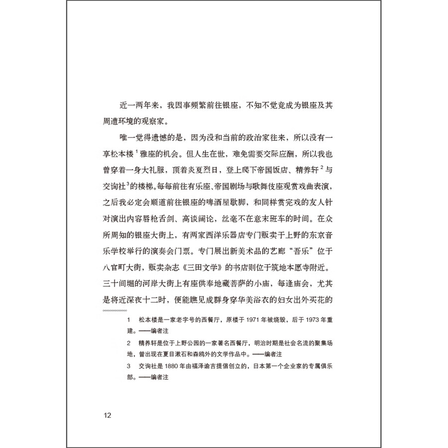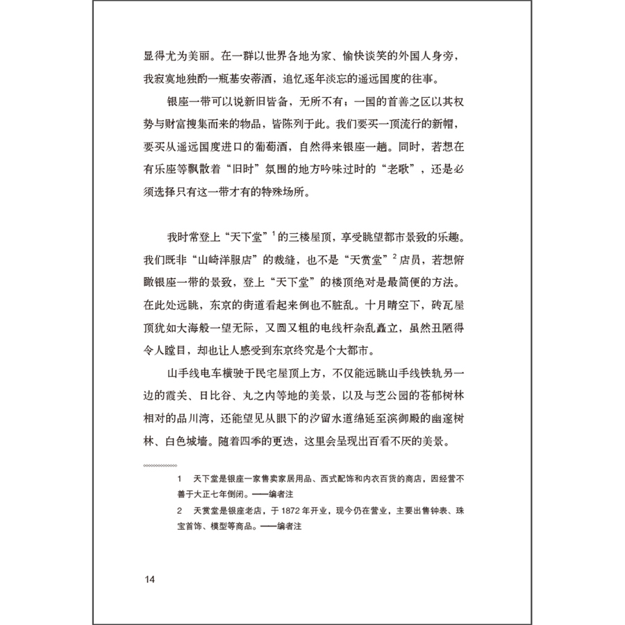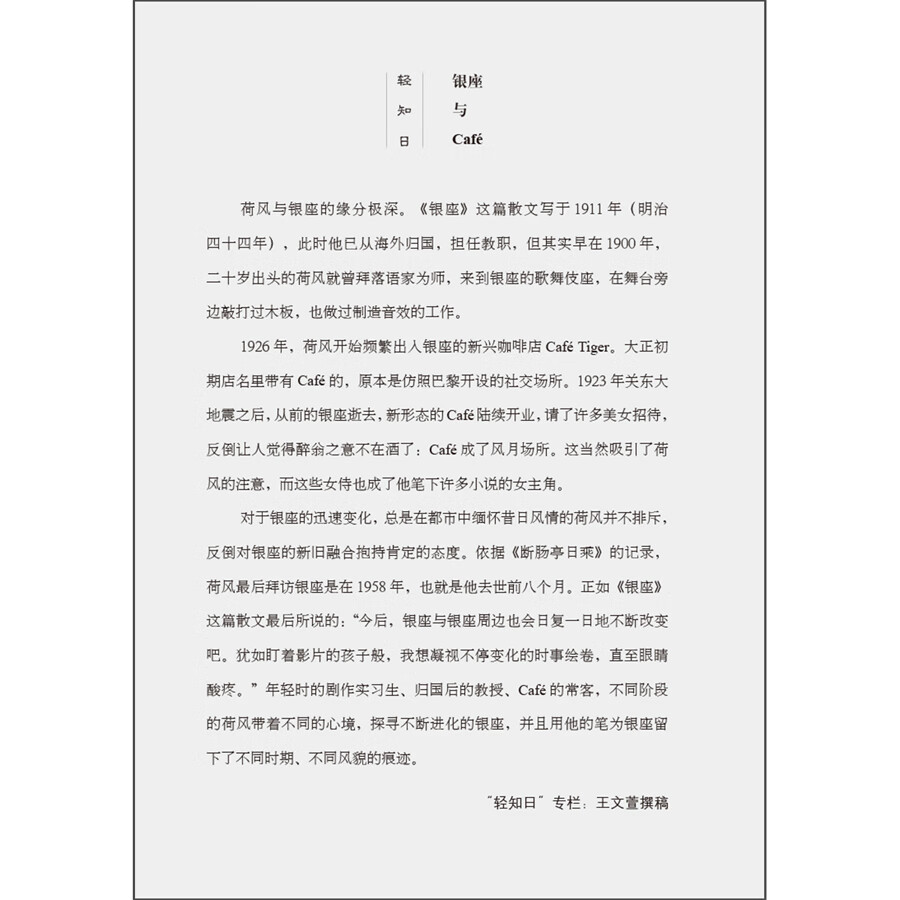 街景不断变化的银座,充满庶民人情的浅草,承载着荷风年少回忆的传通院……不少地方如今仍是东京著名的旅行地标。永井荷风如同摊开了一张老东京的城市地图,将他眼界所及的每一个角落,以及他对东西方文化、历史与现代、生活与艺术的感悟,在本书中一网打尽。