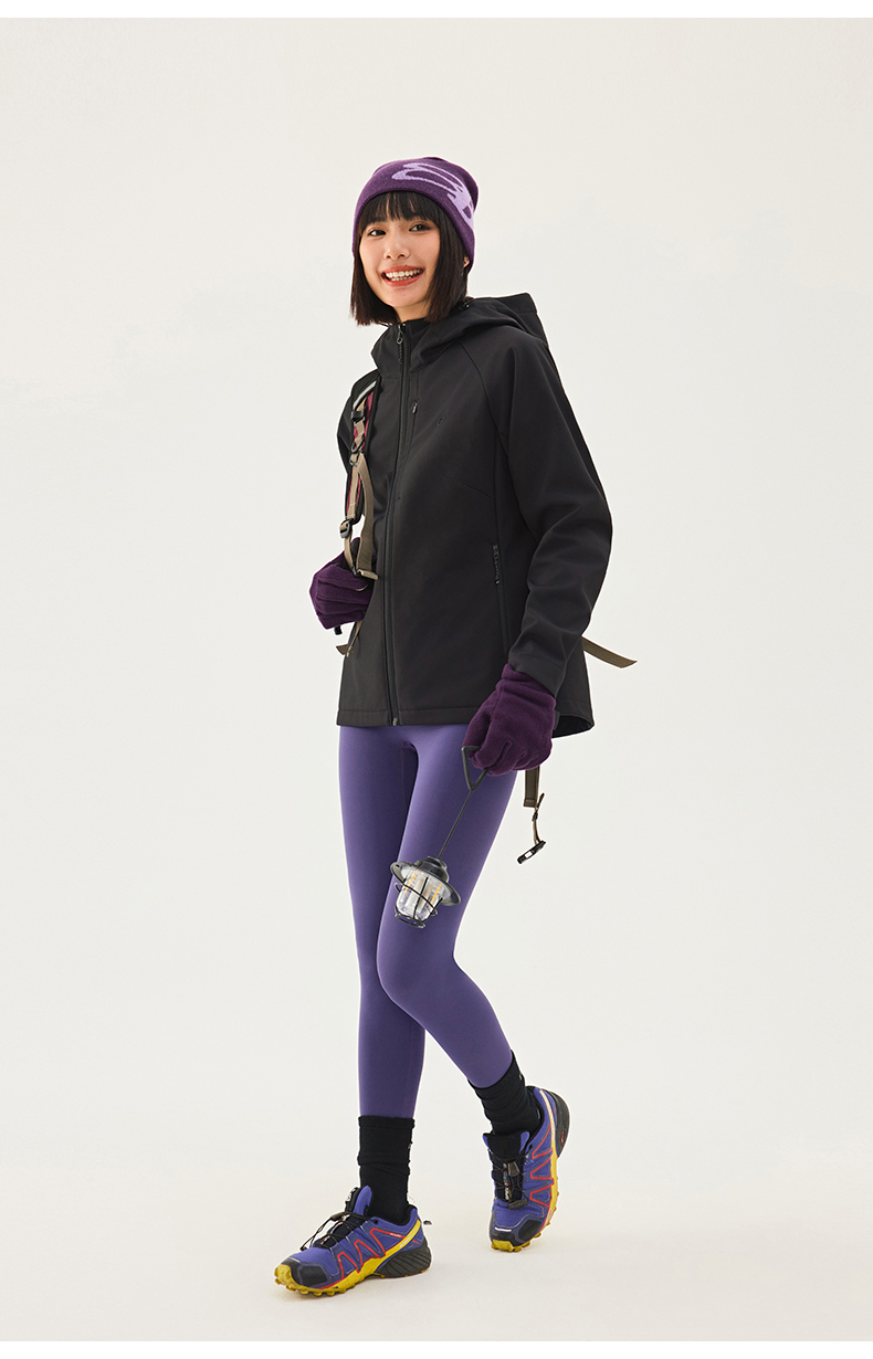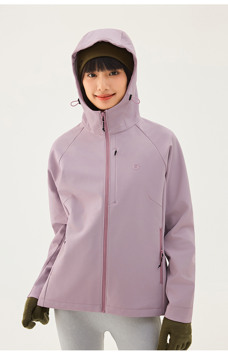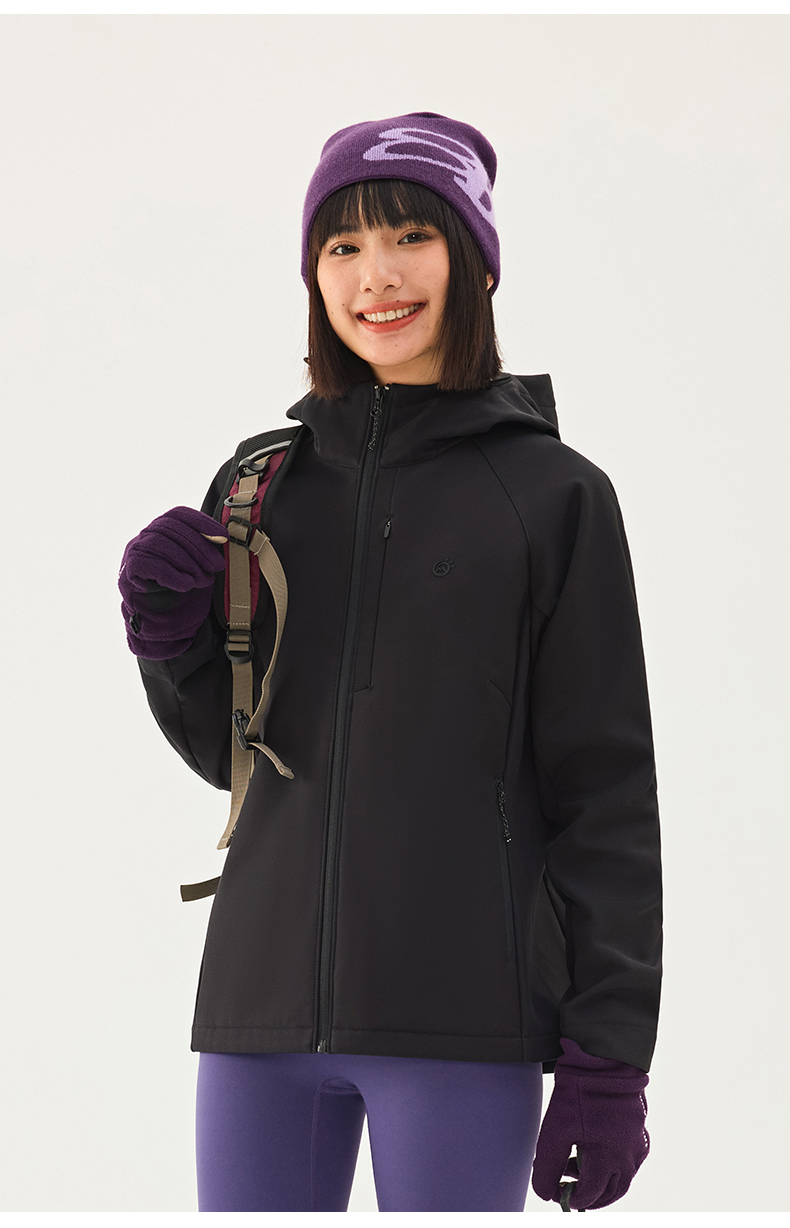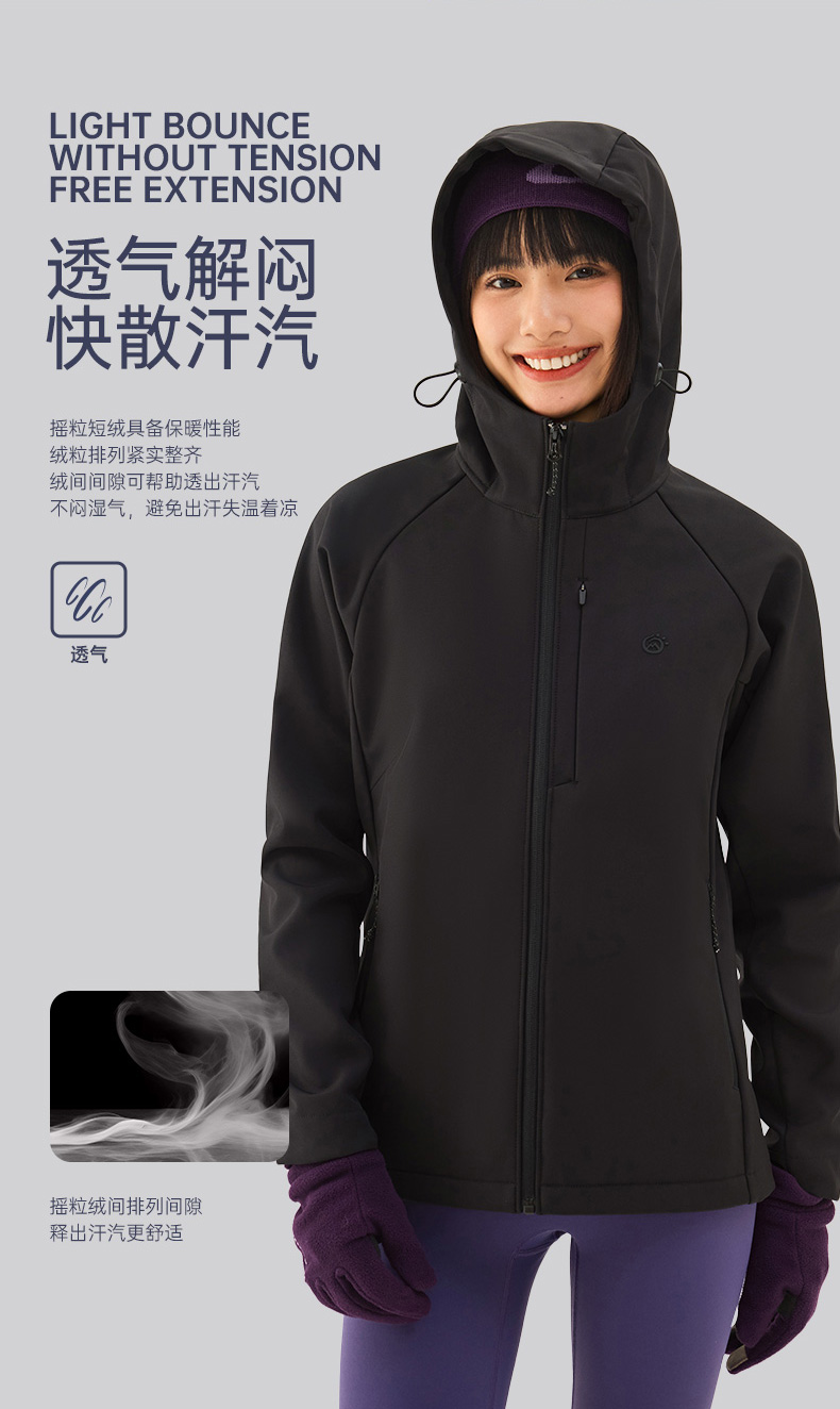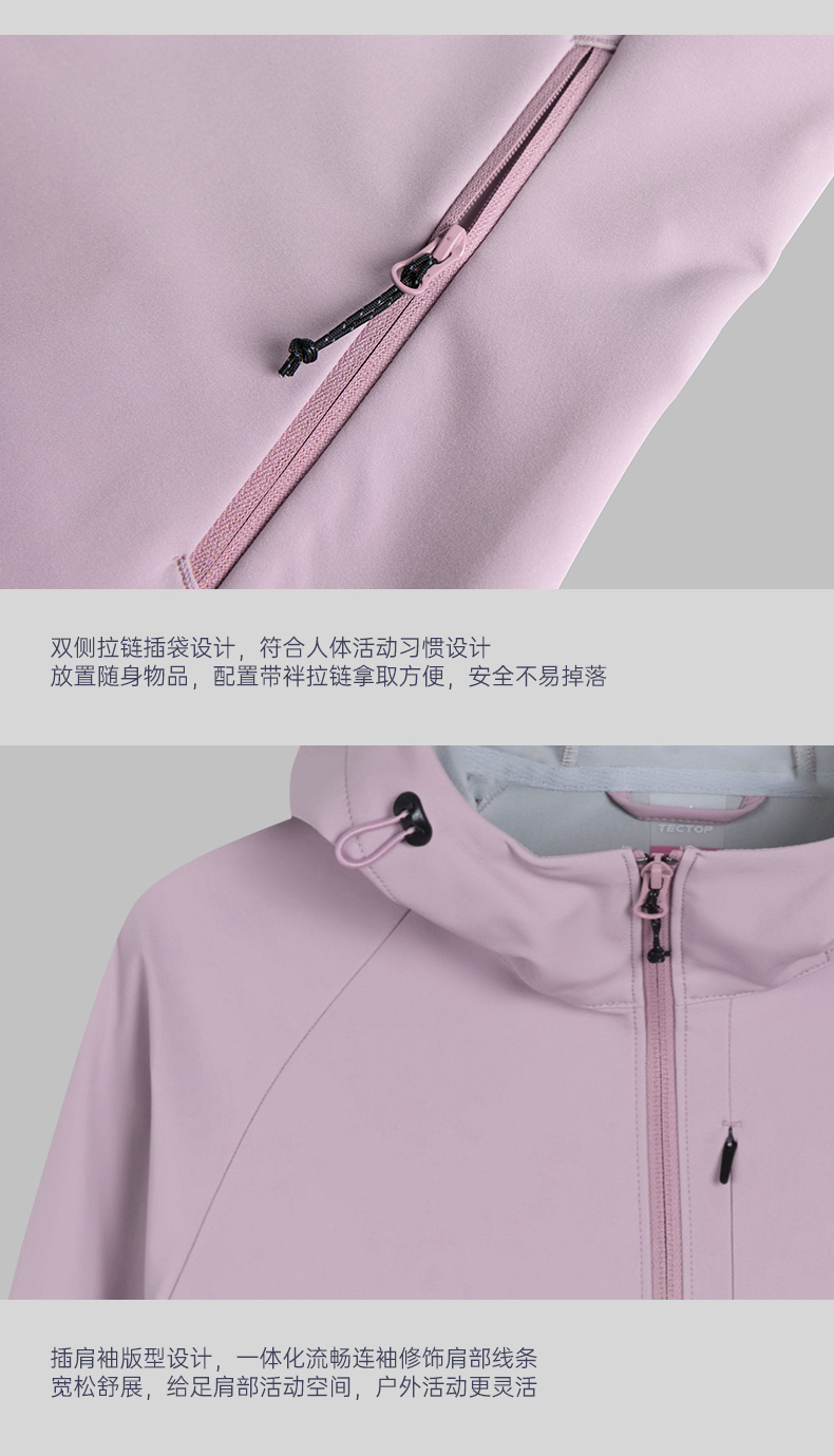 TECTOP/探拓户外女士软壳衣秋冬加绒防风防泼水徒步登山连帽外套