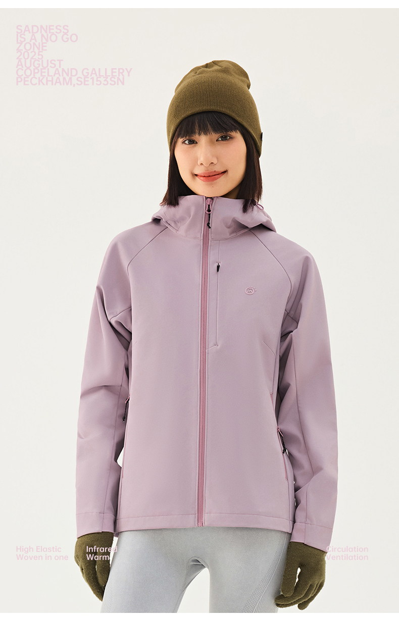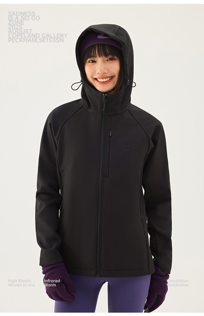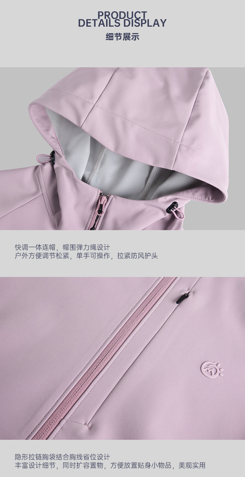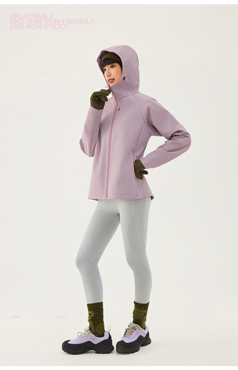 TECTOP/探拓户外女士软壳衣秋冬加绒防风防泼水徒步登山连帽外套