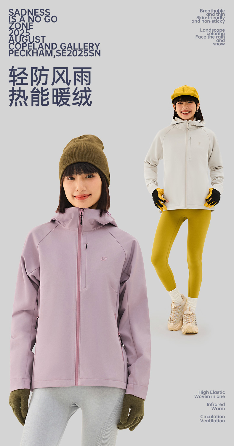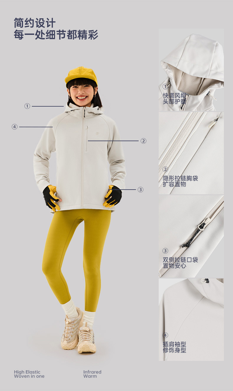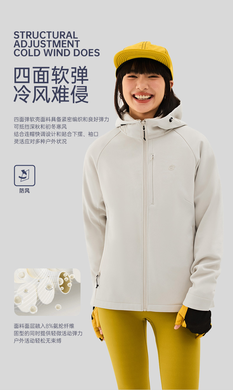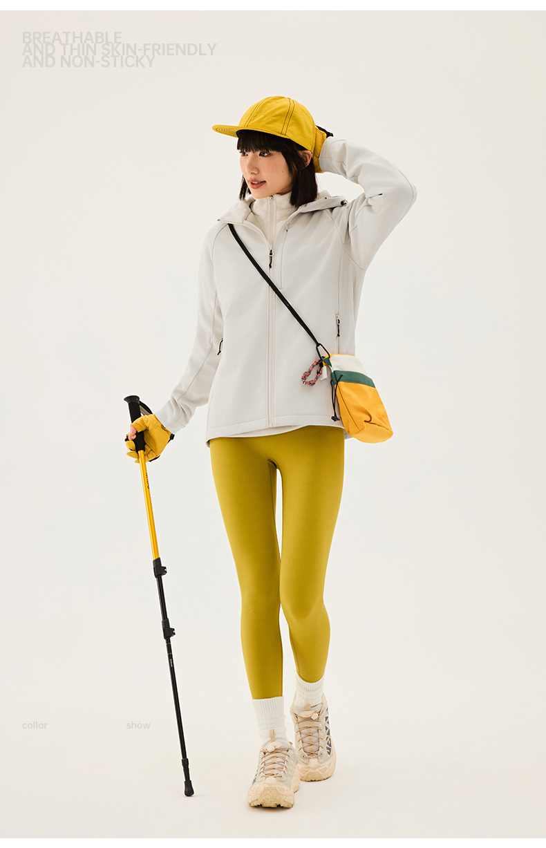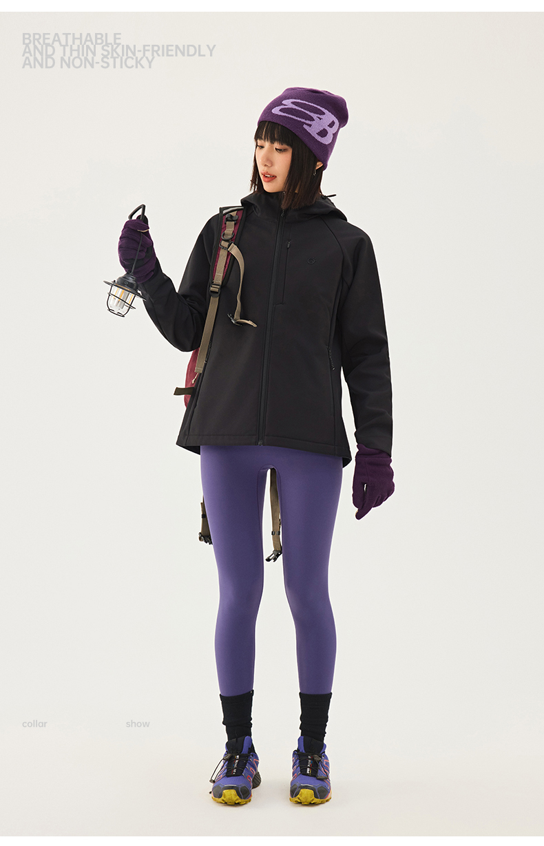 TECTOP/探拓户外女士软壳衣秋冬加绒防风防泼水徒步登山连帽外套