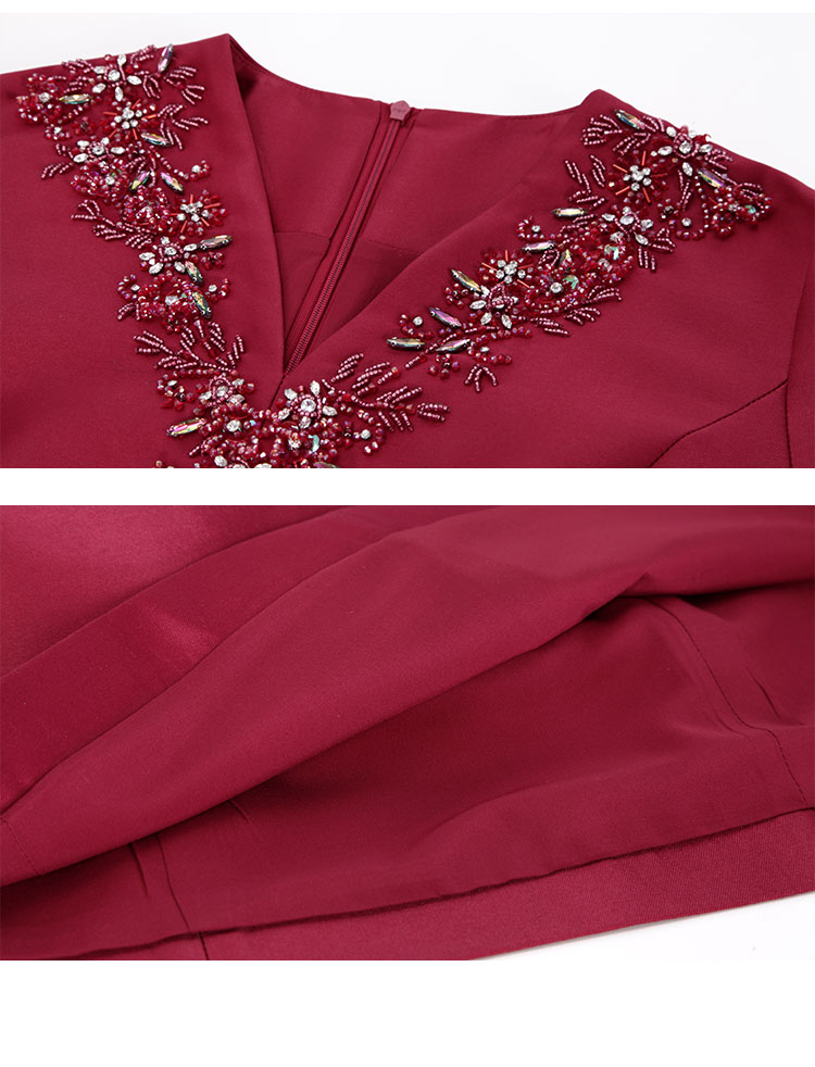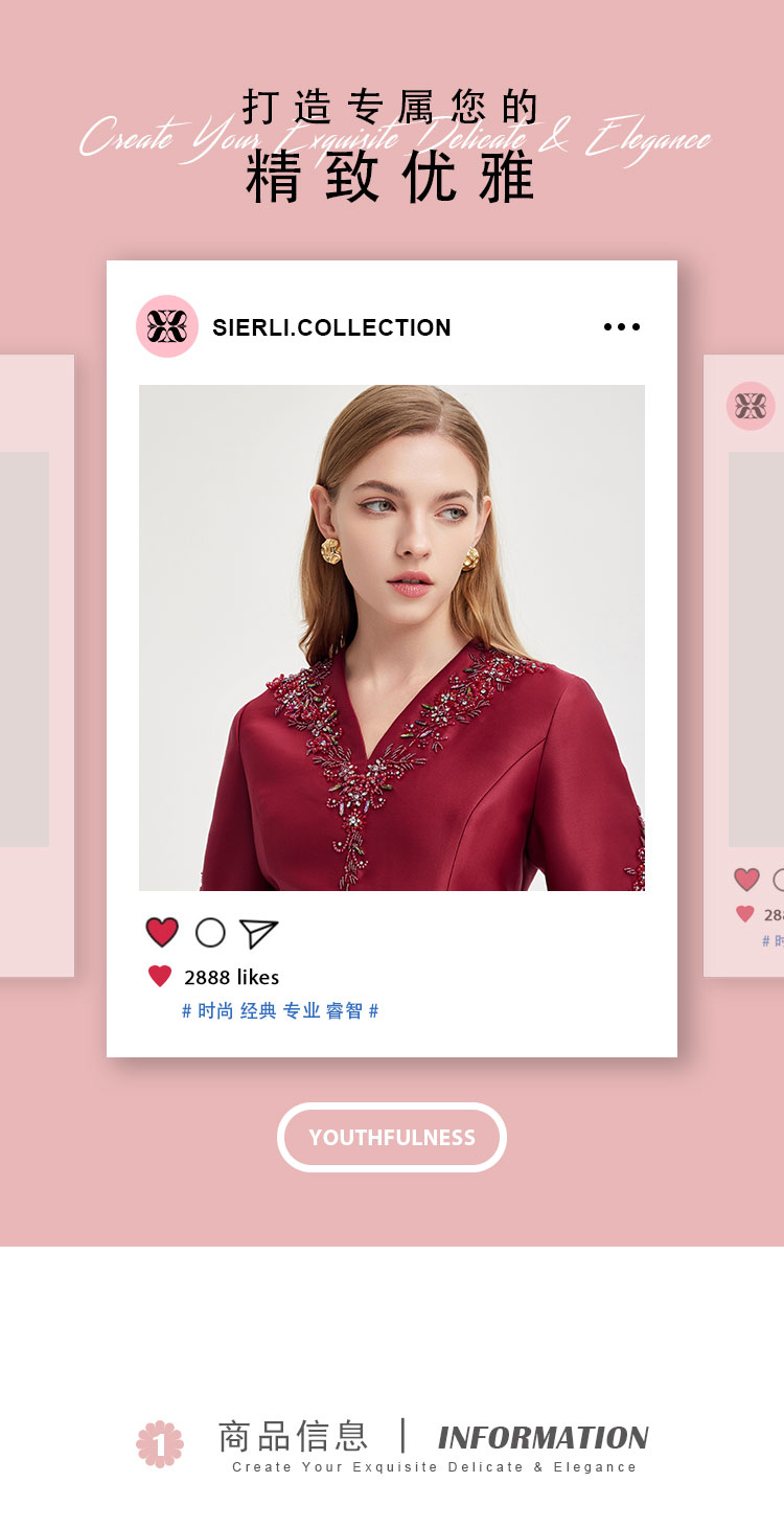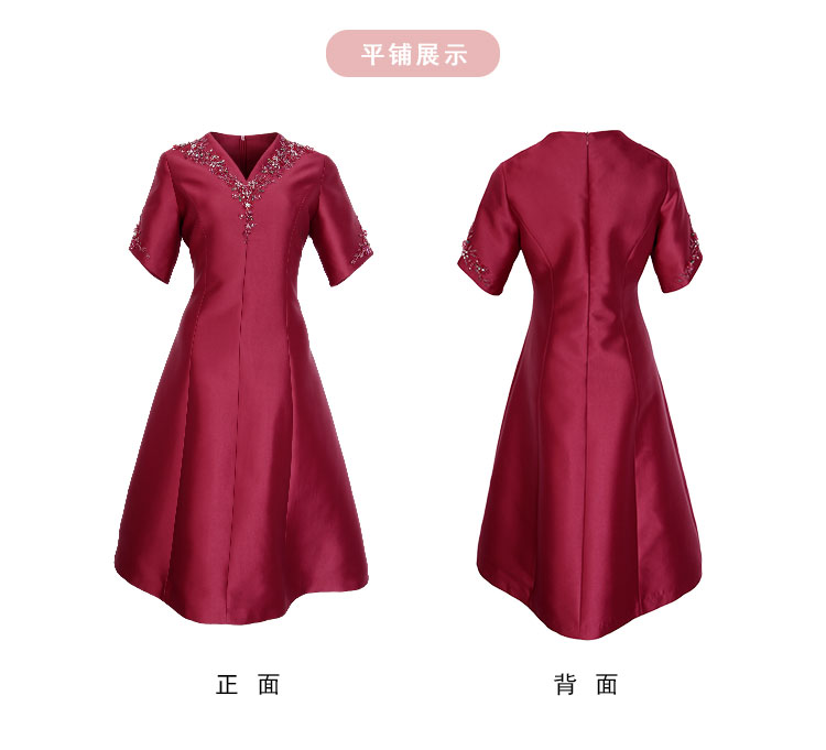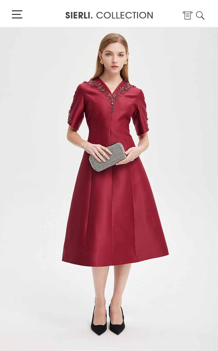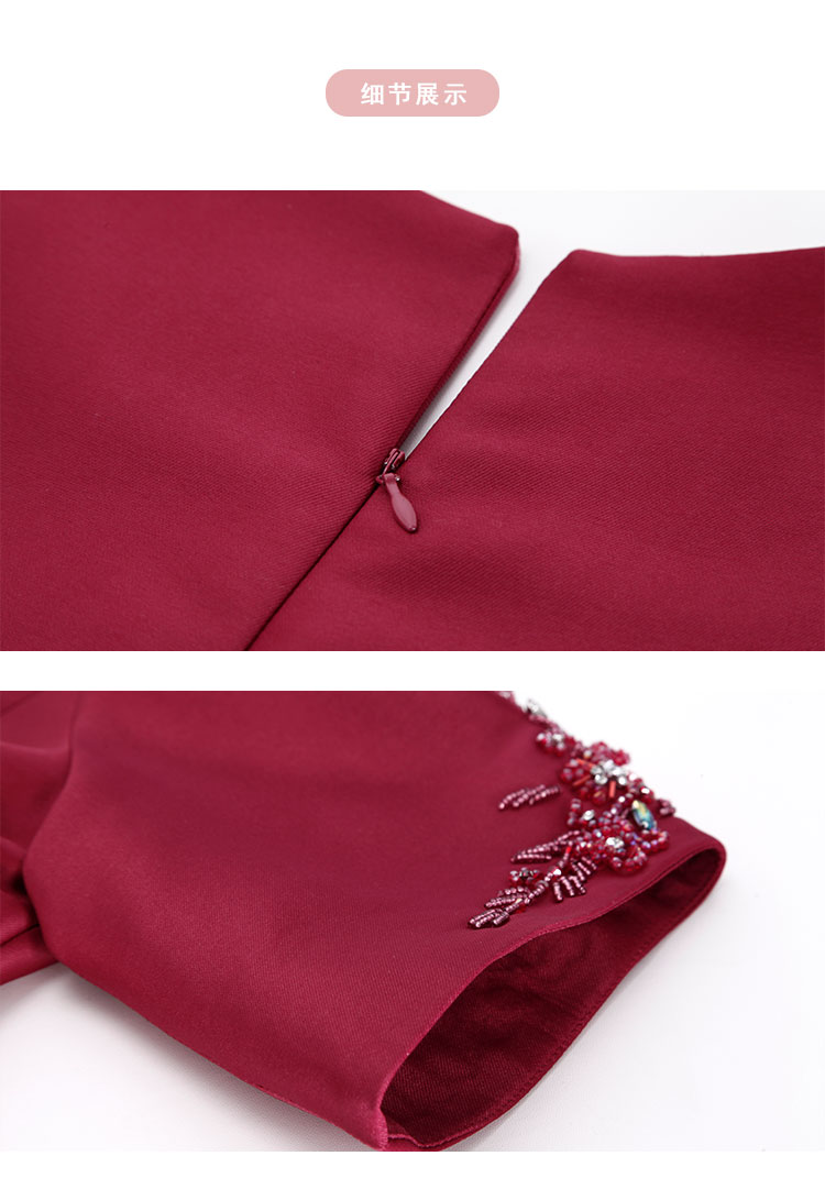RF8F3斯尔丽2024新款花瓣领型设计感华丽钉珠收腰端庄高贵礼服连衣裙
