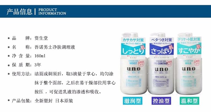 【保税仓】日本SHISEIDO资生堂男士水乳一体保湿液/化妆水160ml 清爽型