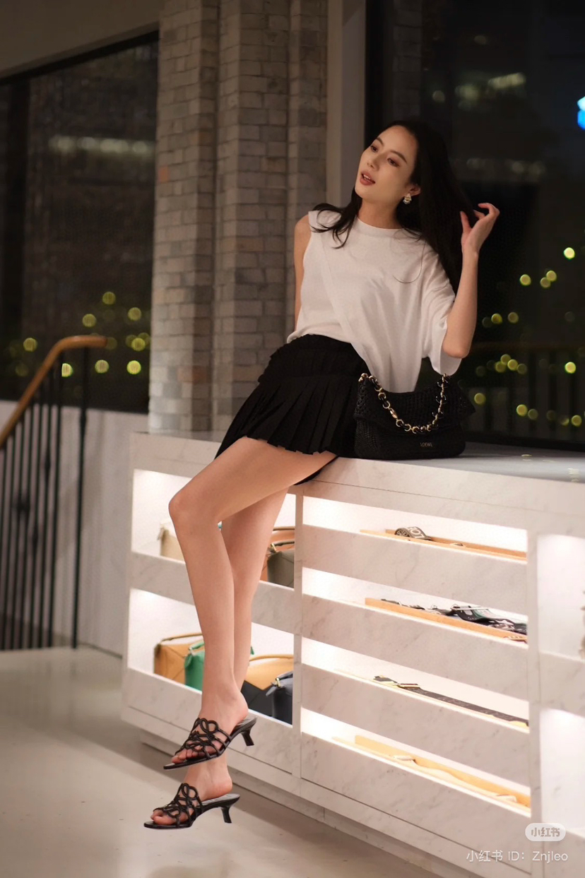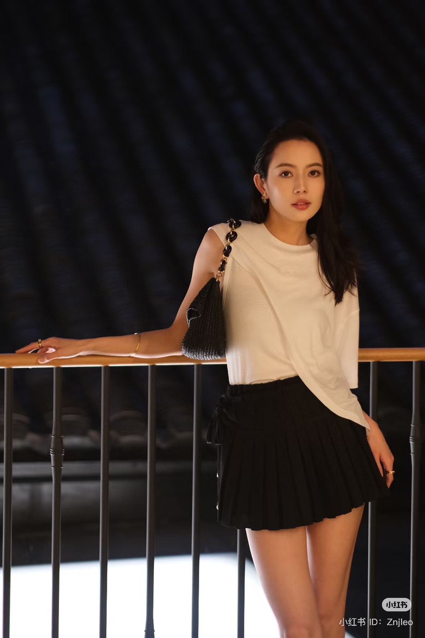 上松下紧,上白下黑,清爽干净,这个搭配方式,格外推荐,搭配短裤或者短裙,都很赏心悦目