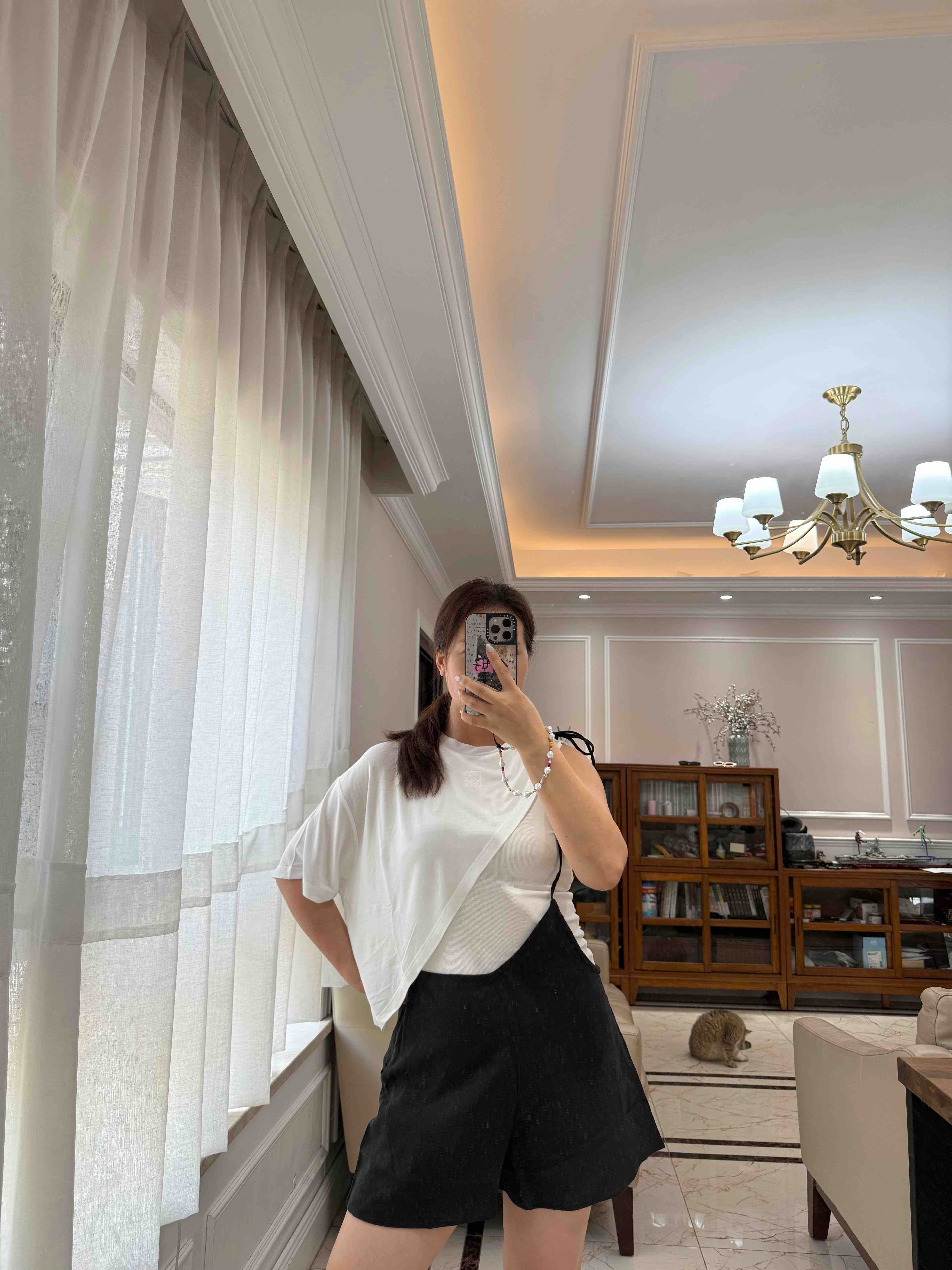 昨天我搭配的半身裙还有阔腿裤都不好看,今天搭配了黑色的短裤,哎呀妈呀,我觉得,好看多了呢。花点心思,就会非常非常出片的单品,几乎不可能撞衫,旗舰店限定,一般的门店,货都没有,排他性独家圆正