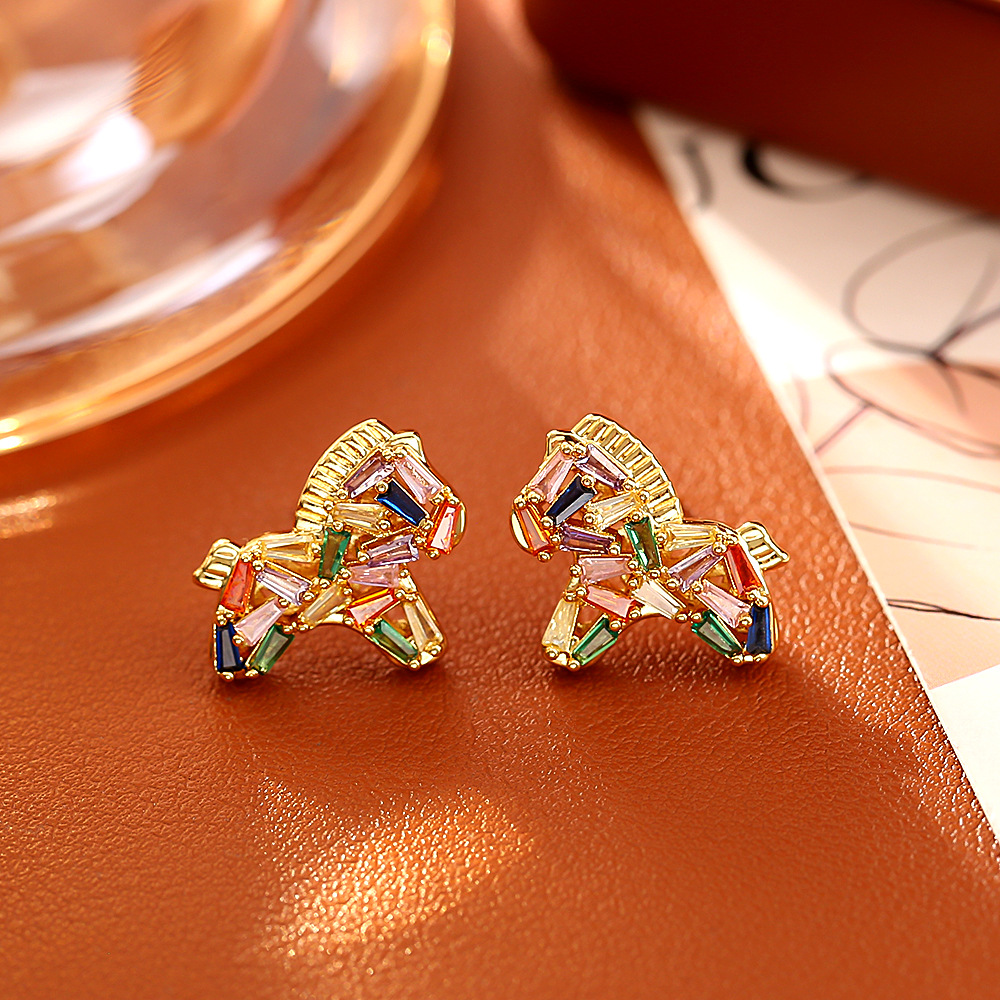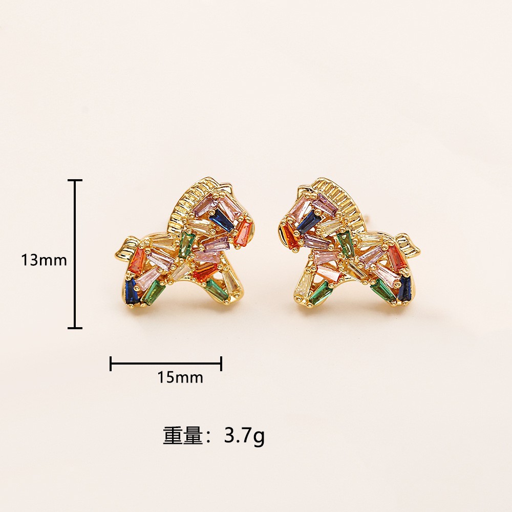 【铜镀24K彩色小马吊坠】生肖马项链 新中式时尚耳钉中国风饰品