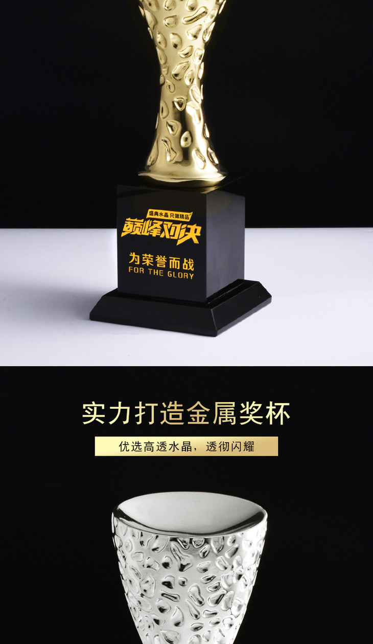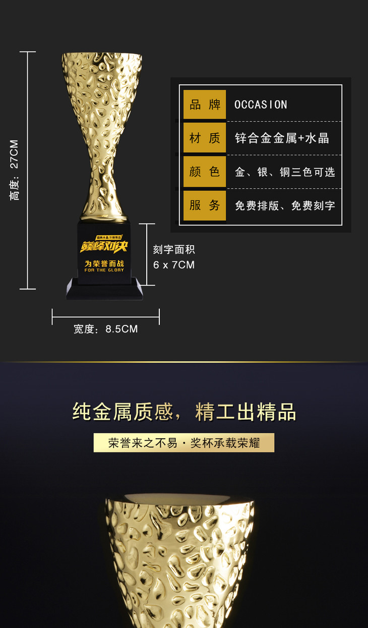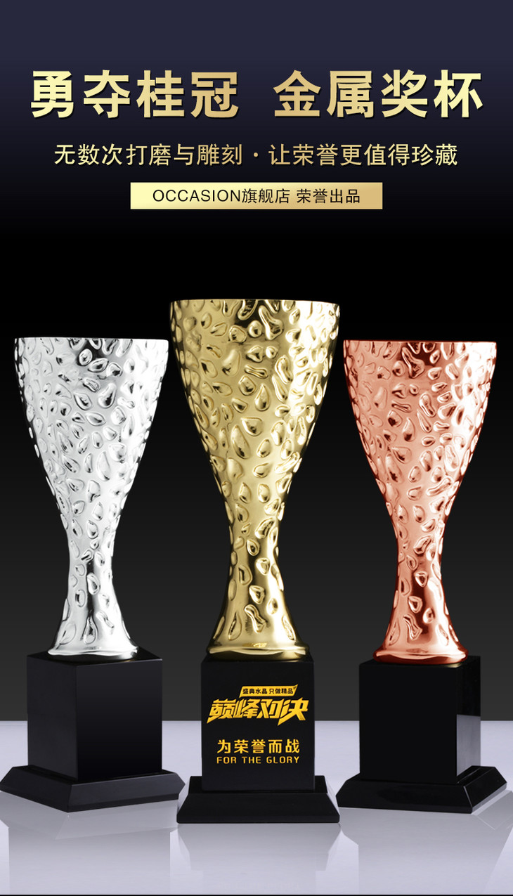 勇夺桂冠金属奖杯定制定做大号冠军高档优秀员工颁奖水晶奖品制作