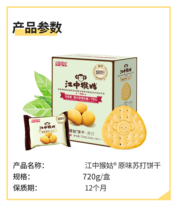 720g江中猴姑苏打饼干 咸味碱性养胃饼干 中和胃酸 休闲解馋零食 2026年2-5月到期 饼干易碎 介意慎拍
