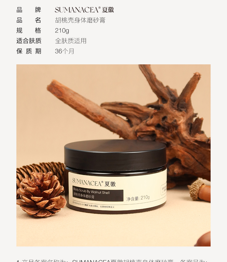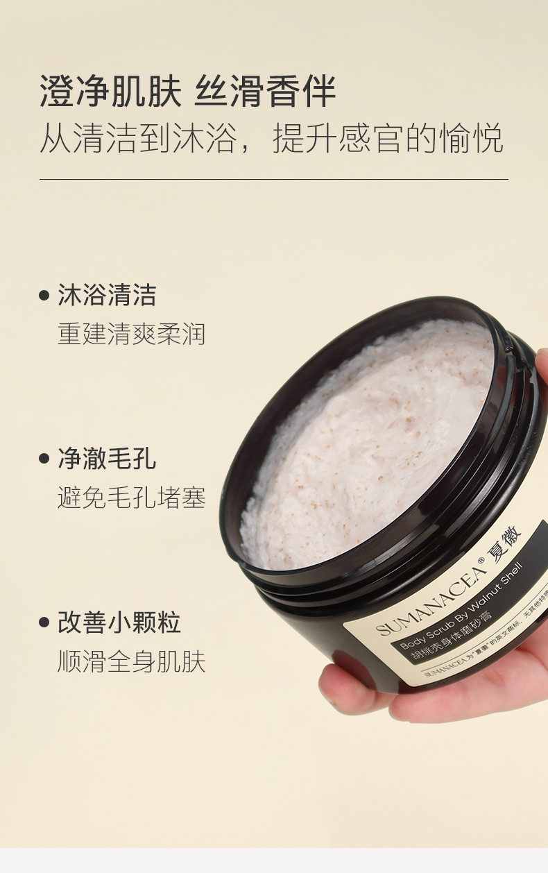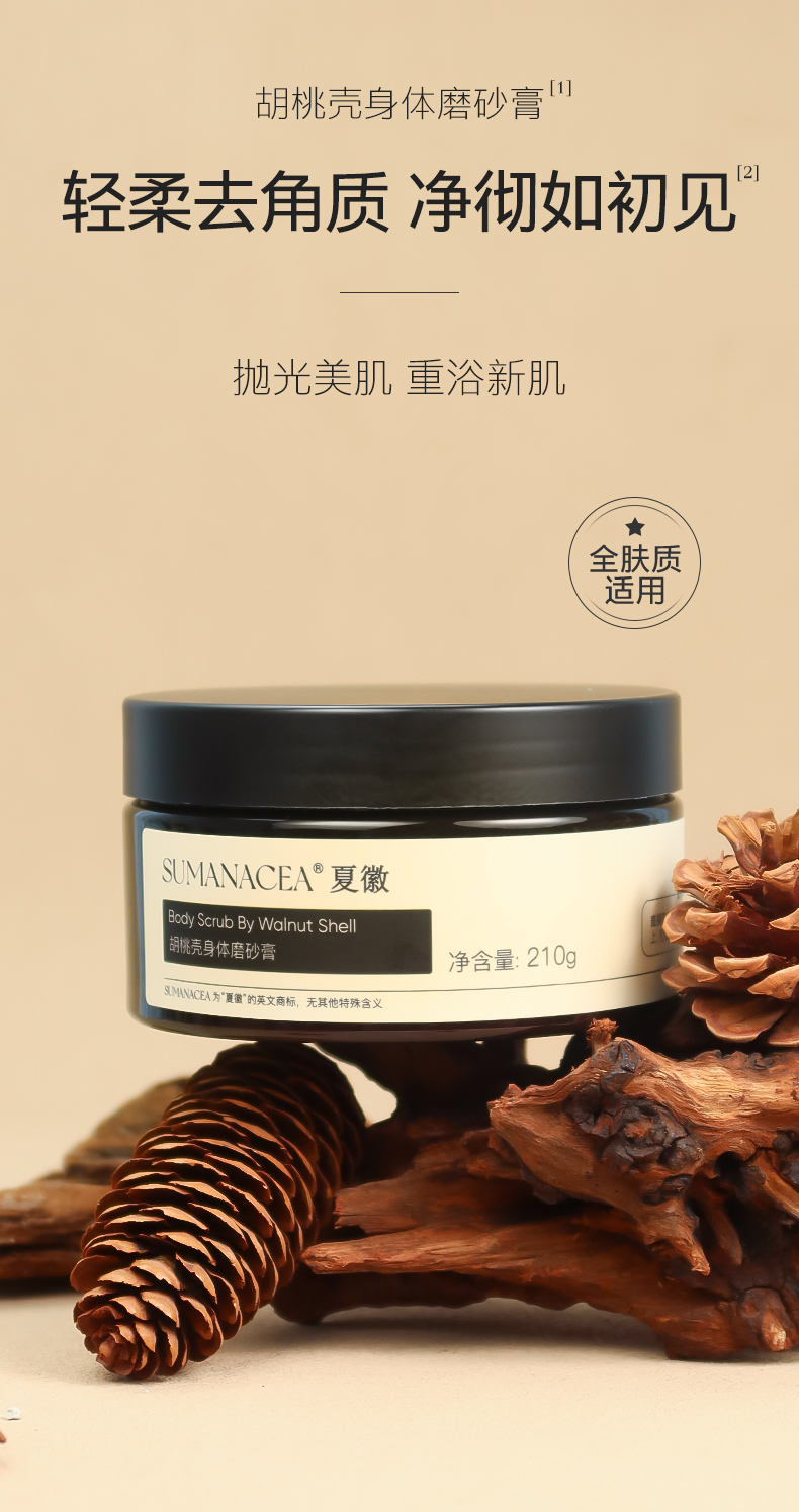 【夏徽-净澈芳香身体磨砂膏】胡桃壳颗粒,天然去角质,促进肌肤新陈代谢,深层清洁。