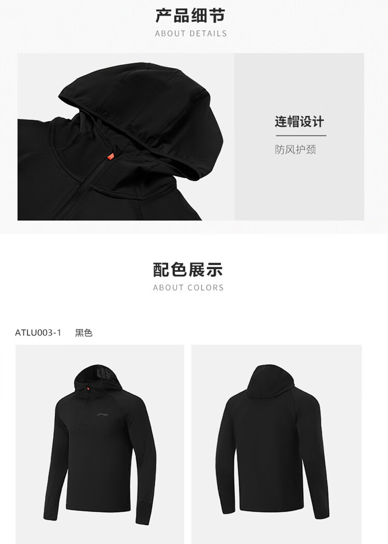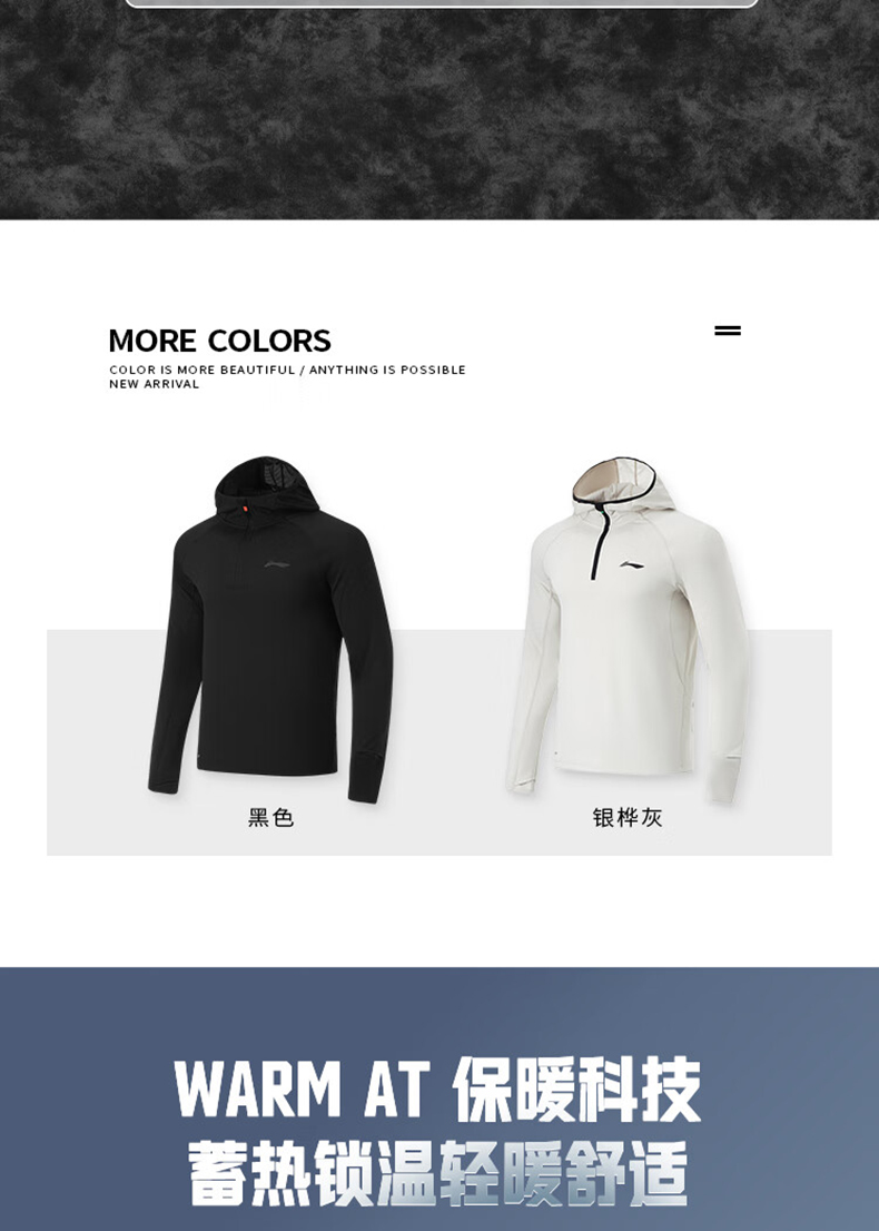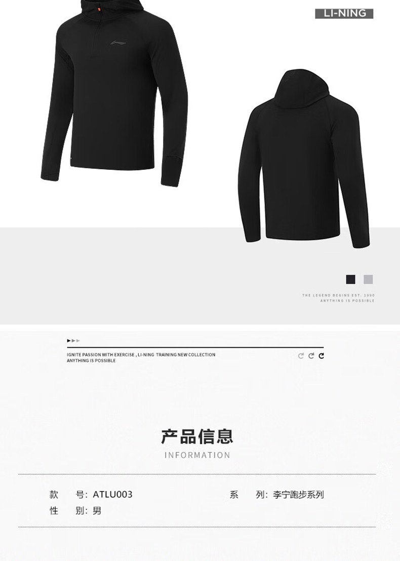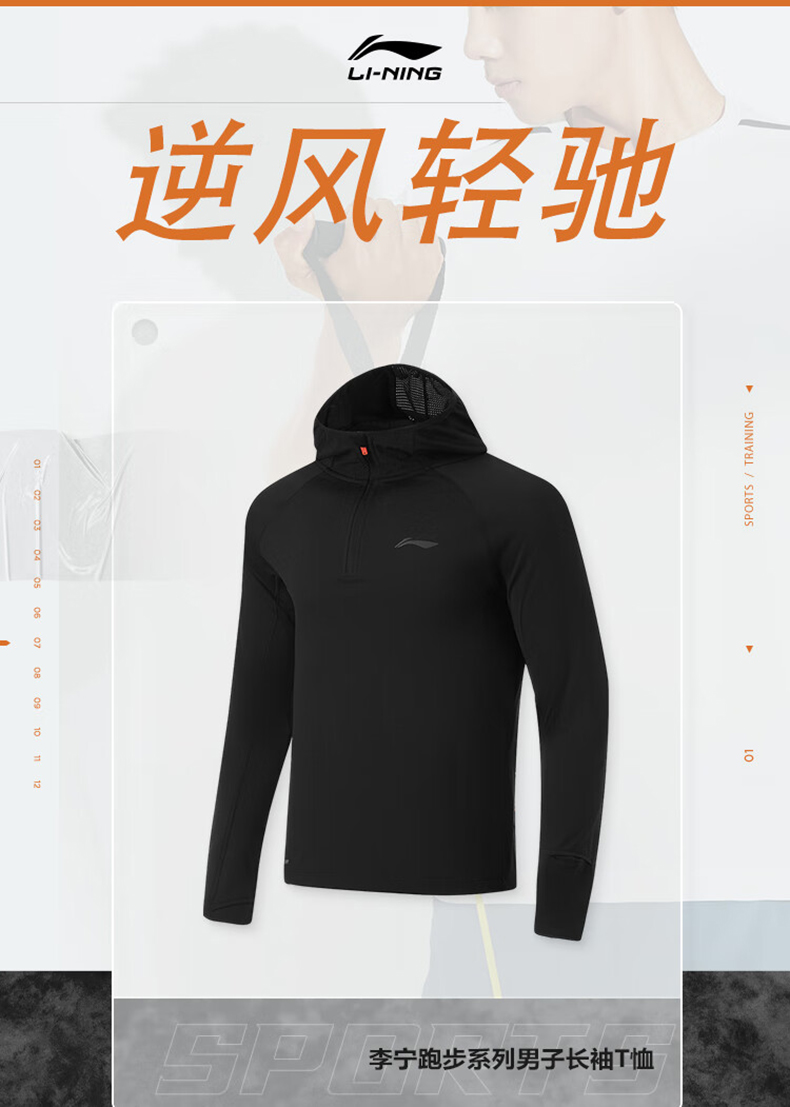 李宁 男款跑步休闲运动锁温修身长袖T恤