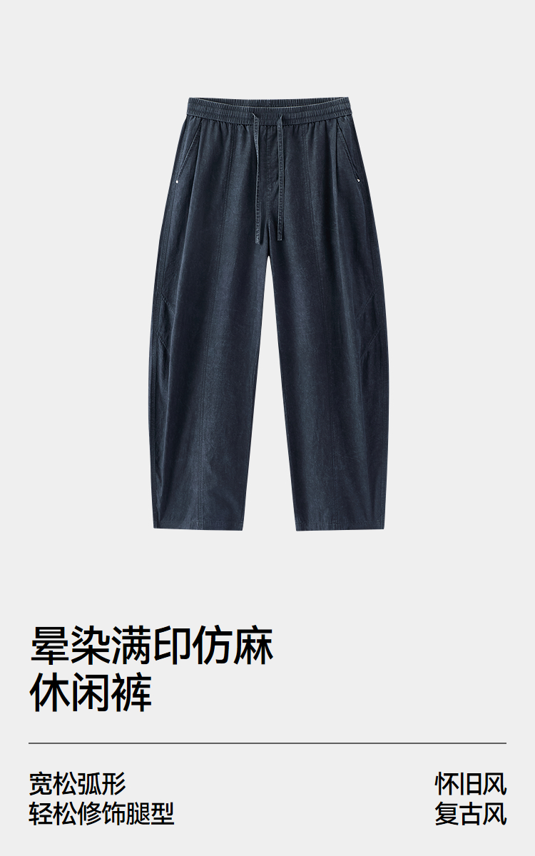 商场同款|森马休闲裤男夏季晕染满版印花长裤2026新款复古弧形裤