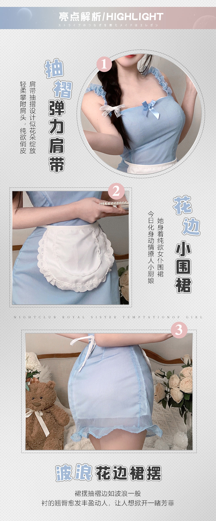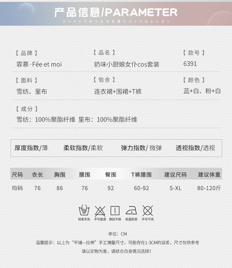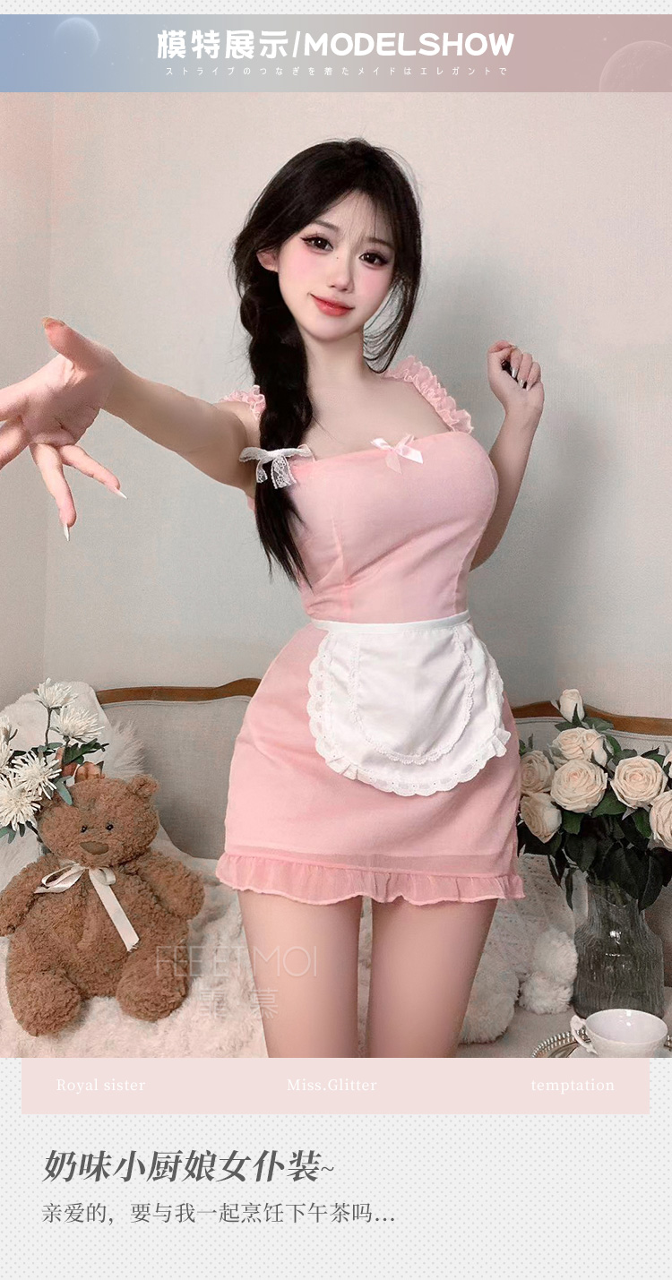 霏慕 新款性感免脱可爱厨娘制服情趣奶味小厨娘女仆cos套装性感制服角色扮演6391女仆 均码