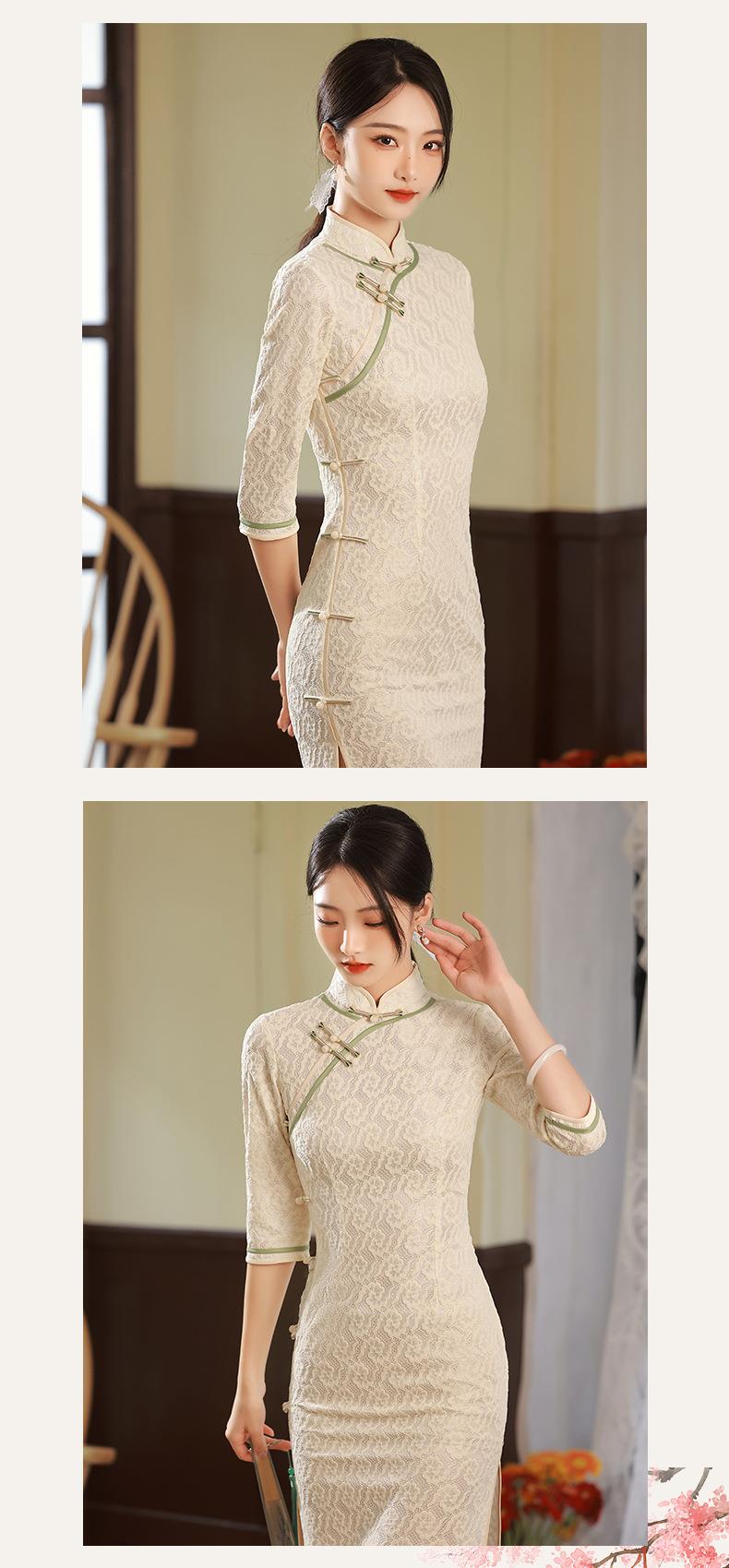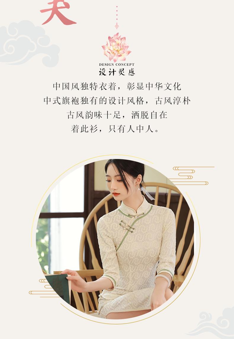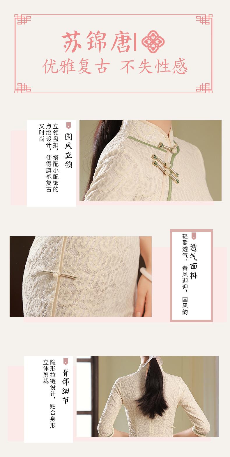 2023秋季新款雪尼尔蕾丝复合侧八扣旗袍连衣裙复古改良年轻少女款