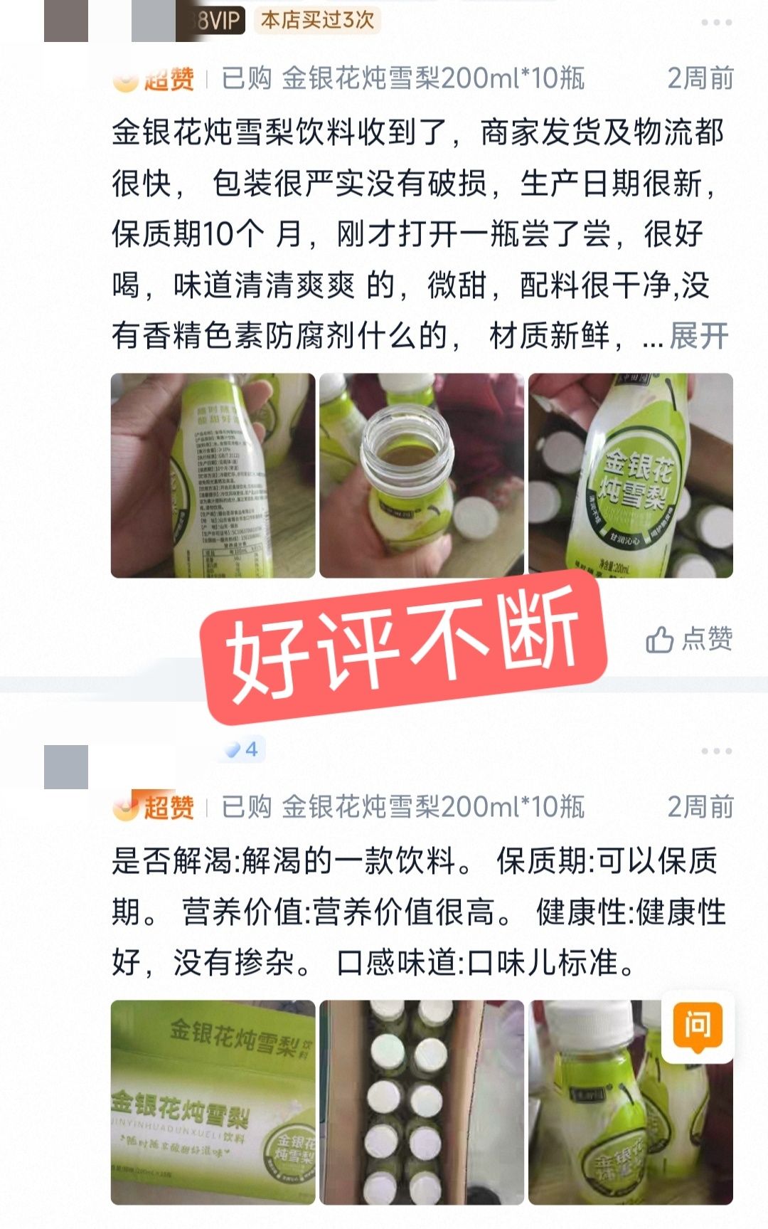 【品名】春中田园金银花炖雪梨饮料 【规格】10瓶(200ml/瓶) 【净含量】200ml/瓶 【贮存方法】冷藏贮存,亦可常温贮存,冷藏贮存口感更佳,避免阳光直晒及高温。 【禁食人群】婴幼儿,对产品过敏者禁食; 【注意事项】冷饮风味更佳,若产品出现顶部浮油和底部沉淀为果汁原料的成分,属正常现象喝前请摇匀,如发现胀瓶,请勿饮用。 【食用方法】开启后直接饮用,饮用前请摇匀。 【售后标准】 1、不支持无理由退换货,破损按比例赔付,若有质量问题请于签收后的24小时内拿快递面单+产品实拍+视频,找客服处理售后,超售后时效,不做售后处理! 2、由于显示器和拍摄光线等因素会造成些微色差,以收到实物为准; 3、个人口感不作为售后理由; 品相不好、储存不当不售后不赔付 4、福利开团,微利经营,下单后不支持退改、拦截、拒收。(如一定要拒收拦截需扣除费用4元) 5、一定要留对正确的收件信息,否则由此造成的无法顺利签收由顾客承担。 6、产品是瓶装,因快递运输不可抗拒因素,导致瓶子轻微凹陷。不影响食用。不做售后处理。 拍下即为默认同意以上条款,介意请勿拍,望理解 |