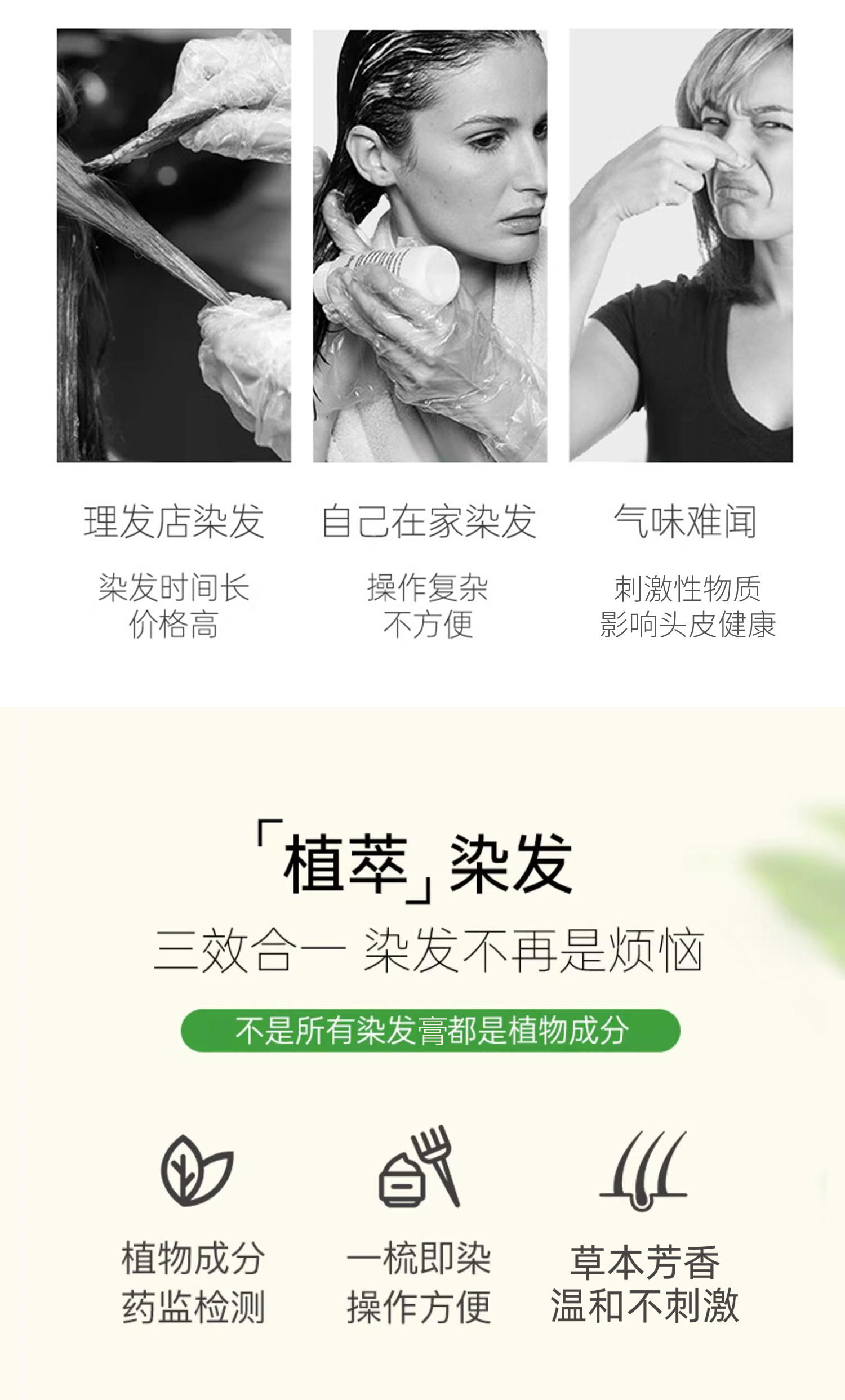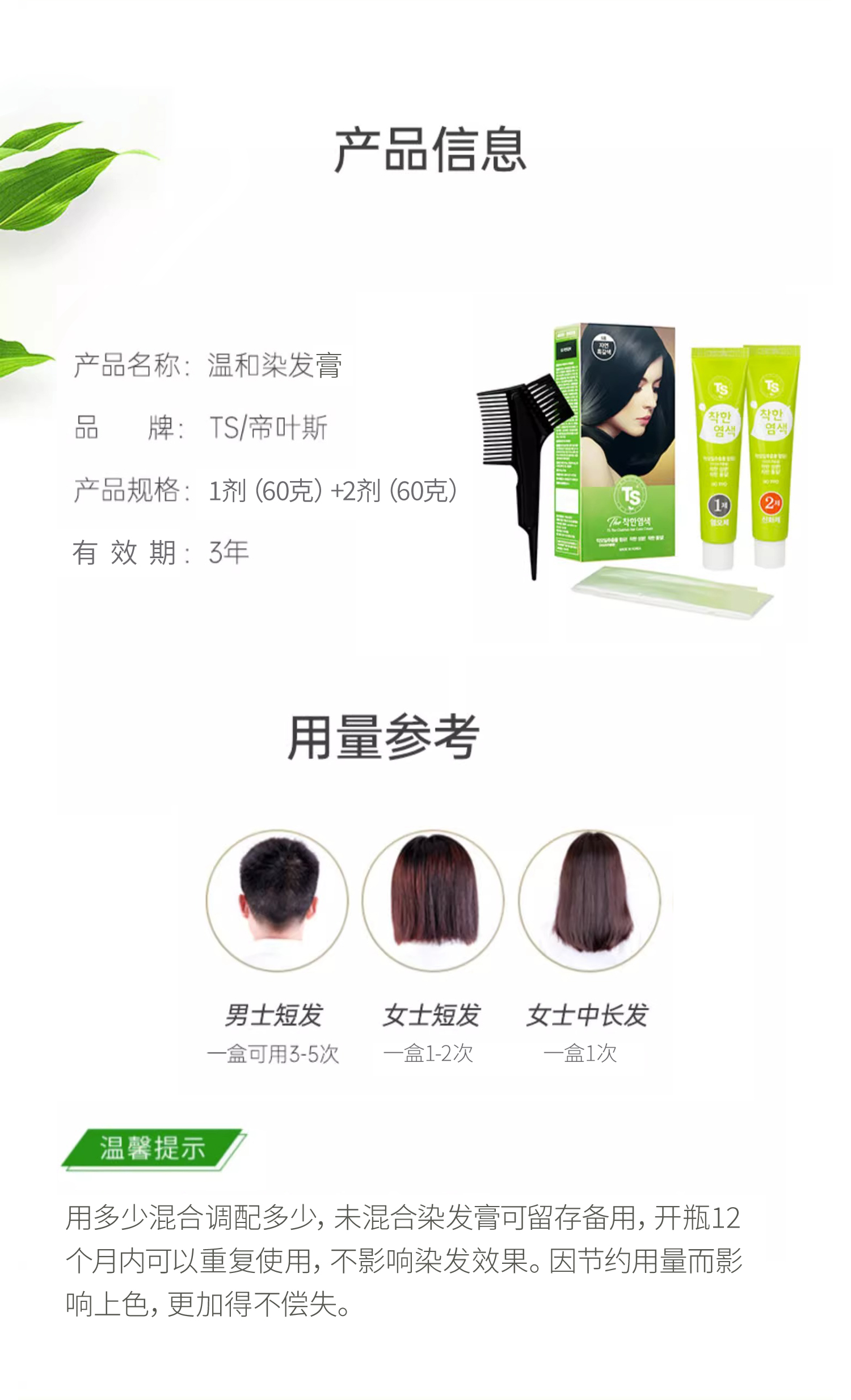 TS帝叶斯柔美染发膏 植萃提取 三效合一 染发+护发 温和不刺激 一梳即染
