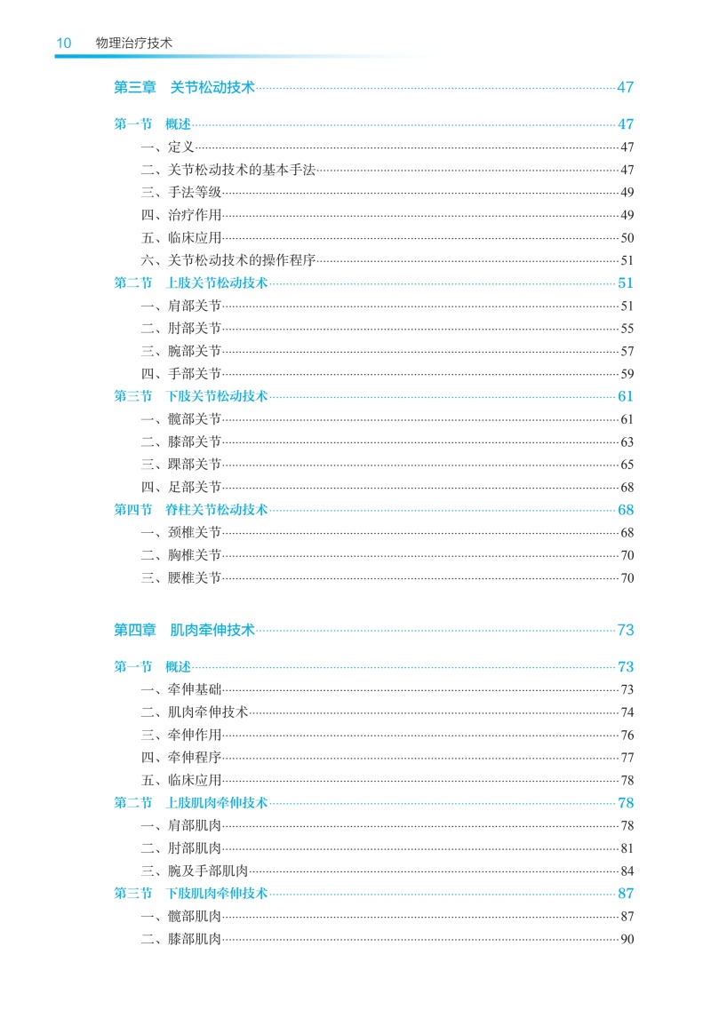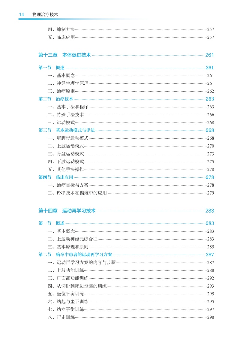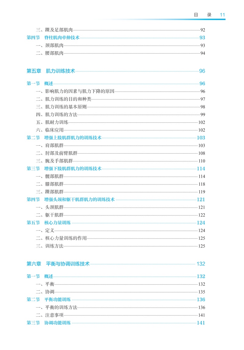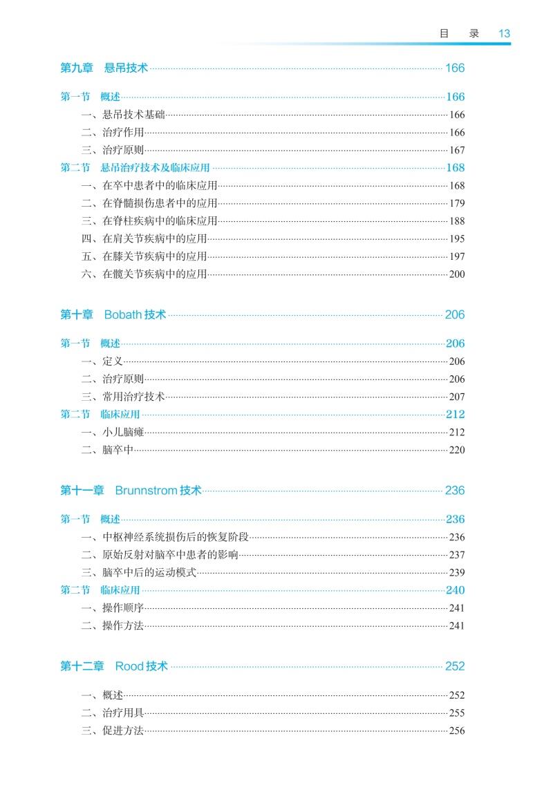 第一章 概论 / 1 第一节 概述 /1 一、 基本概念 /1 二、 物理治疗技术分类 /1 第二节 物理治疗对人体的作用 /4 一、 制动对人体的影响 /4 二、 运动疗法的治疗作用 /7 三、 物理因子的治疗作用 /8 四、 物理治疗技术的适应证、禁忌证 /9 第三节 运动治疗技术常用器械 /10 第二章 关节活动技术 /31 第一节 概述 /31 一、 影响关节活动的因素 /31 二、 改善关节活动的技术与方法 /32 三、 临床应用 /35 第二节 人体关节活动技术 /36 一、 肩部关节 /36 二、 肘部关节 /39 三、 腕部关节 /40 四、 手部关节 /41 五、 髋部关节 /42 六、 膝部关节 /43 七、 踝及足部关节 /44 八、 躯干 /45 第三章 关节松动技术 /47 第一节 概述 /47 一、 定义 /47 二、 关节松动技术的基本手法 /47 三、 手法等级 /49 四、 治疗作用 /49 五、 临床应用 /50 六、 关节松动技术的操作程序 /51 第二节 上肢关节松动技术 /51 一、 肩部关节 /51 二、 肘部关节 /55 三、 腕部关节 /57 四、 手部关节 /59 第三节 下肢关节松动技术 /61 一、 髋部关节 /61 二、 膝部关节 /63 三、 踝部关节 /65 四、 足部关节 /68 第四节 脊柱关节松动技术 /68 一、 颈椎关节 /68 二、 胸椎关节 /70 三、 腰椎关节 /70 第四章 肌肉牵伸技术 /73 第一节 概述 /73 一、 牵伸基础 /73 二、 肌肉牵伸技术 /74 三、 牵伸作用 /76 四、 牵伸程序 /77 五、 临床应用 /78 第二节 上肢肌肉牵伸技术 /78 一、 肩部肌肉 /78 二、 肘部肌肉 /81 三、 腕及手部肌肉 /84 第三节 下肢肌肉牵伸技术 /87 一、 髋部肌肉 /87 二、 膝部肌肉 /90 三、 踝及足部肌肉 /92 第四节 脊柱肌肉牵伸技术 /93 一、 颈部肌肉 /93 二、 腰部肌肉 /94 第五章 肌力训练技术 /96 第一节 概述 /96 一、 影响肌力的因素与肌力下降的原因 /96 二、 肌力训练的目的和种类 /97 三、 肌力训练的基本原则 /98 四、 肌力训练的方法 /99 五、 肌耐力训练 /102 六、 临床应用 /102 第二节 增强上肢肌群肌力的训练技术 /103 一、 肩部肌群 /103 二、 肘部及前臂肌群 /108 三、 腕及手部肌群 / 110 第三节 增强下肢肌群肌力的训练技术 /114 一、 髋部肌群 / 114 二、 膝部肌群 / 118 三、 踝部肌群 / 119 第四节 增强头颈和躯干肌群肌力的训练技术 /121 一、 头颈肌群 /121 二、 躯干肌群 /122 第五节 核心力量训练 /124 一、 定义 /124 二、 核心力量训练的作用 /125 三、 训练方法 /125 第六章 平衡与协调训练技术 / 132 第一节 概述 /132 一、 平衡 /132 二、 协调 /135 第二节 平衡功能训练 /136 一、 平衡的训练方法 /136 二、 注意事项 /141 第三节 协调功能训练 /141 一、 协调的训练方法 /141 二、 协调功能训练与平衡功能训练的区别 /142 三、 注意事项 /143 第七章 站立与步行功能训练技术 / 144 第一节 概述 /144 一、 基本概念 /144 二、 站立与步行相关的肌肉及关节 /144 三、 常见异常步态 /145 四、 步行的条件 /146 第二节 站立训练 /146 一、 身体负重训练 /146 二、 重心的转移训练 /147 第三节 步行训练 /148 一、 常用措施 /148 二、 基础步行训练 /148 三、 减重步态训练 /152 四、 步行能力训练 /154 第四节 常见异常步态的矫治训练 /155 第八章 牵引技术 / 157 第一节 概述 /157 一、 定义 /157 二、 牵引分类 /157 第二节 颈椎牵引 /157 一、 颈椎牵引作用 /158 二、 颈椎牵引方法 /158 三、 颈椎牵引的临床应用 /160 第三节 腰椎牵引 /161 一、 腰椎牵引作用 /161 二、 腰椎牵引方法 /161 三、 腰椎牵引的临床应用 /162 第四节 四肢关节牵引 /163 一、 四肢关节牵引作用 /163 二、 牵引器具及操作方法 /163 三、 临床应用 /164 第九章 悬吊技术 / 166 第一节 概述 /166 一、 悬吊技术基础 /166 二、 治疗作用 /166 三、 治疗原则 /167 第二节 悬吊治疗技术及临床应用 /168 一、 在卒中患者中的临床应用 /168 二、 在脊髓损伤患者中的应用 /179 三、 在脊柱疾病中的临床应用 /188 四、 在肩关节疾病中的应用 /195 五、 在膝关节疾病中的应用 /197 六、 在髋关节疾病中的应用 /200 第十章 Bobath 技术 / 206 第一节 概述 /206 一、 定义 /206 二、 治疗原则 /206 三、 常用治疗技术 /207 第二节 临床应用 /212 一、 小儿脑瘫 /212 二、 脑卒中 /220 第十一章 Brunnstrom 技术 / 236 第一节 概述 /236 一、 中枢神经系统损伤后的恢复阶段 /236 二、 原始反射对脑卒中患者的影响 /237 三、 脑卒中后的运动模式 /239 第二节 临床应用 /240 一、 操作顺序 /241 二、 操作方法 /241 第十二章 Rood 技术 / 252 一、 概述 /252 二、 治疗用具 /255 三、 促进方法 /256 四、 抑制方法 /257 五、 临床应用 /257 第十三章 本体促进技术 / 261 第一节 概述 /261 一、 基本概念 /261 二、 神经生理学原理 /261 三、 治疗原则 /262 第二节 治疗技术 /263 一、 基本手法和程序 /263 二、 特殊手法技术 /266 三、 运动模式 /268 第三节 基本运动模式与手法 /268 一、 肩胛带运动模式 /268 二、 上肢运动模式 /270 三、 骨盆运动模式 /273 四、 下肢运动模式 /275 五、 其他手法操作 /278 第四节 临床应用 /278 一、 治疗目标与方案 /278 二、 PNF 技术在偏瘫中的应用 /279 第十四章 运动再学习技术 / 283 第一节 概述 /283 一、 基本概念 /283 二、 上运动神经元综合征 /283 三、 基本原理和原则 /285 第二节 脑卒中患者的运动再学习方案 /287 一、 运动再学习方案的内容与步骤 /287 二、 上肢功能训练 /288 三、 口面部功能训练 /292 四、 从仰卧到床