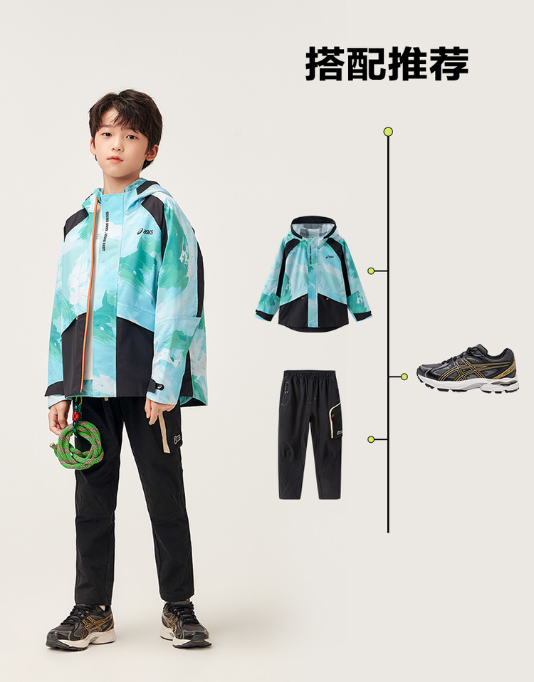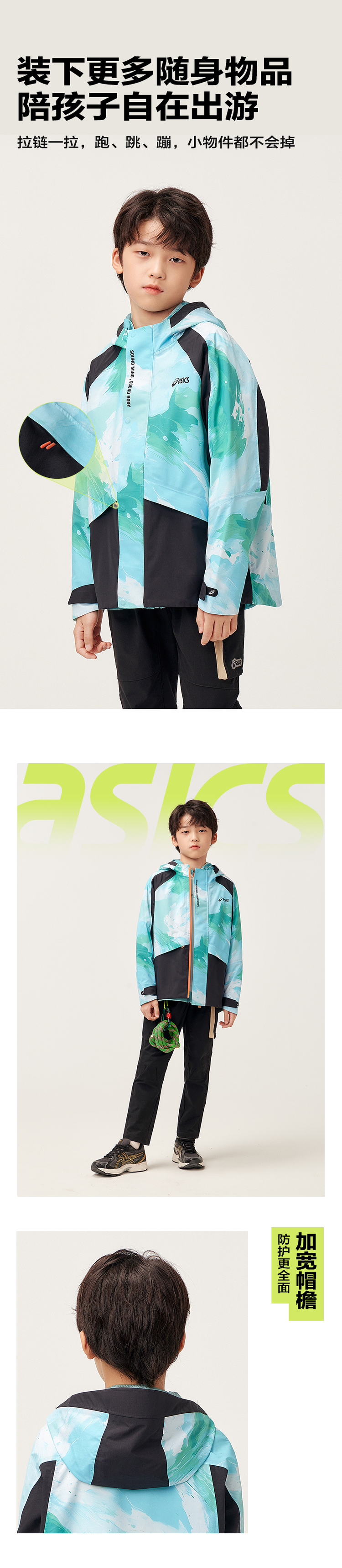 【商城同款】ASICS/亚瑟士童装秋季冲锋外套防水透湿印花冲锋夹克