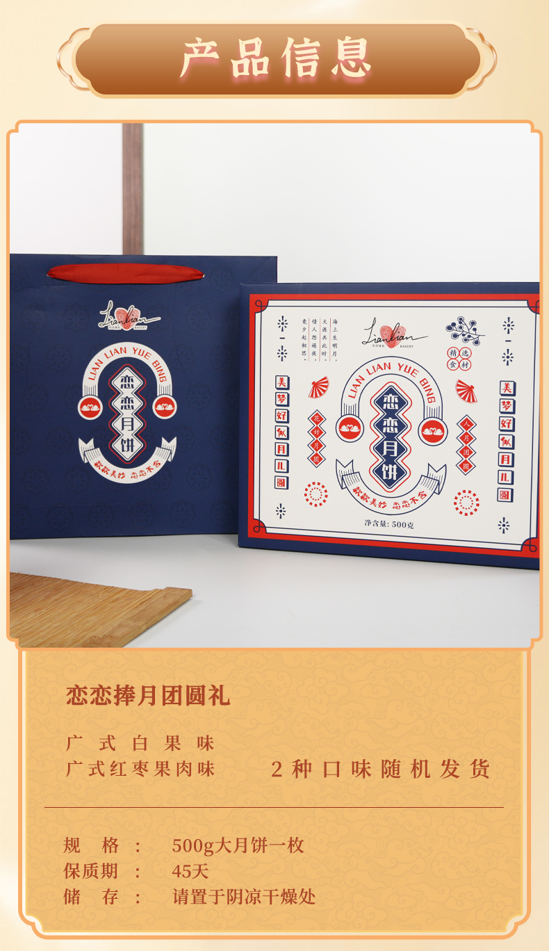 恋恋捧月中秋大月饼礼盒500g白果味或红枣果肉味口味随机发
