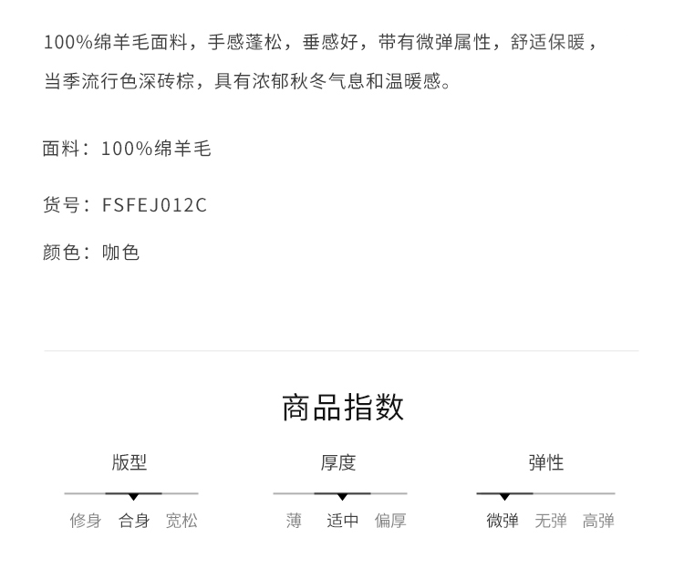 callisto咖色全绵羊毛夹克 FSFEJ012C