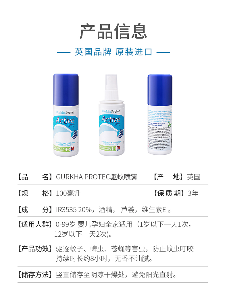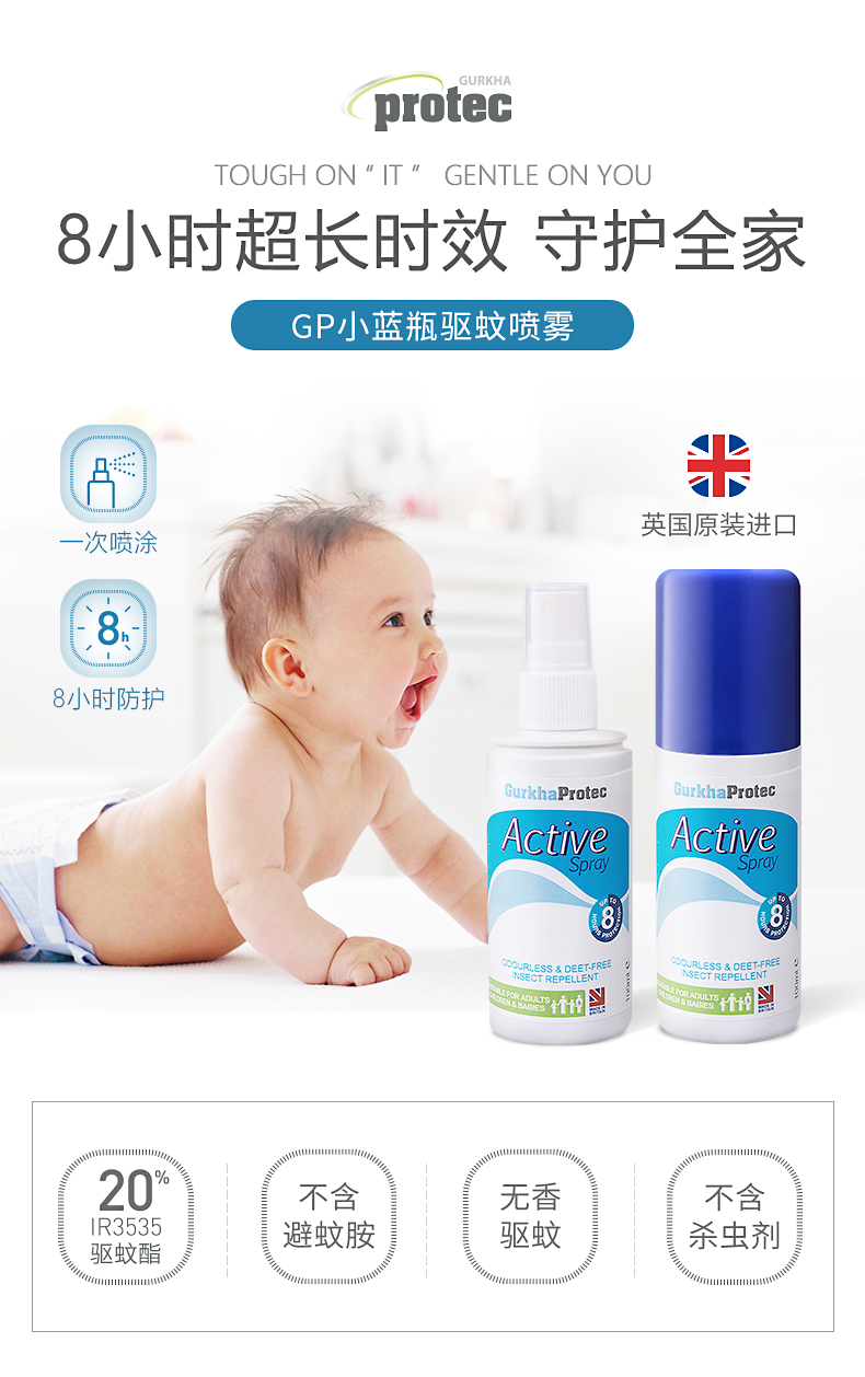 【绿推荐】英国GurkhaProtec GP驱蚊喷雾宝宝孕妇户外防蚊虫随身驱蚊液100ML