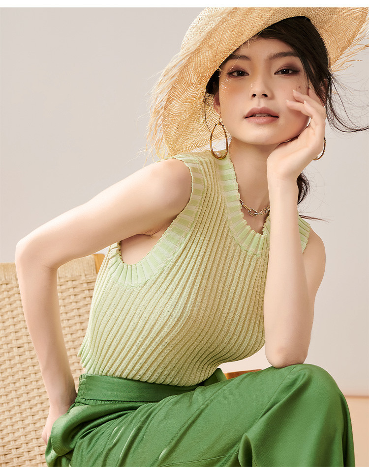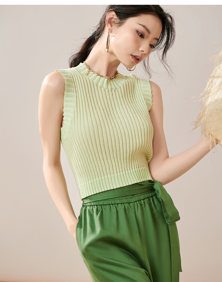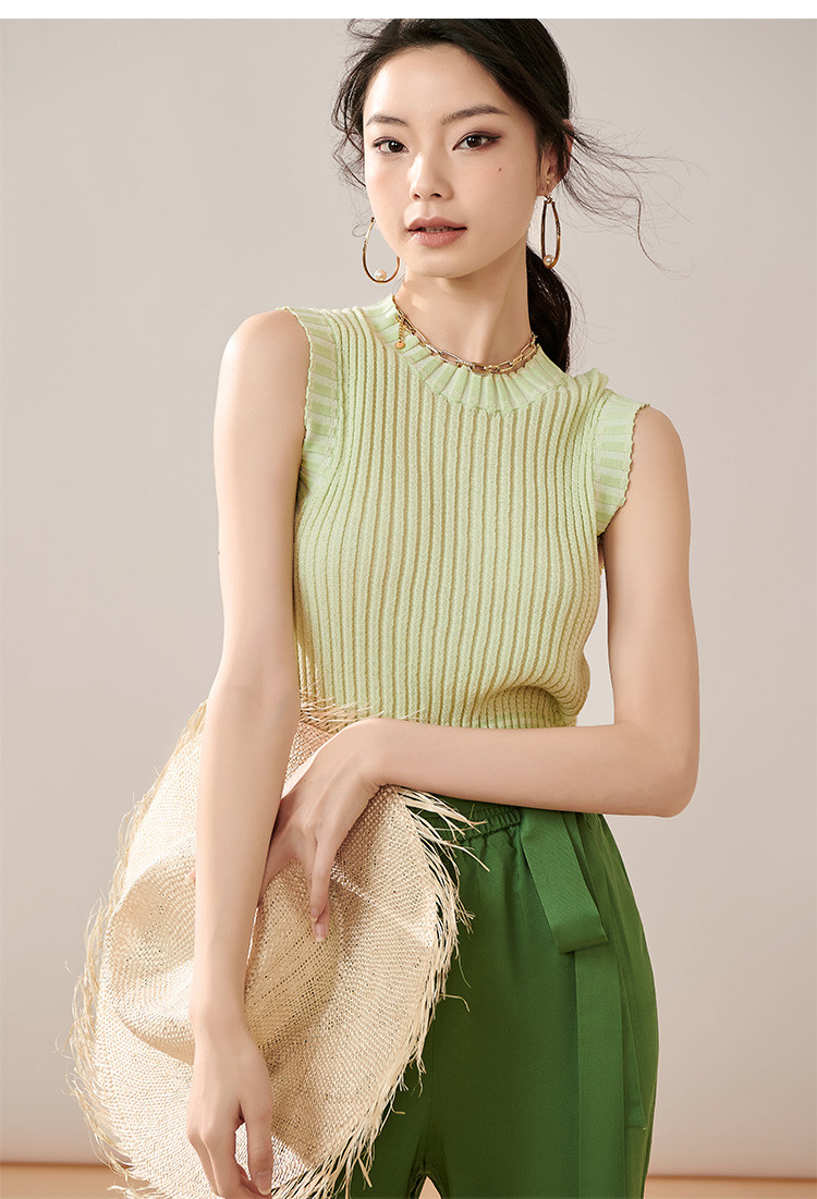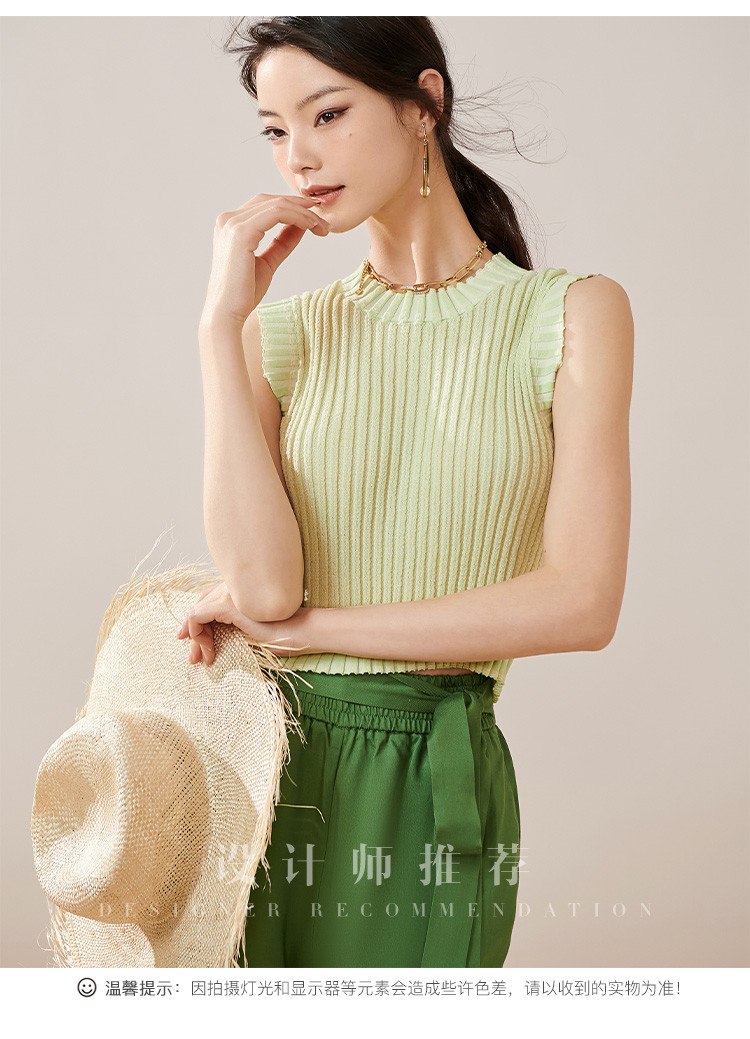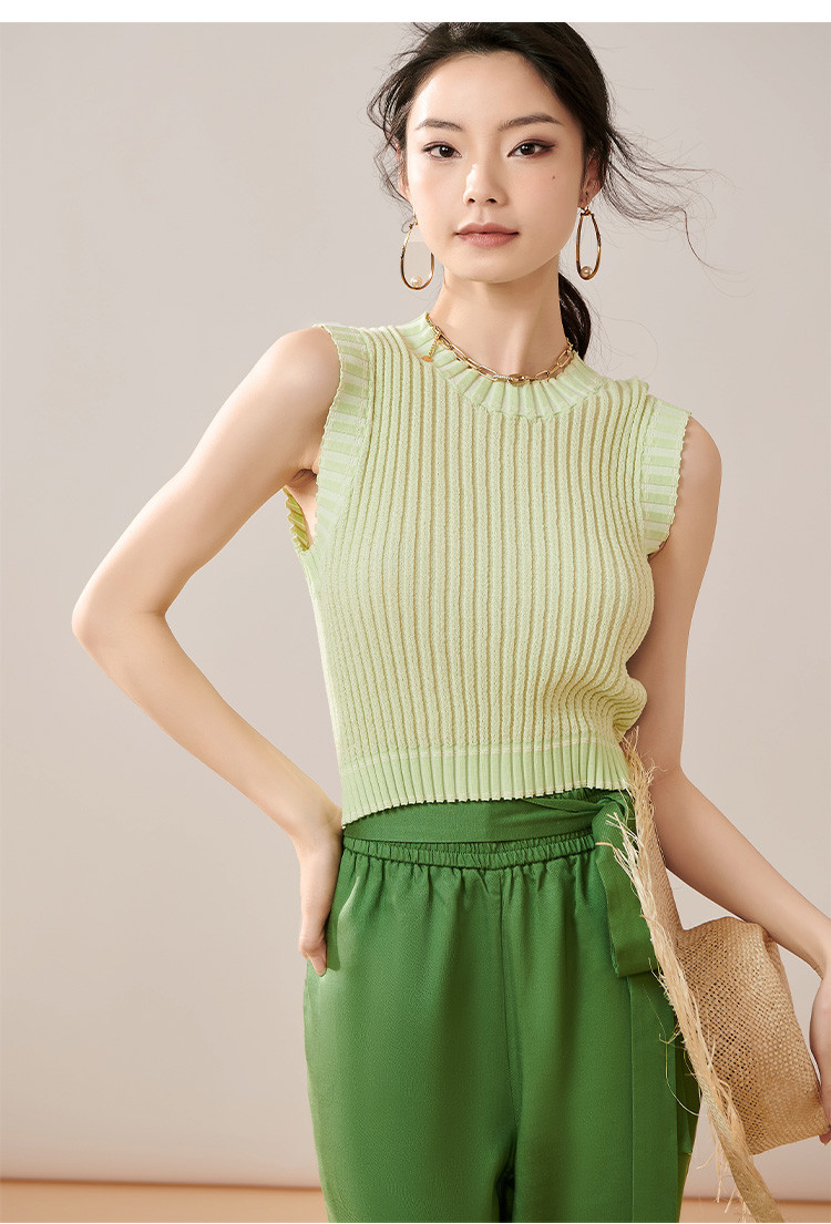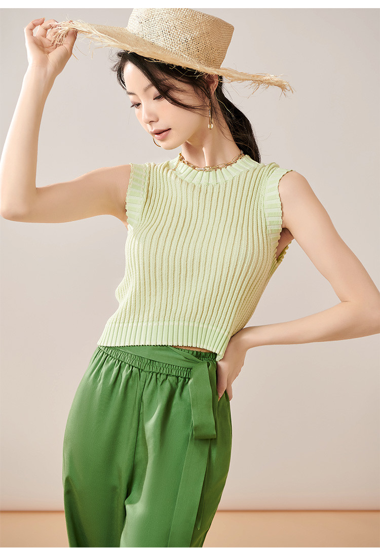 剩L/XL 芳外【短款圆领针织背心】2024夏季新款弹力无袖女式针织衫