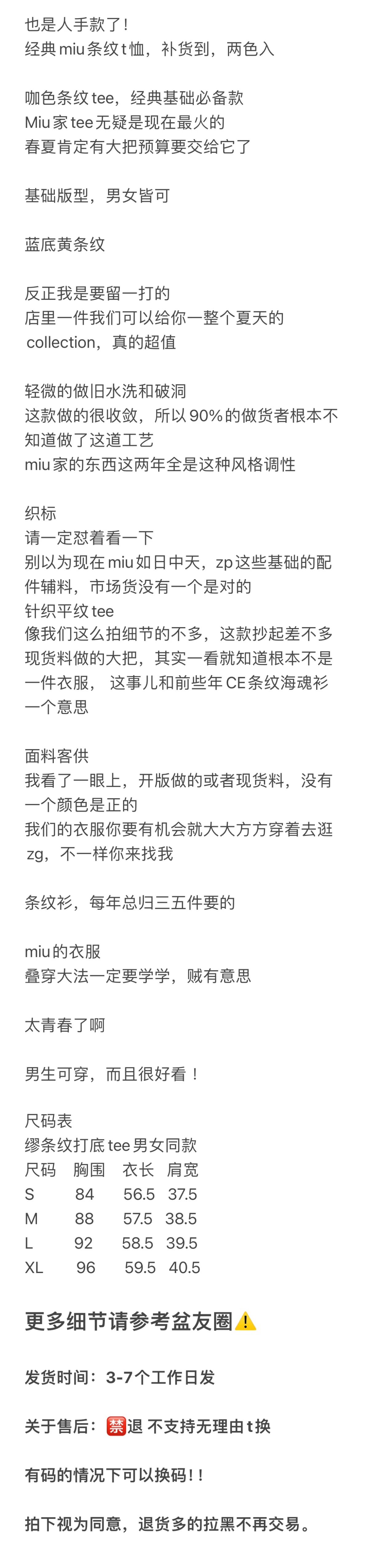 人手款 贸易公司 经典miu条纹短袖T恤 宽松版型 男女同款 条纹短袖TEE
