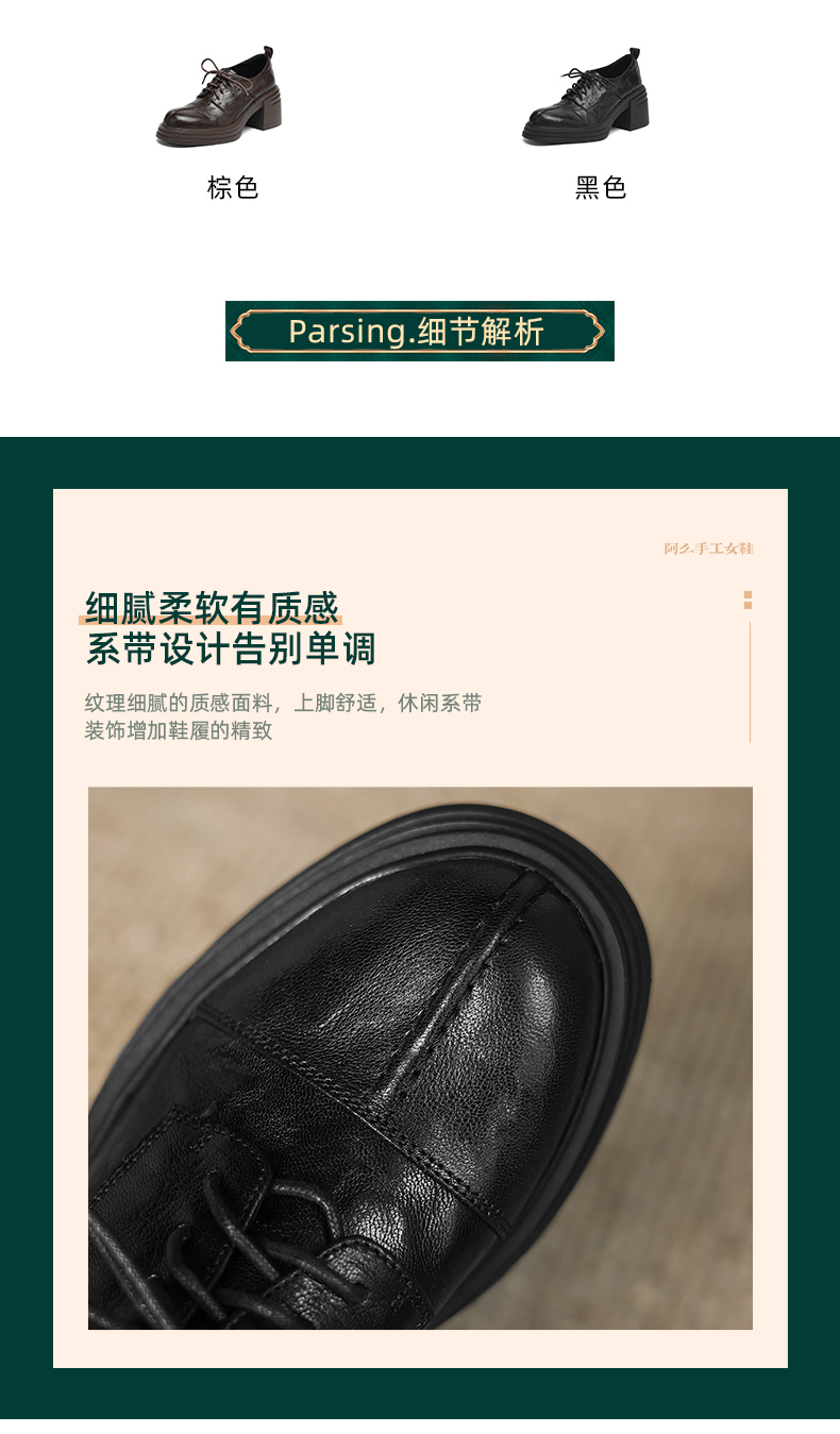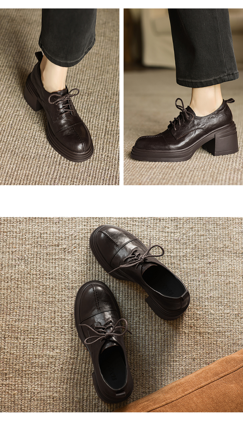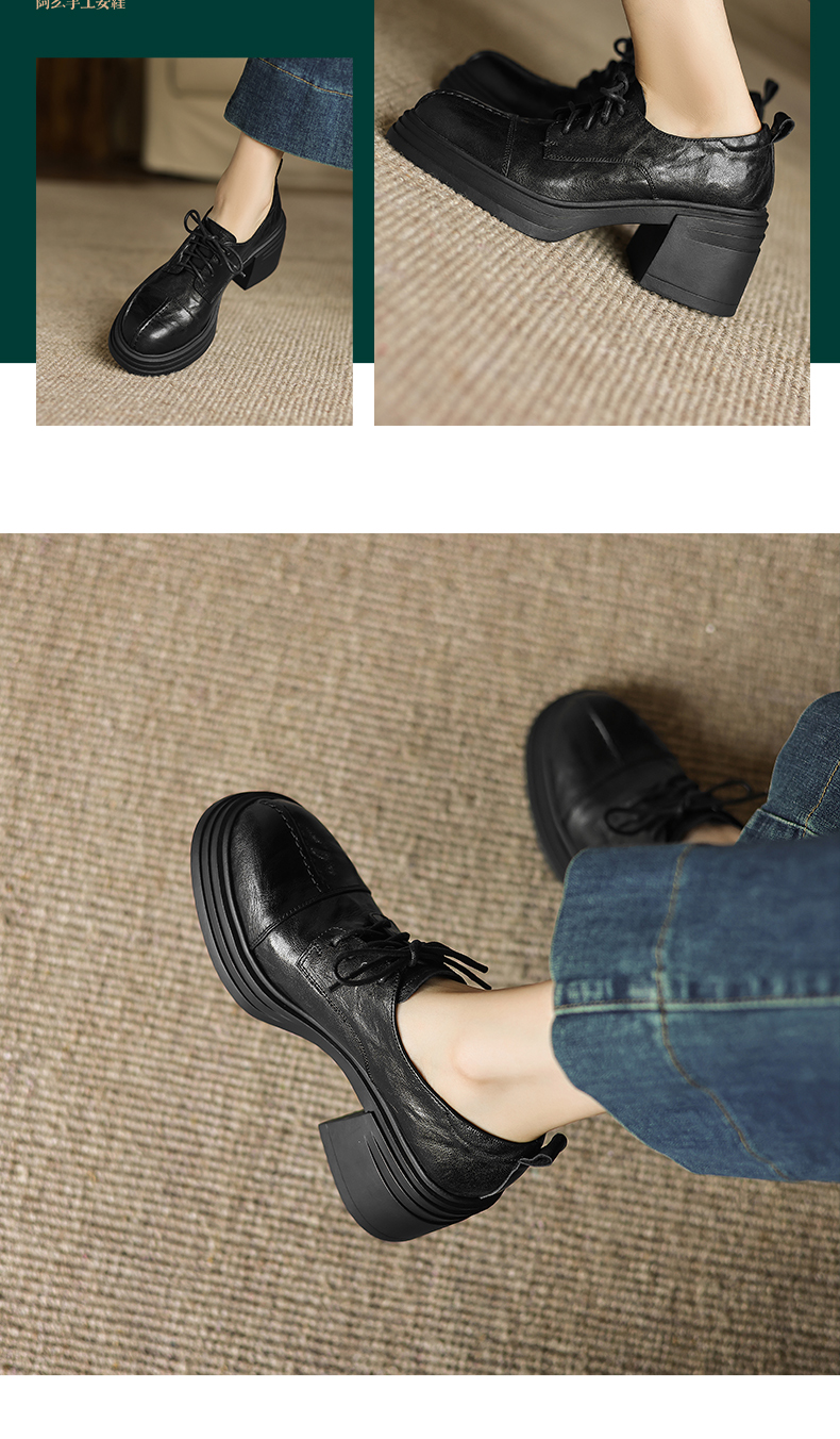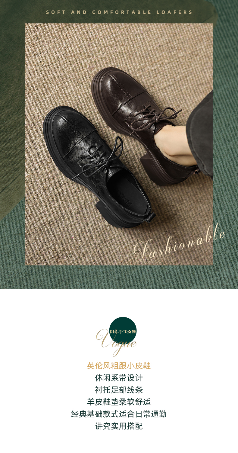 阿么手工女鞋高跟系带小皮鞋2025新款法式假日学院风真皮单鞋7CM