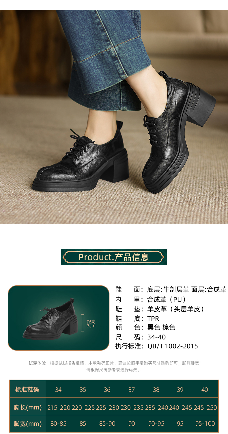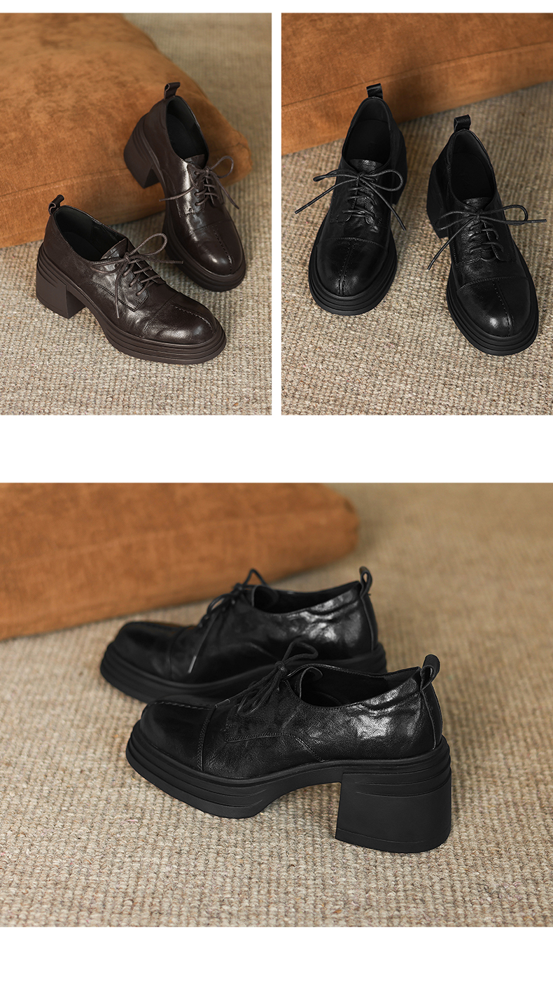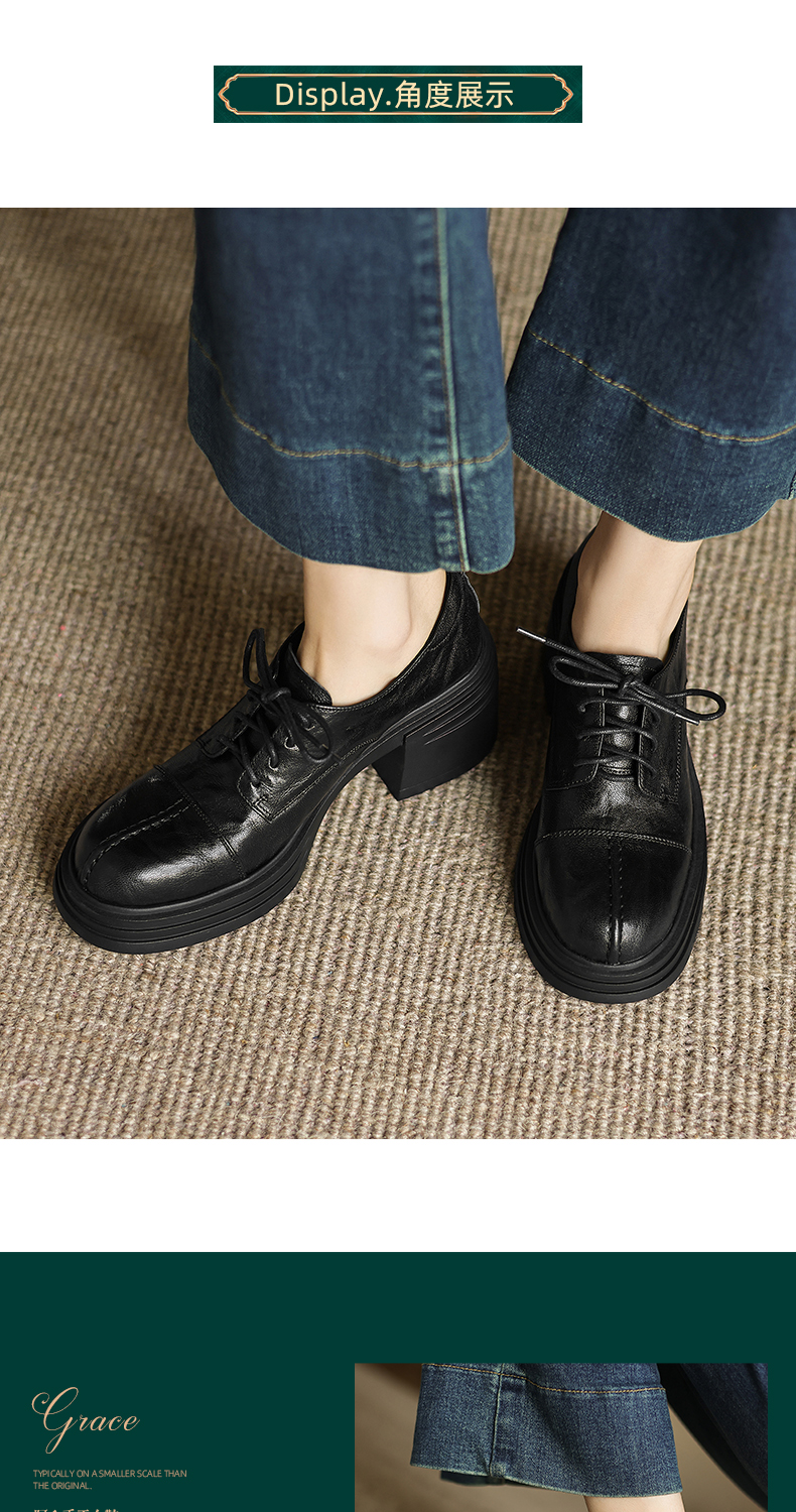 阿么手工女鞋高跟系带小皮鞋2025新款法式假日学院风真皮单鞋7CM